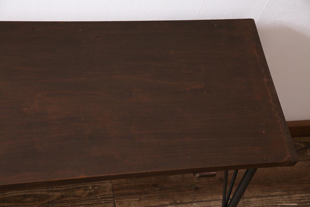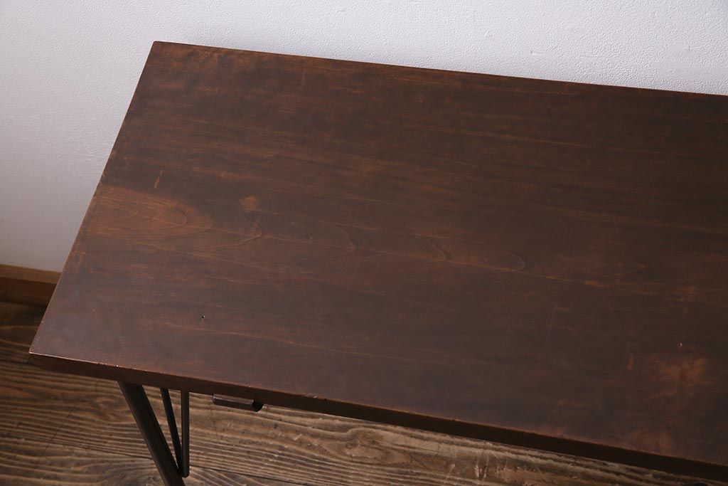 店舗什器 > アンティーク家具 和製 大正昭和初期 桂一枚板 古材を活かしたシンプルな鉄脚テーブル(作業台、アイアンテーブル、コンソールテーブル)(R-044668)