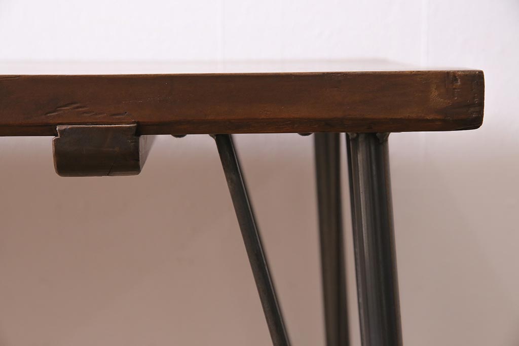 テーブル> 鉄脚テーブル > アンティーク家具 和製 大正昭和初期 桂一枚板 古材を活かしたシンプルな鉄脚テーブル(作業台、アイアンテーブル、コンソールテーブル)(R-044668)