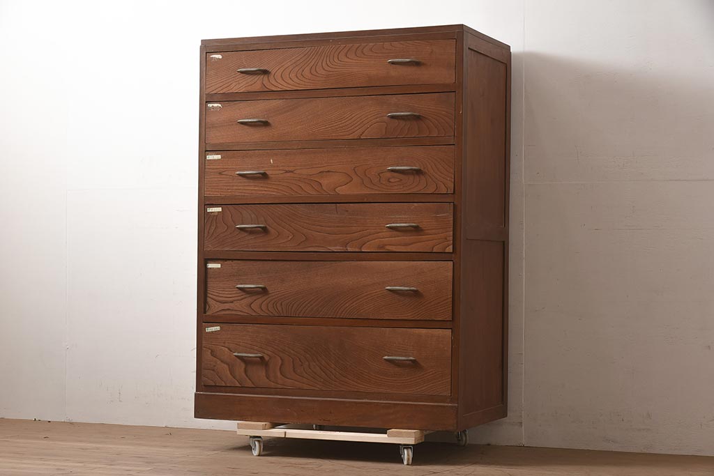 和箪笥 > 【簡易リペア限定品】アンティーク建具 昭和中期 前面栗材 シンプルなつくりの6段チェスト(引き出し、和タンス)(R-045087)