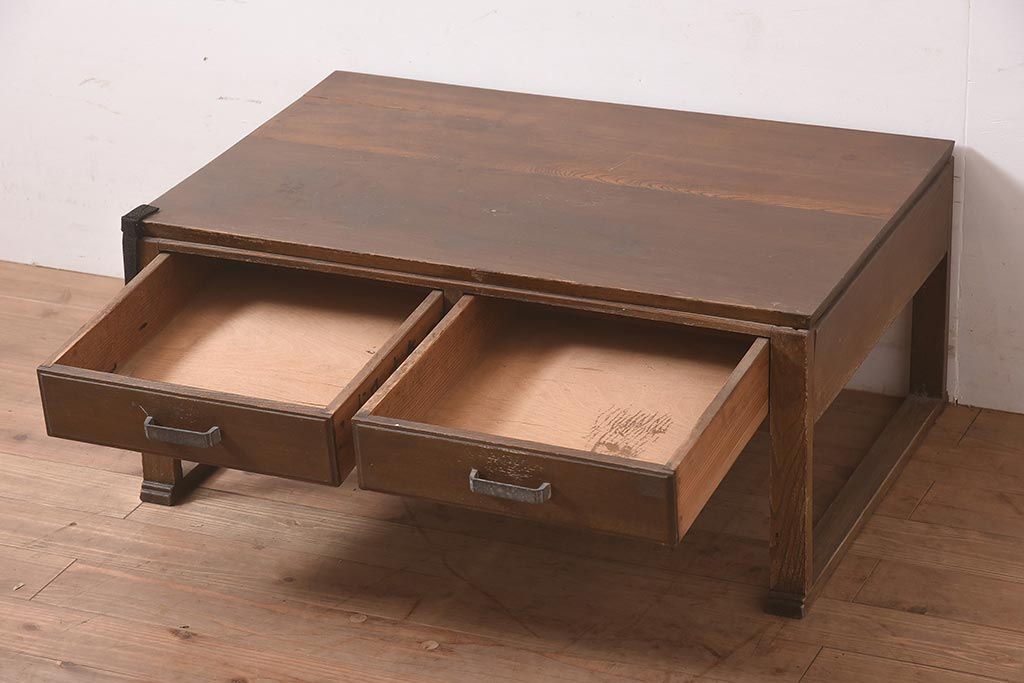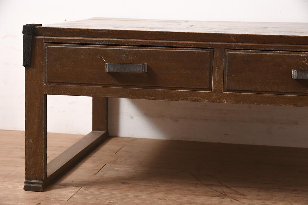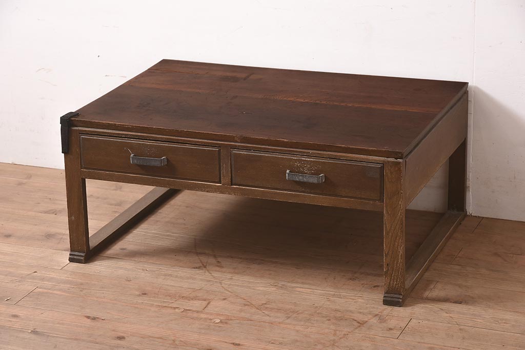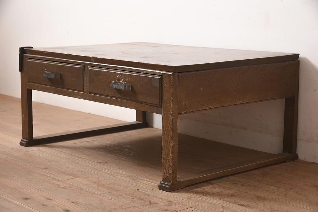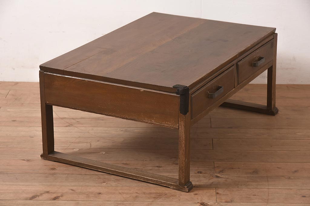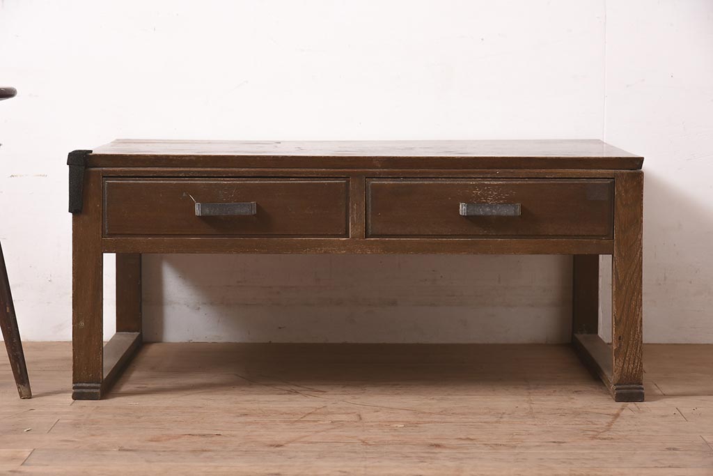 アンティーク家具 昭和中期 栓材 濃い木味のレトロな文机(ローテーブル)(R-045089)です。
