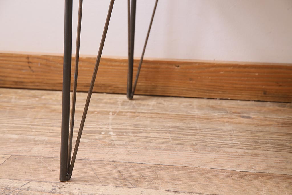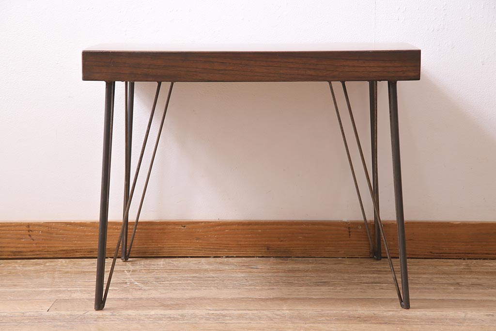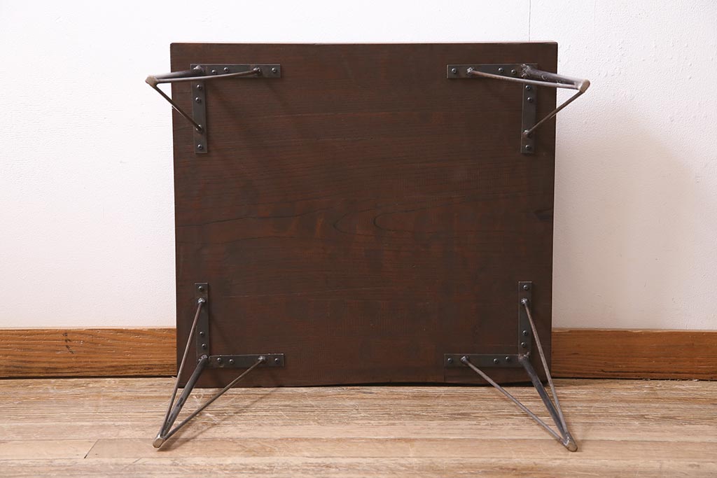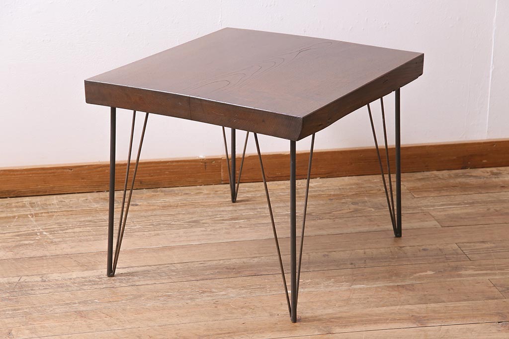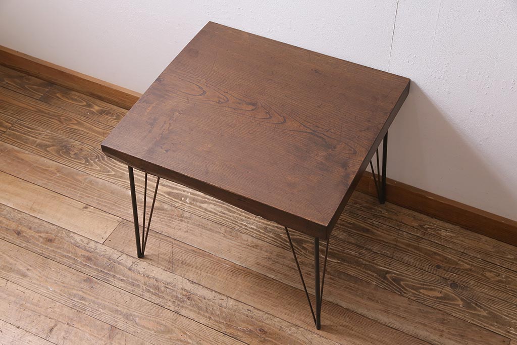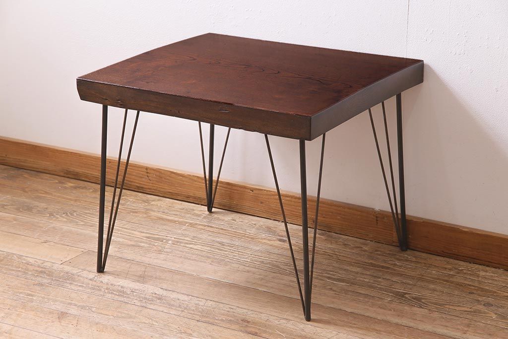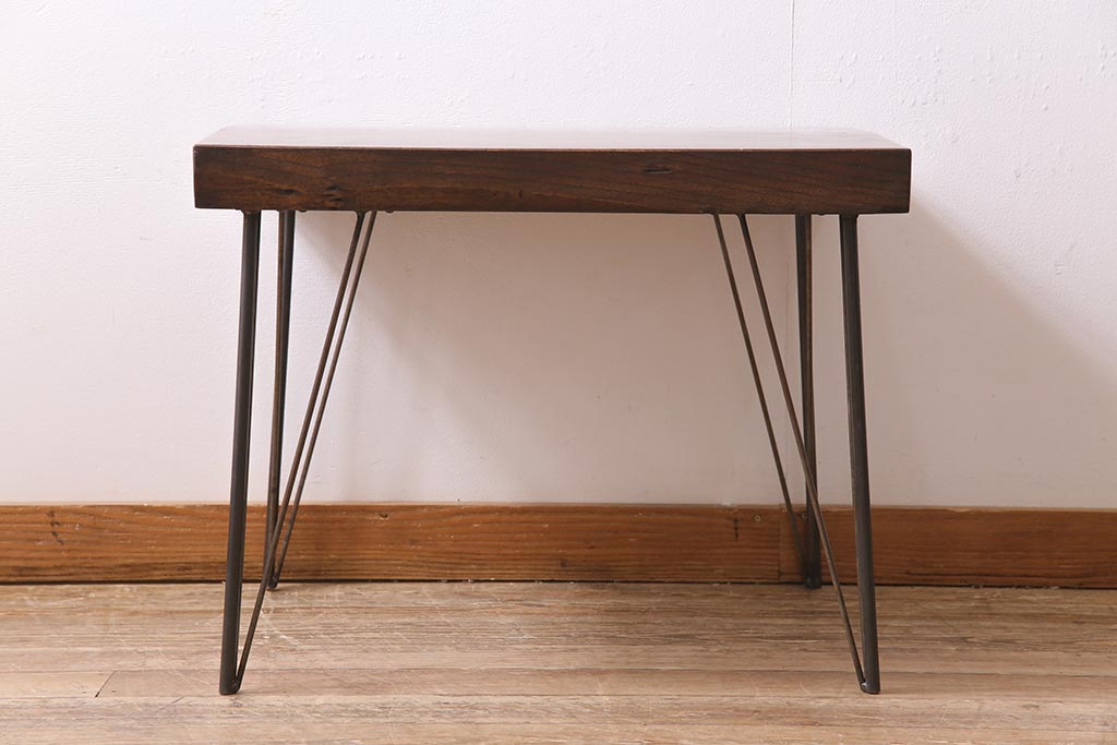 アンティーク家具 古材ケヤキ一枚板 鉄脚リメイク 個性的なデザインが魅力のサイドテーブル(ベンチ、飾り台)(R-045082)です。