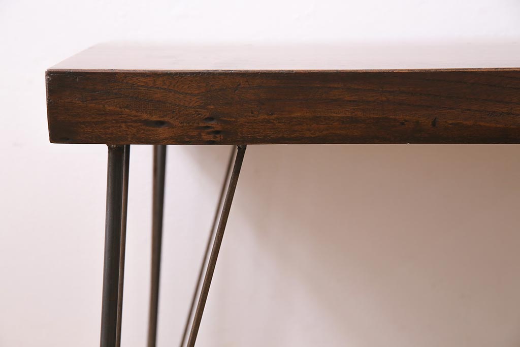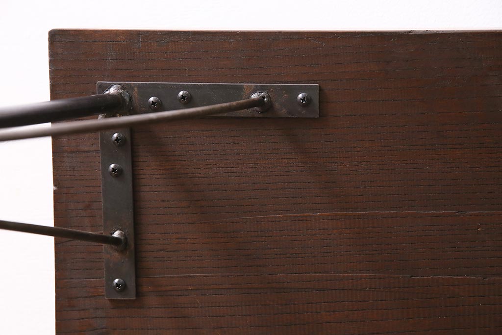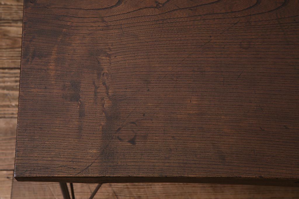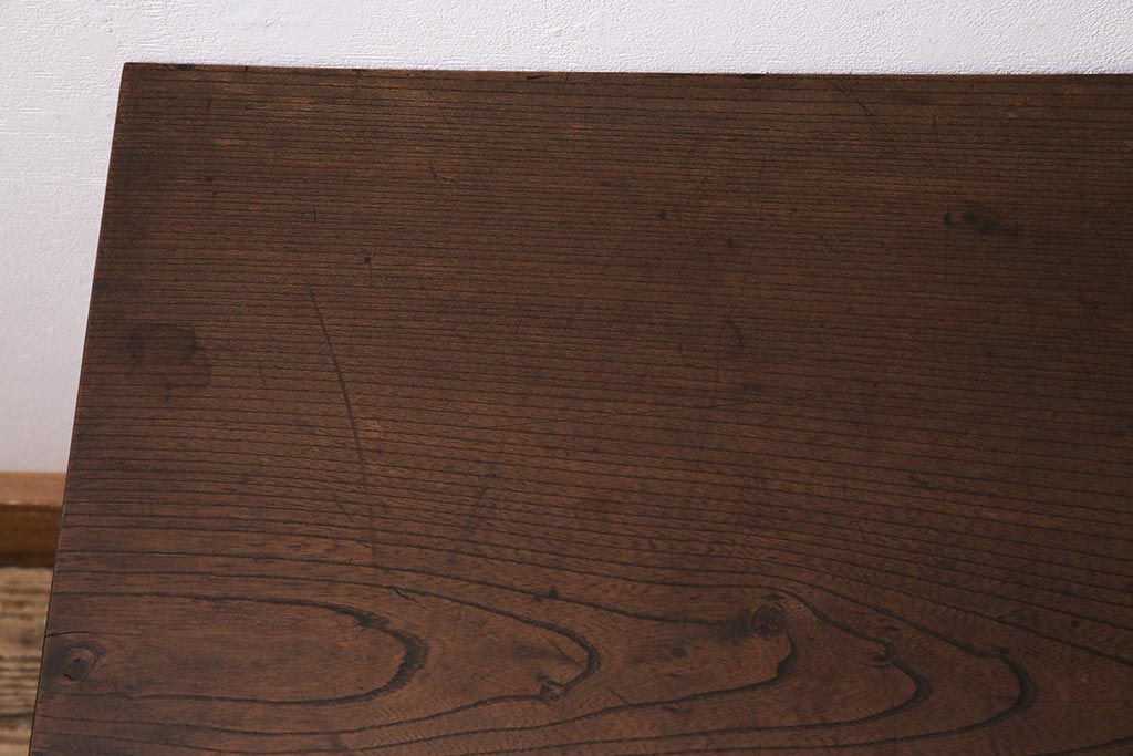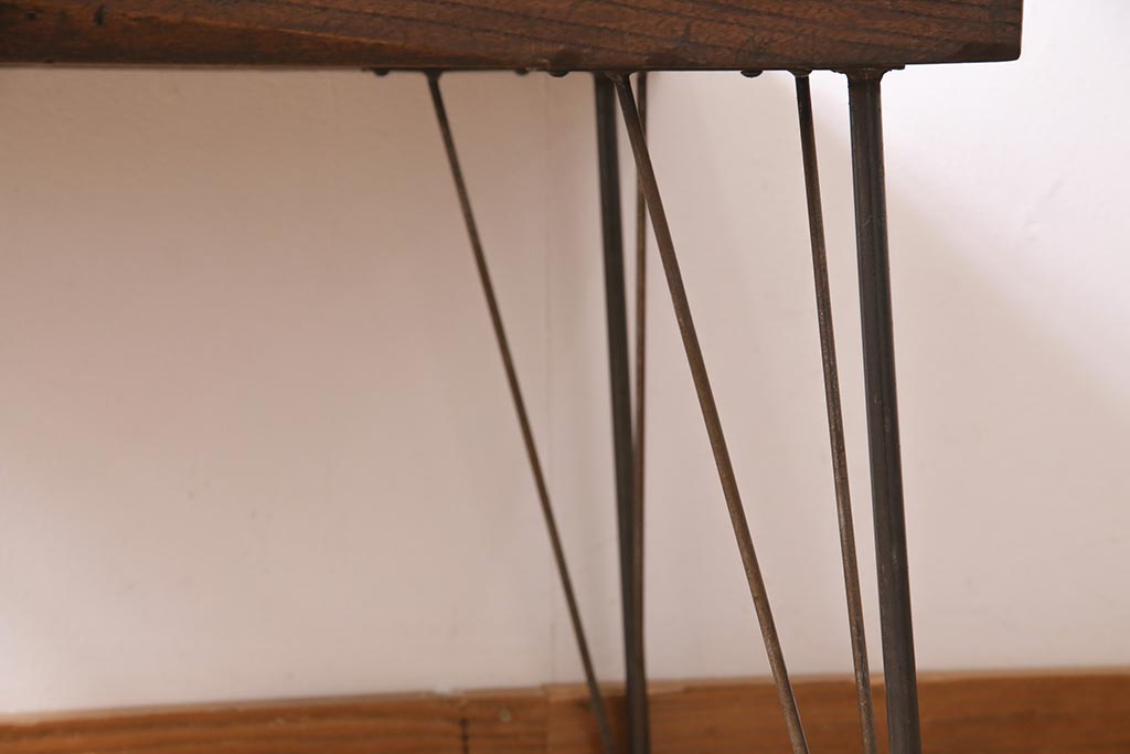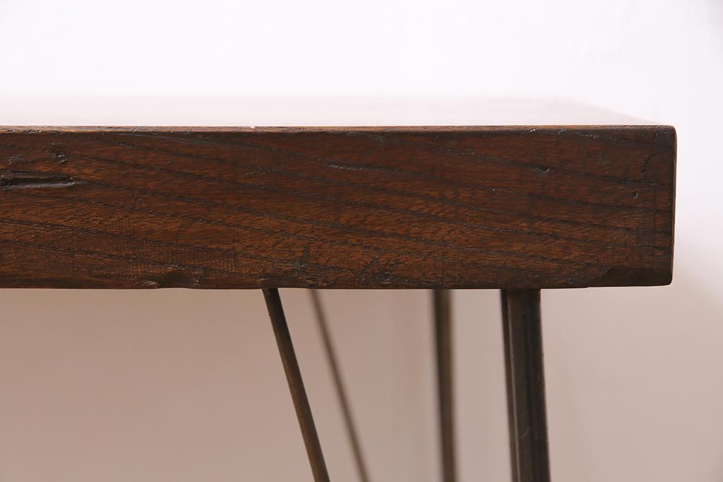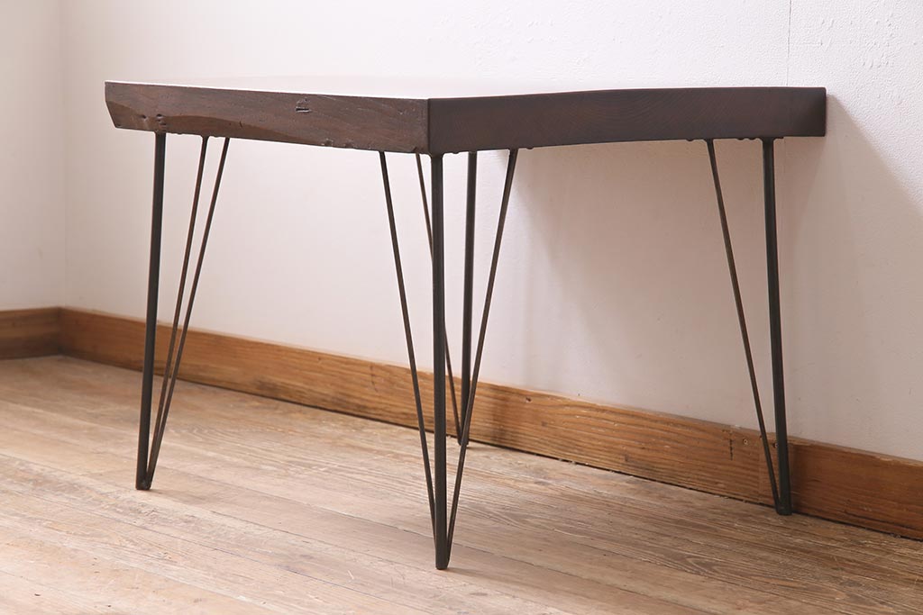 テーブル> サイドテーブル > アンティーク家具 古材ケヤキ一枚板 鉄脚リメイク 個性的なデザインが魅力のサイドテーブル(ベンチ、飾り台)(R-045082)