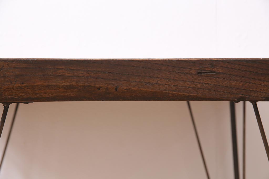 椅子・ベンチ> ベンチ > アンティーク家具 古材ケヤキ一枚板 鉄脚リメイク 個性的なデザインが魅力のサイドテーブル(ベンチ、飾り台)(R-045082)