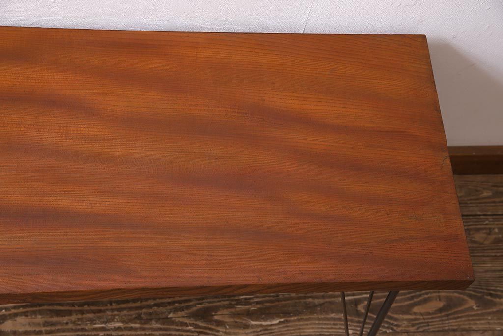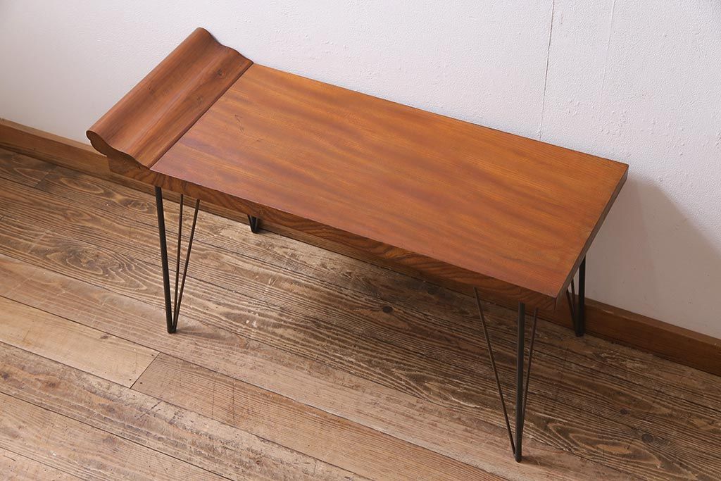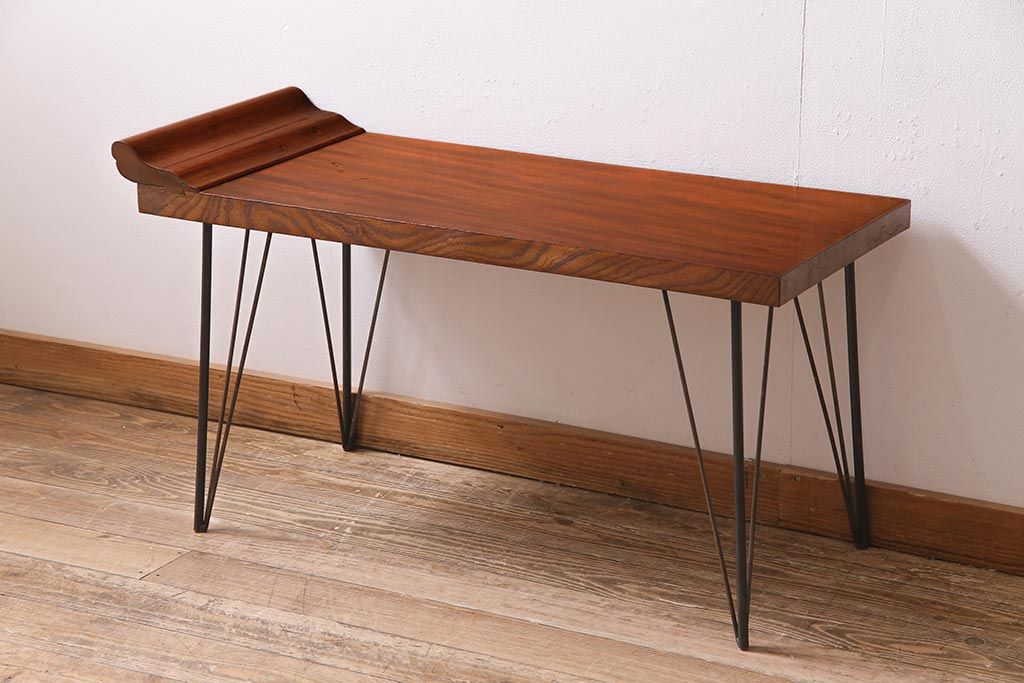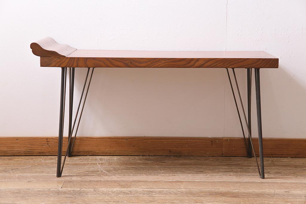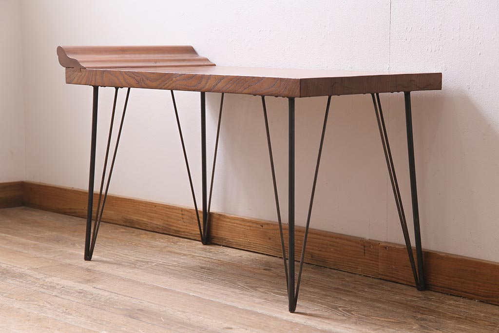 アンティーク家具 古材ケヤキ一枚板 鉄脚リメイク 個性的なデザインが魅力のサイドテーブル(センターテーブル、ベンチ、飾り台)(R-045083)