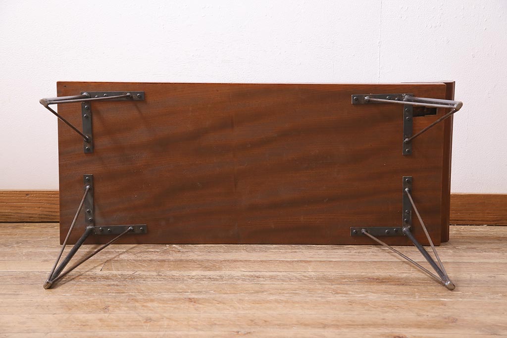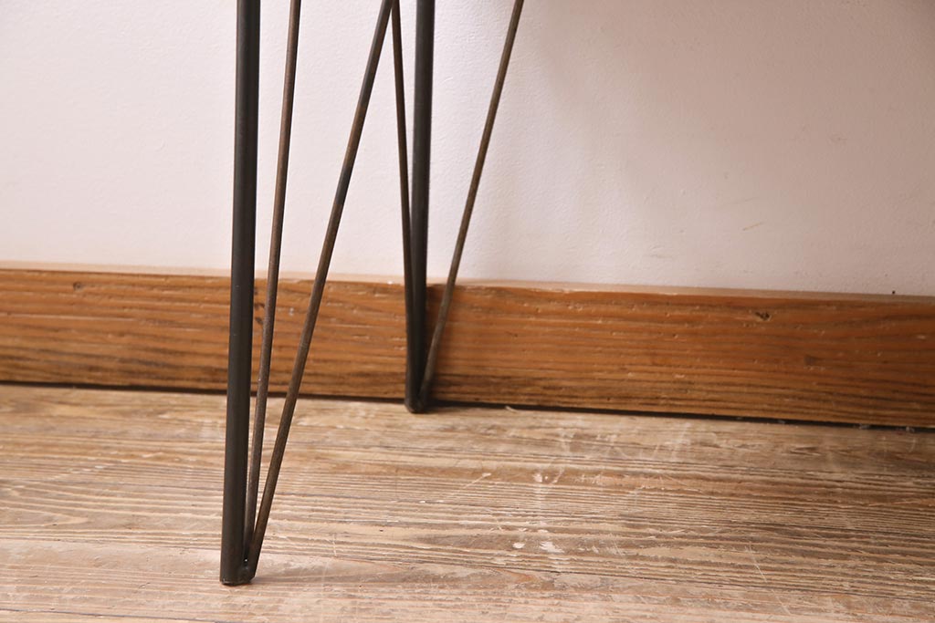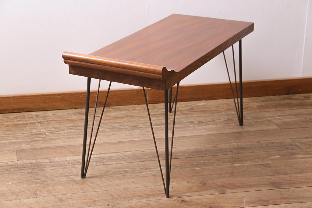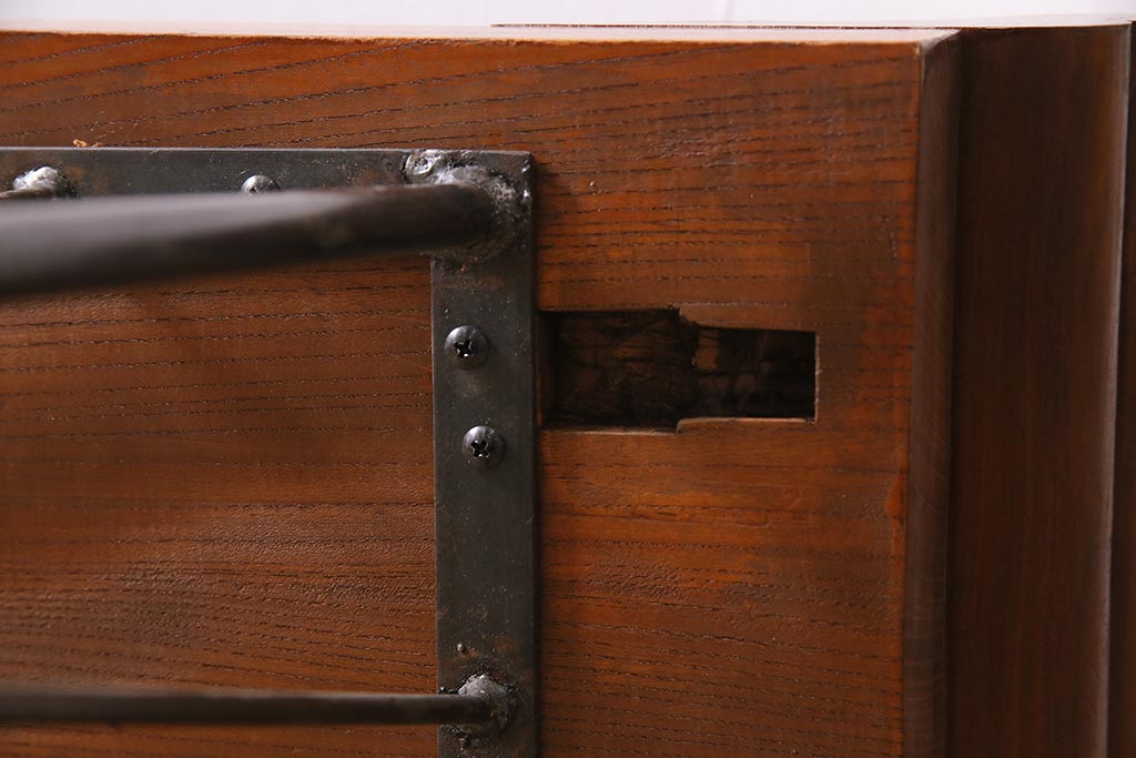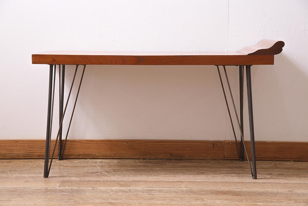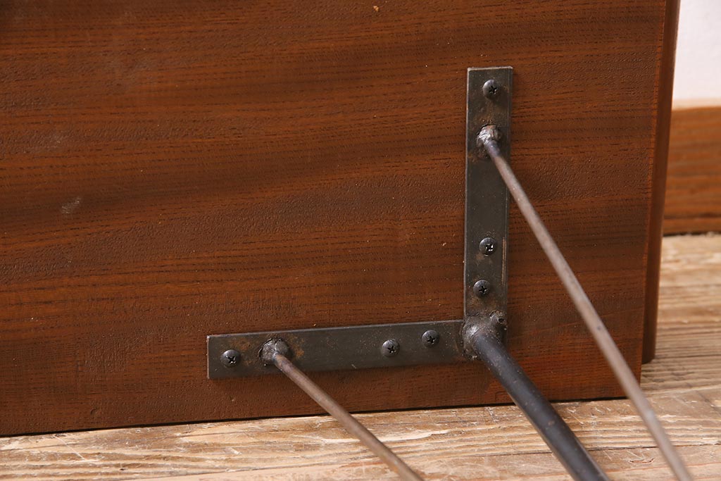 アンティーク家具 古材ケヤキ一枚板 鉄脚リメイク 個性的なデザインが魅力のサイドテーブル(センターテーブル、ベンチ、飾り台)(R-045083)