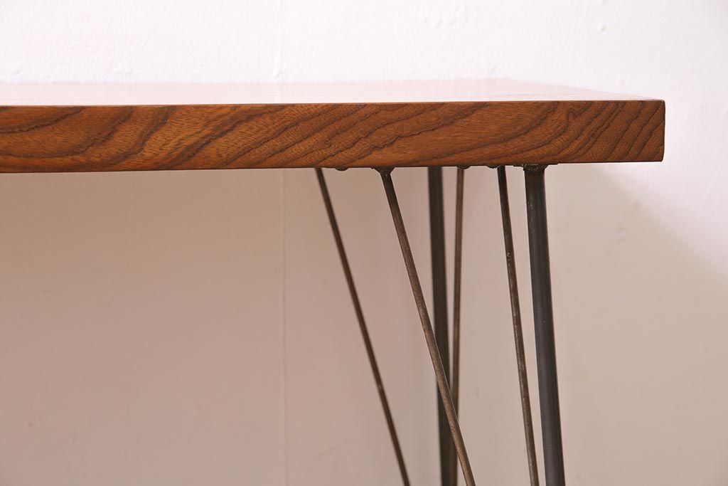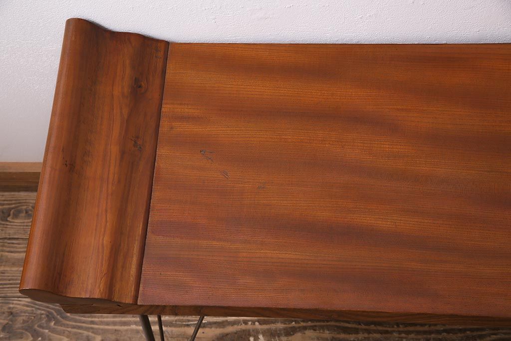 テーブル> サイドテーブル > アンティーク家具 古材ケヤキ一枚板 鉄脚リメイク 個性的なデザインが魅力のサイドテーブル(センターテーブル、ベンチ、飾り台)(R-045083)