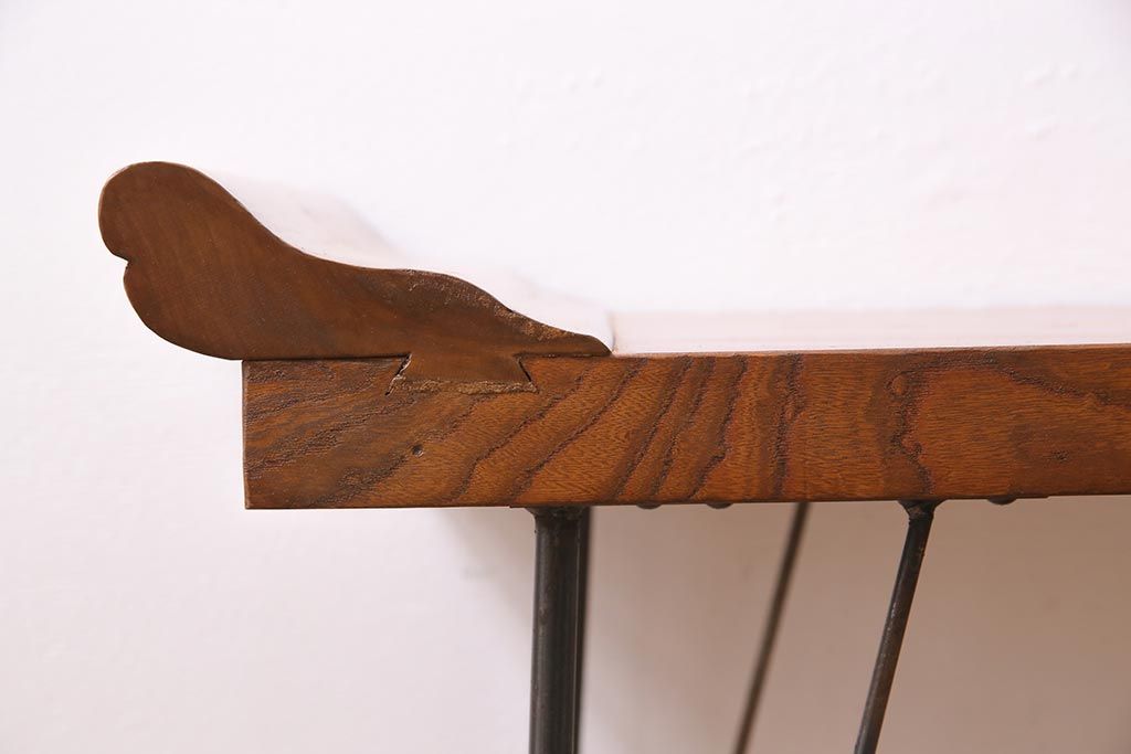 椅子・ベンチ> ベンチ > アンティーク家具 古材ケヤキ一枚板 鉄脚リメイク 個性的なデザインが魅力のサイドテーブル(センターテーブル、ベンチ、飾り台)(R-045083)