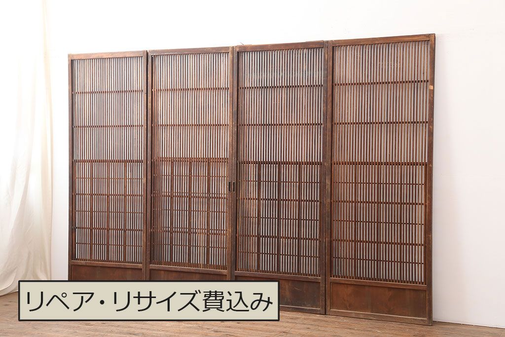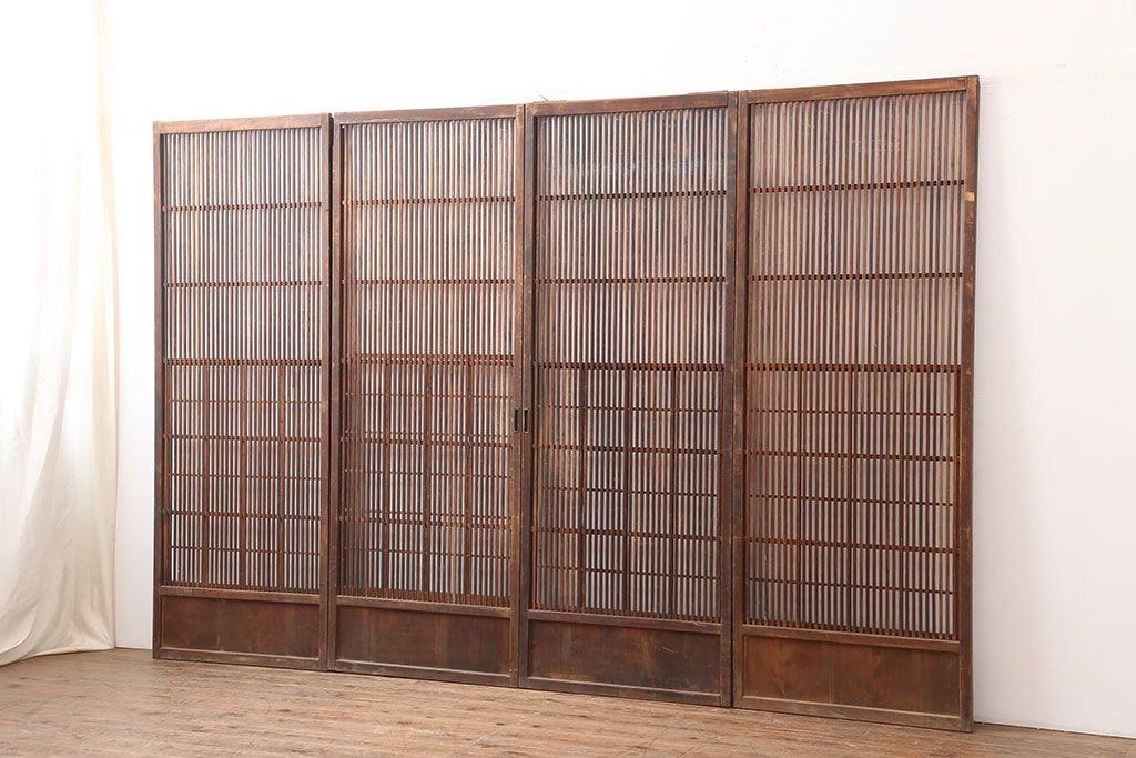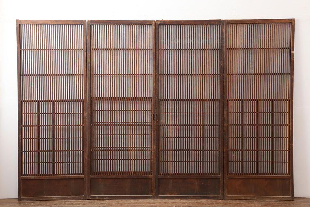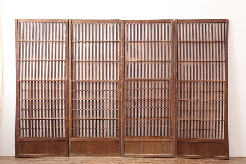 ドア・建具> 4枚〜セット > アンティーク建具 大正期 スライド裏障子 繊細な和の雰囲気漂う格子戸4枚セット(上げ下げ障子、引き戸)(R-045053)
