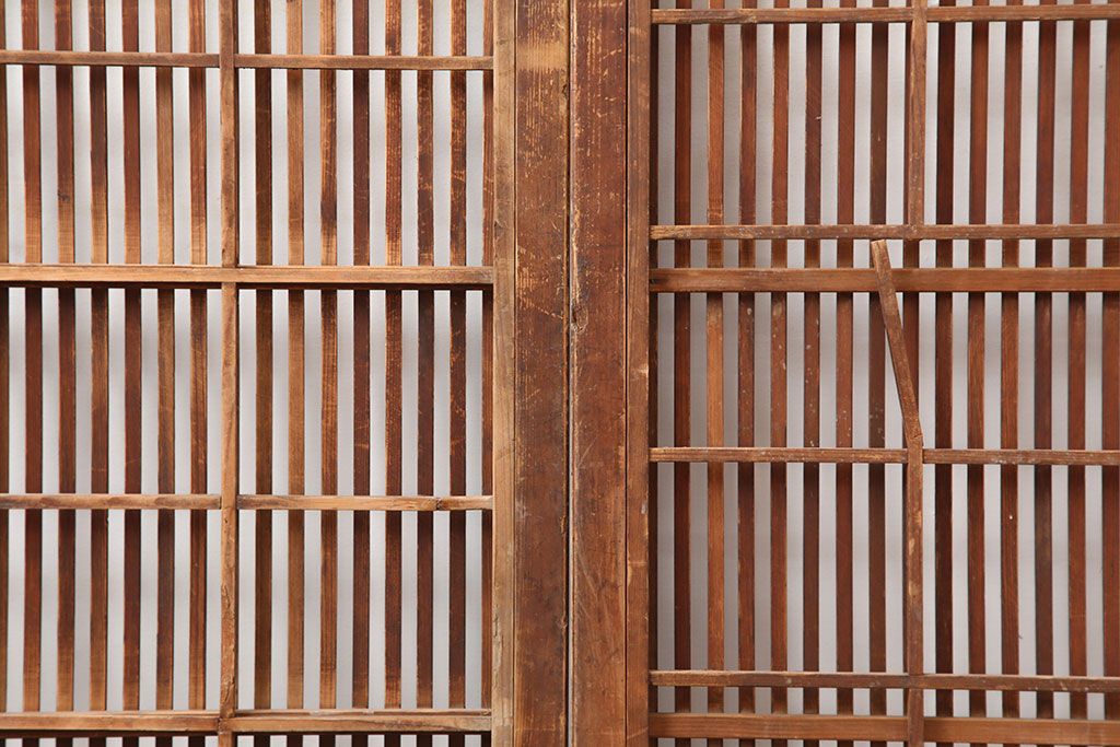 ドア・建具> 引き戸 > アンティーク建具 大正期 スライド裏障子 繊細な和の雰囲気漂う格子戸4枚セット(上げ下げ障子、引き戸)(R-045053)