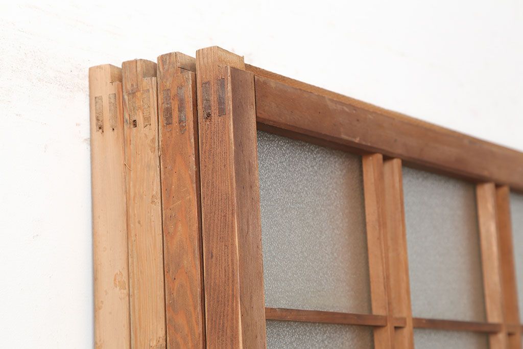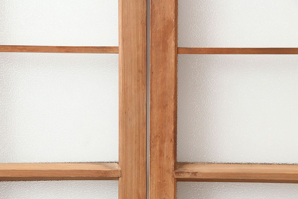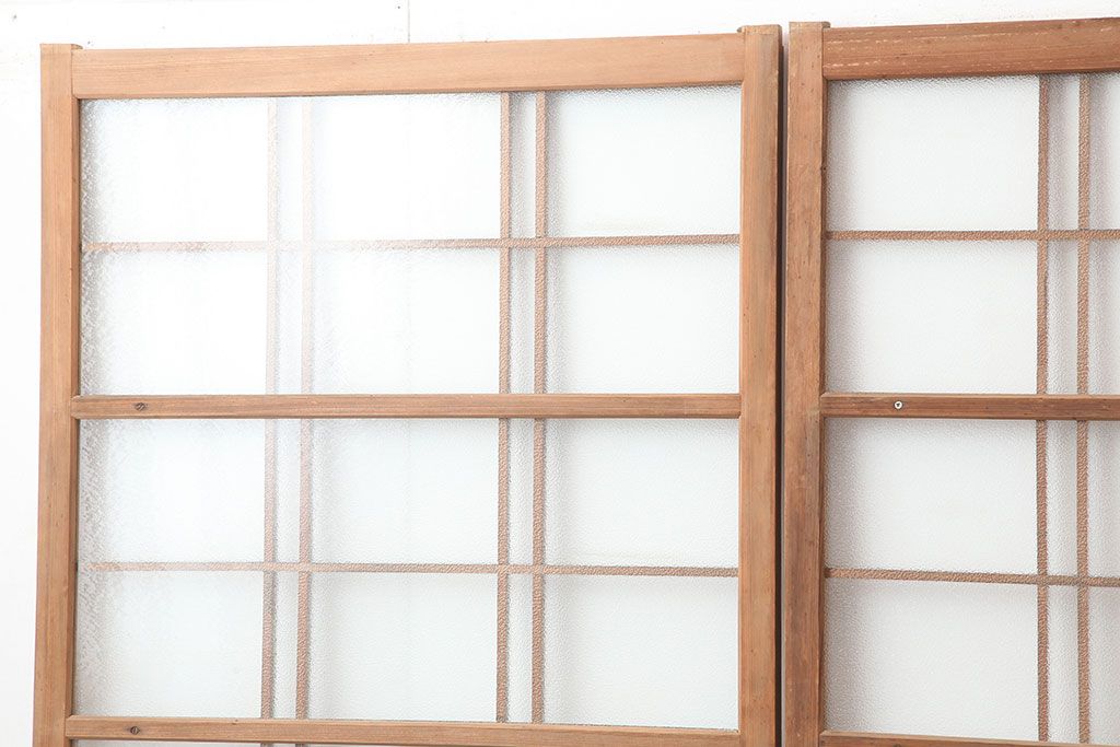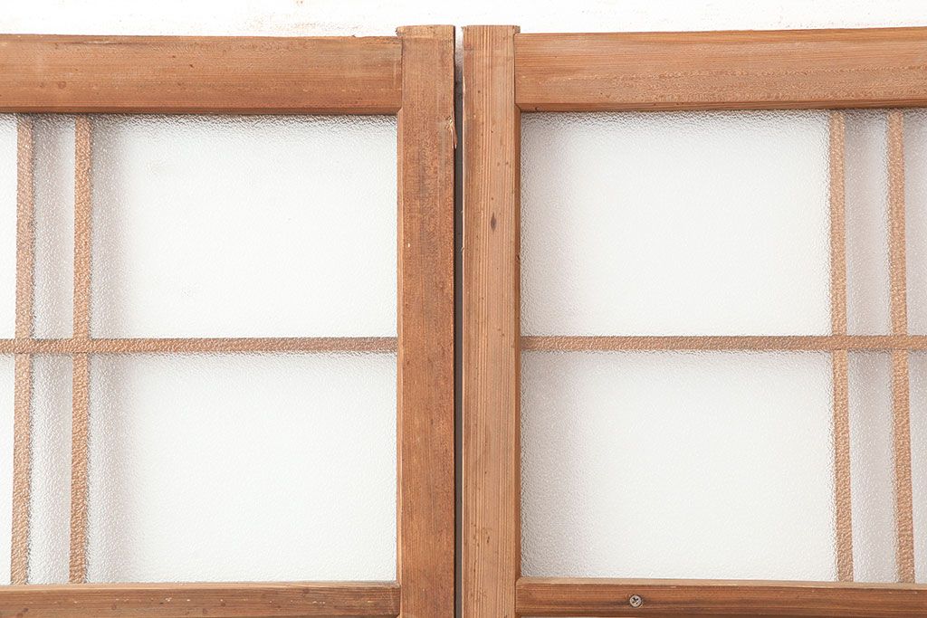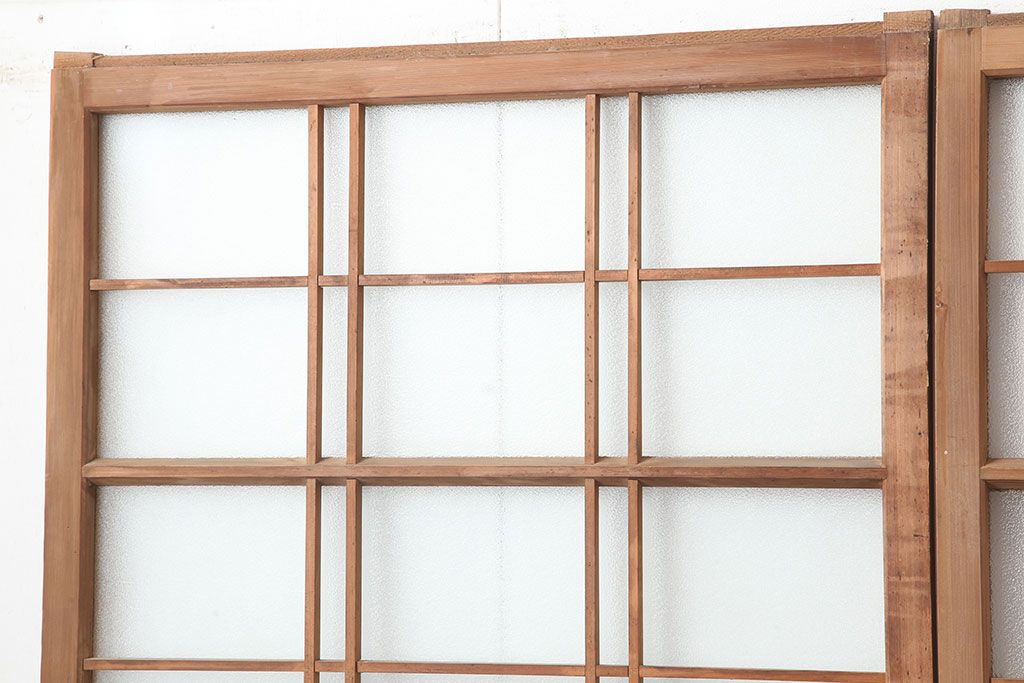 ラフジュ工房> ドア・建具> 4枚〜セット > アンティーク建具 昭和中期 腰板ケヤキ材 レトロなガラス戸4枚セット(引き戸、帯戸、建具)(R-045055)