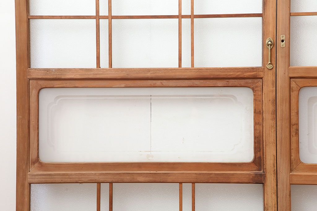 アンティーク建具 昭和中期 腰板ケヤキ材 レトロなガラス戸4枚セット(引き戸、帯戸、建具)(R-045055)