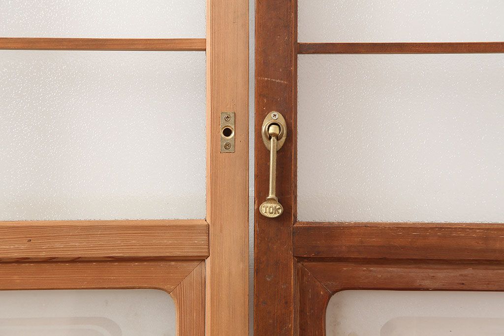 ラフジュ工房> ドア・建具> ガラス戸 > アンティーク建具 昭和中期 腰板ケヤキ材 レトロなガラス戸4枚セット(引き戸、帯戸、建具)(R-045055)