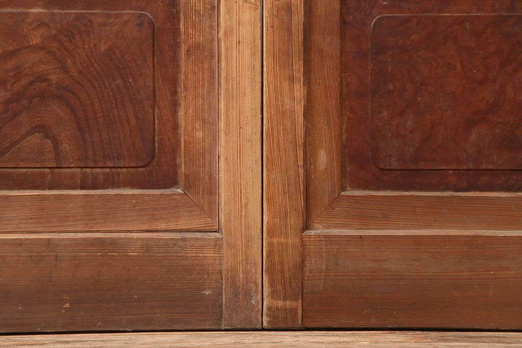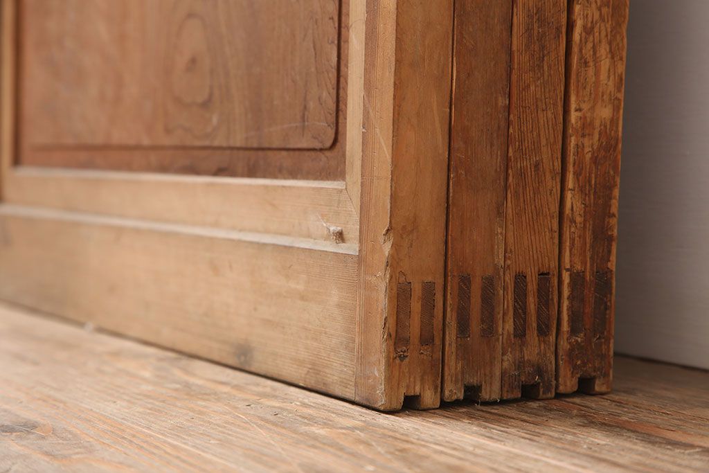 ラフジュ工房> ドア・建具> 引き戸 > アンティーク建具 昭和中期 腰板ケヤキ材 レトロなガラス戸4枚セット(引き戸、帯戸、建具)(R-045055)