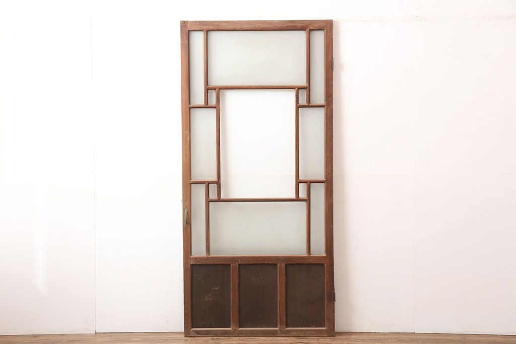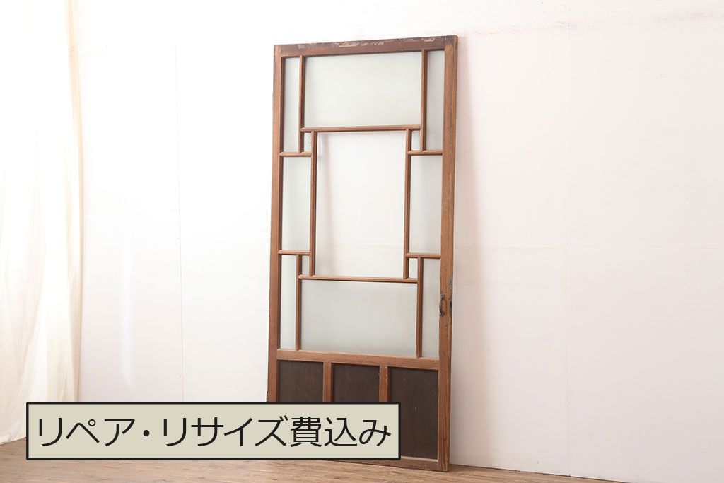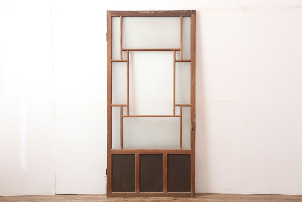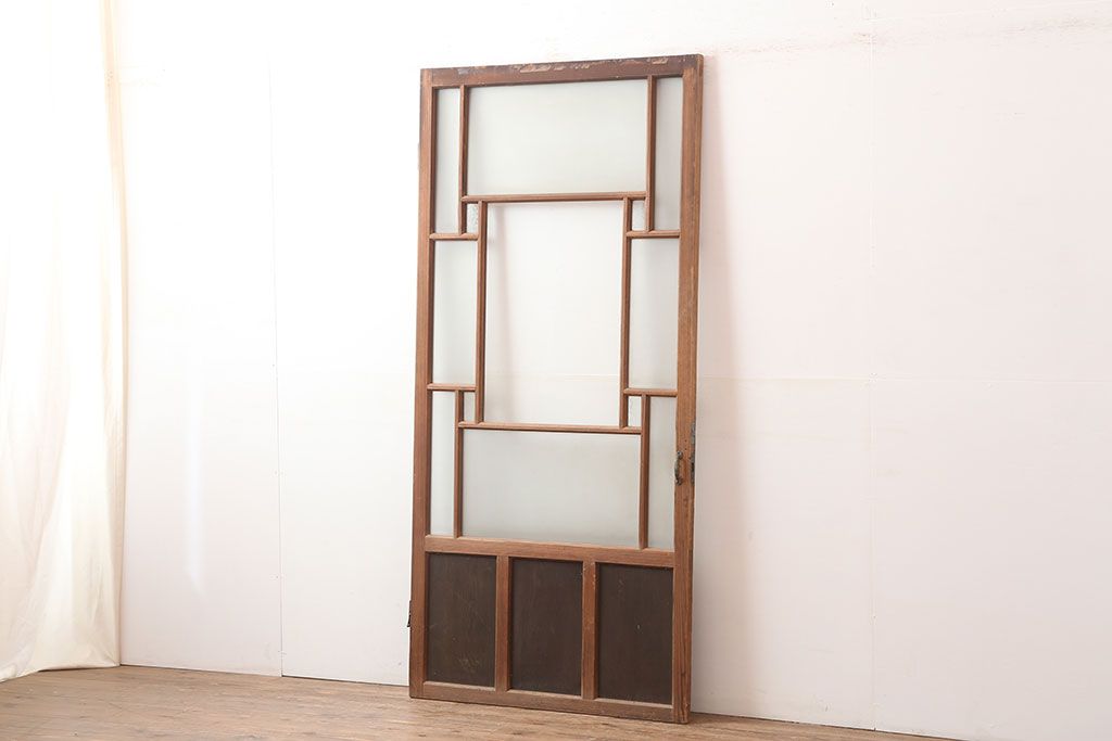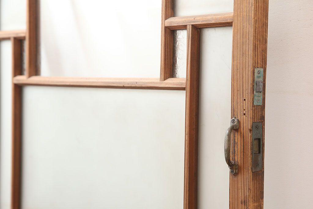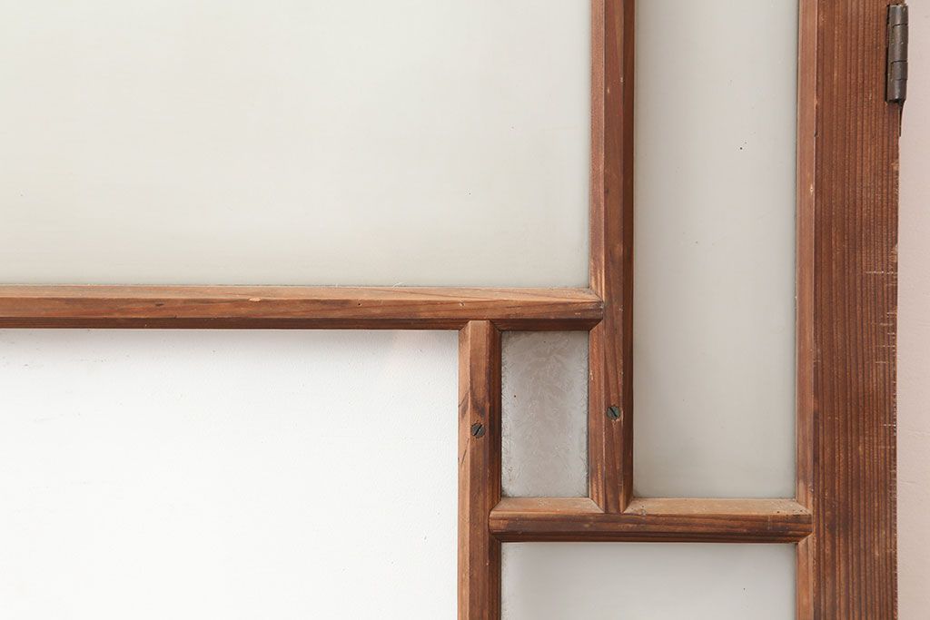 アンティーク建具 昭和初期 レトロ 色ガラスを入れて大正ロマン風に仕上げるドア(ガラス扉、建具)(R-045077)です。