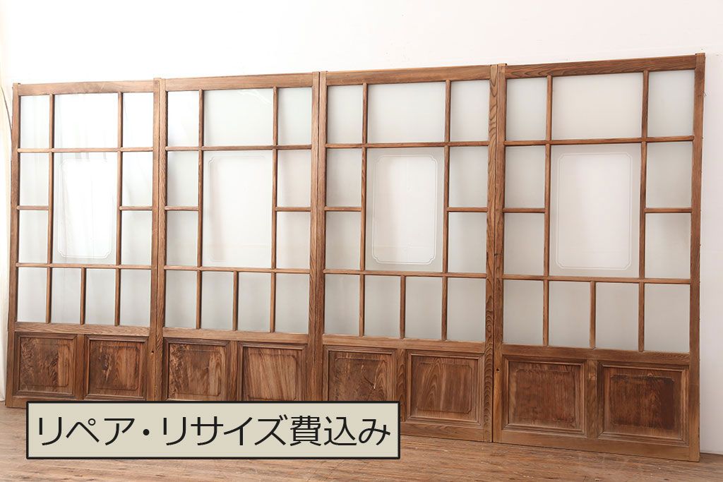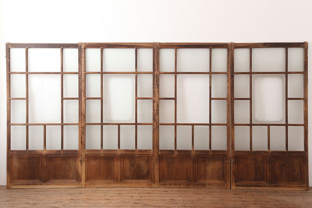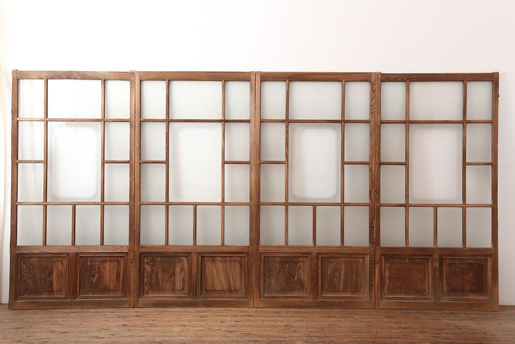 アンティーク建具 昭和初期 レトロな雰囲気が魅力の引き戸4枚セット(ガラス戸、建具)(R-045109)