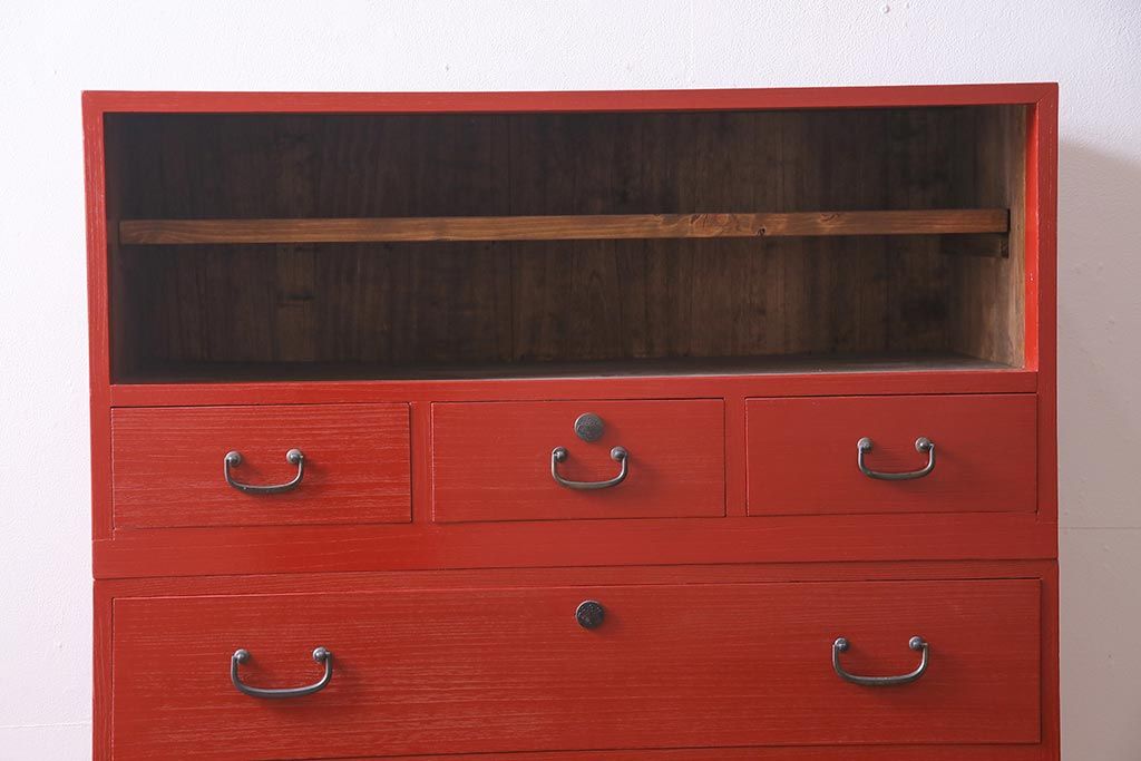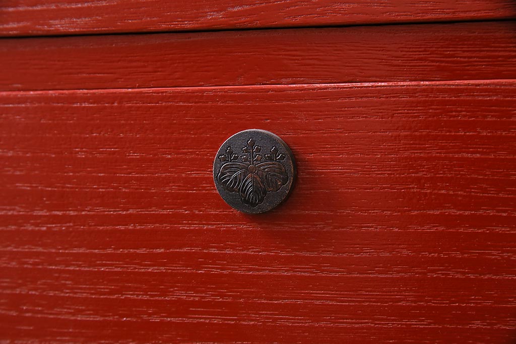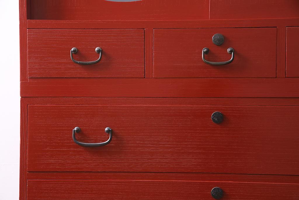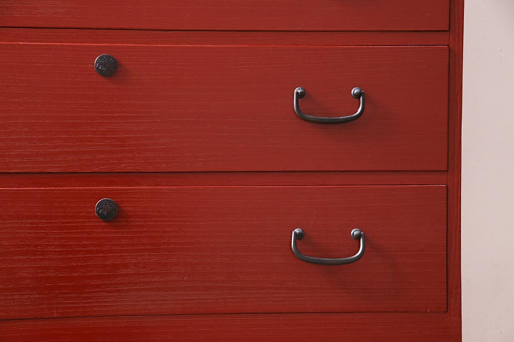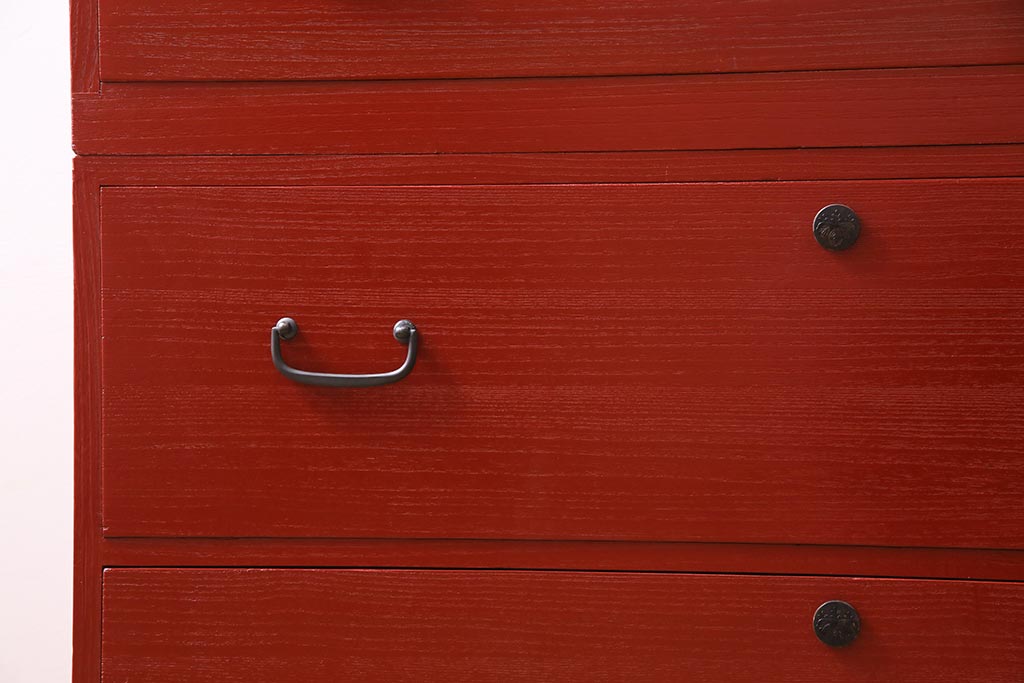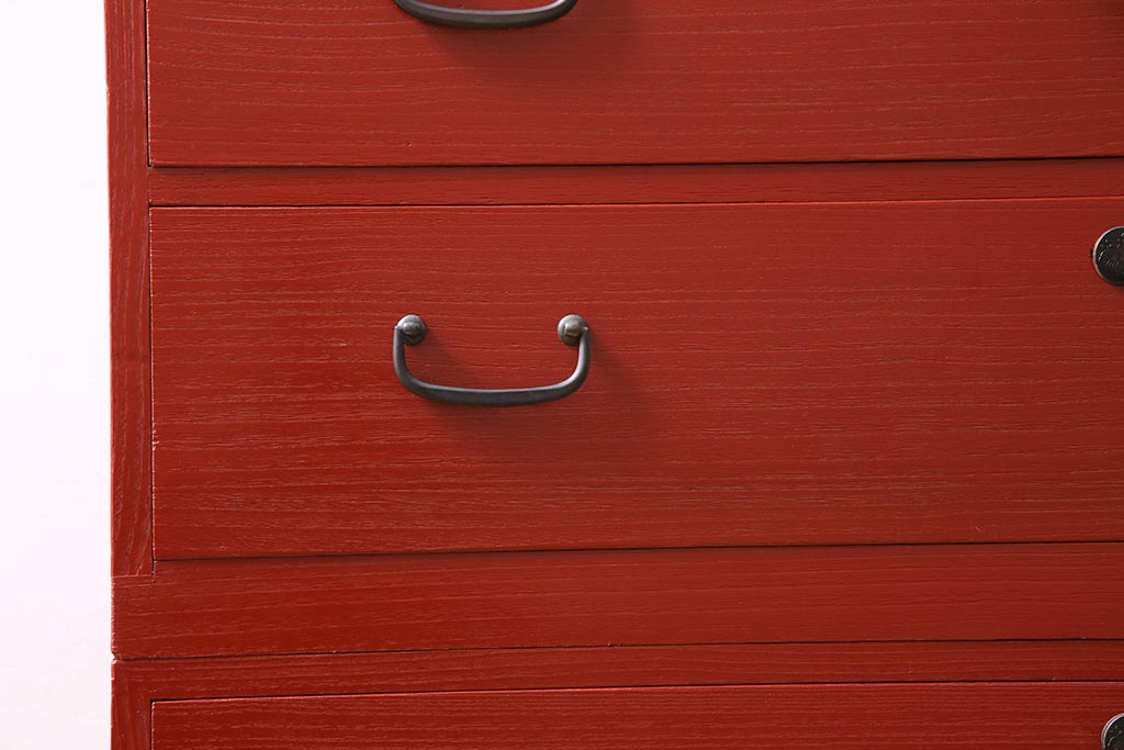 アンティーク家具 総桐材 カシュー 朱塗りの美しい色合いがモダンな桐箪笥(タンス、たんす、衣装箪笥)(R-045129)です。