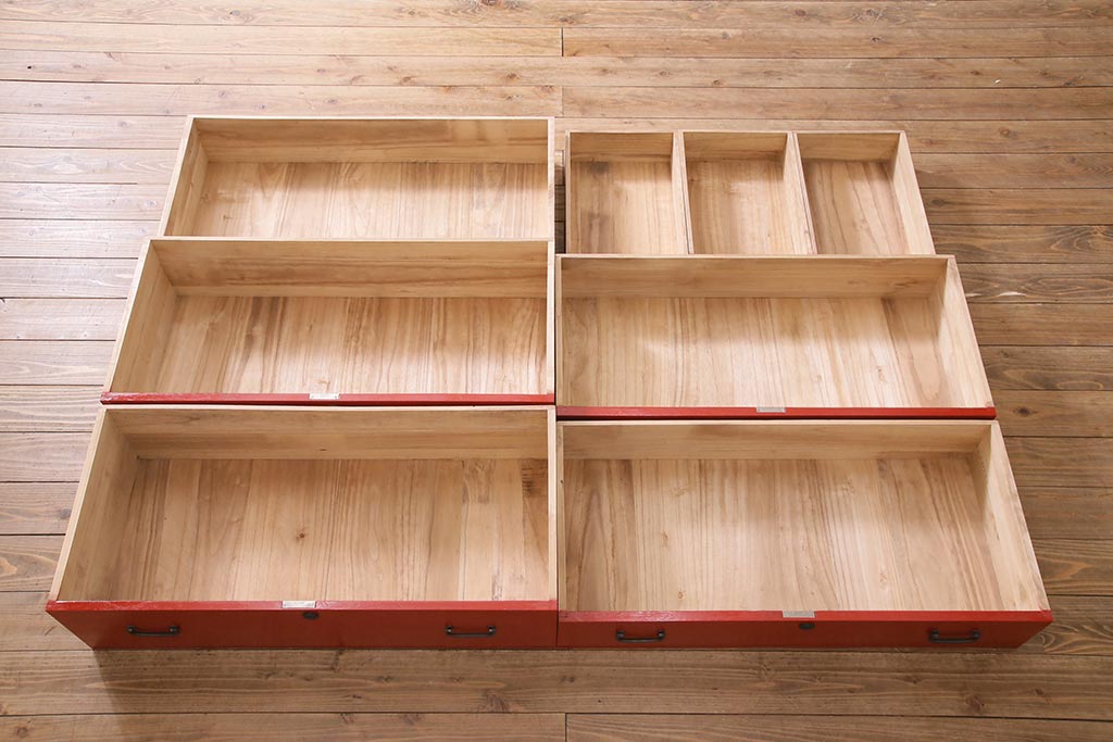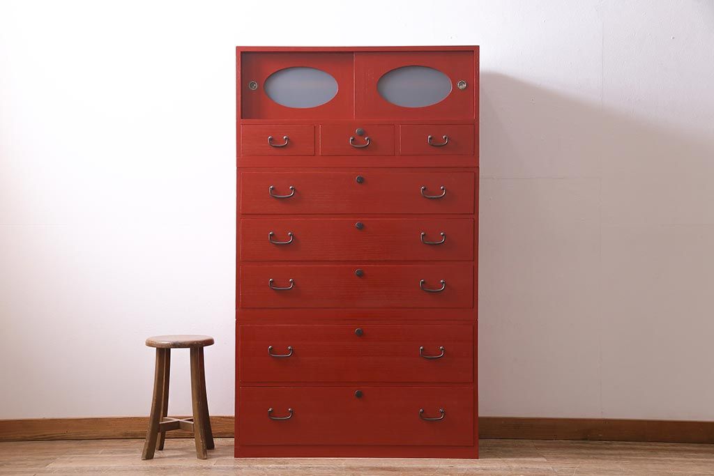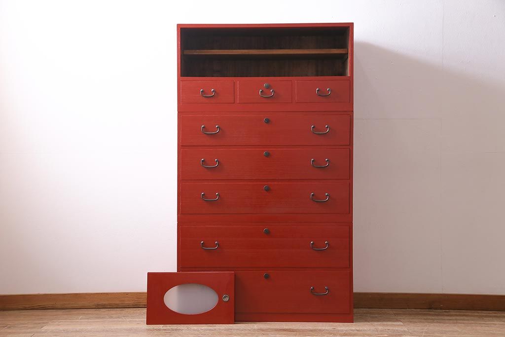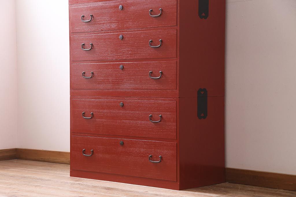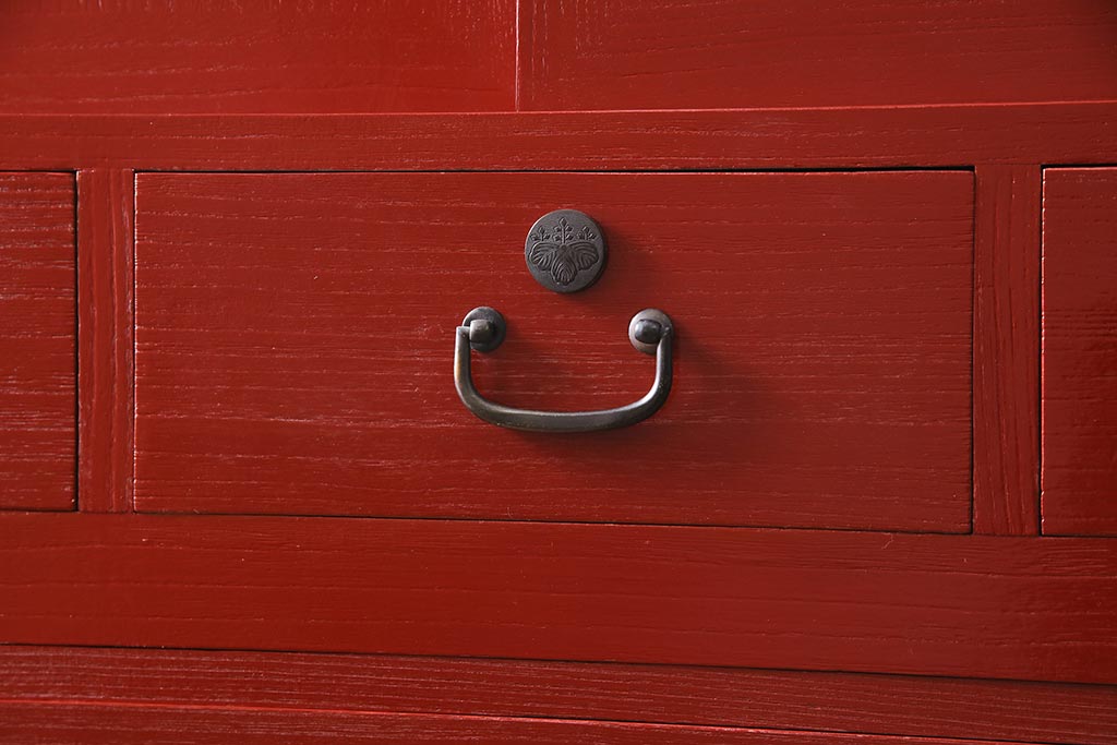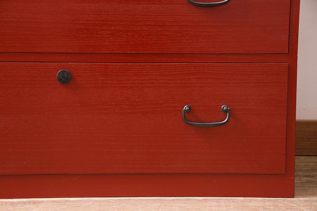アンティーク家具 総桐材 カシュー 朱塗りの美しい色合いがモダンな桐箪笥(タンス、たんす、衣装箪笥)(R-045129)です。