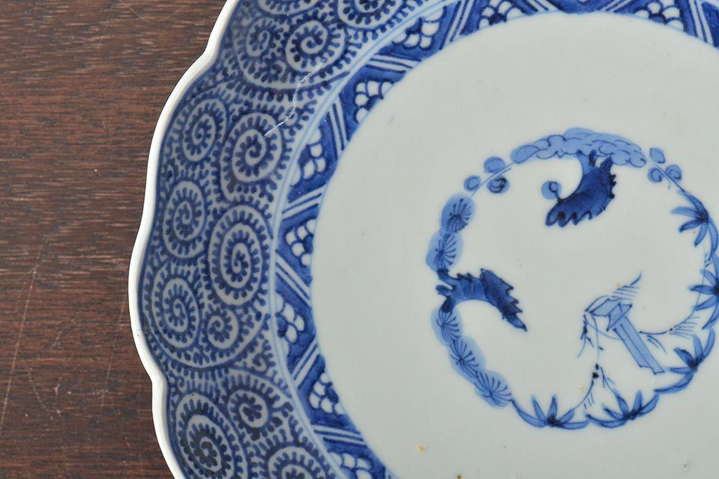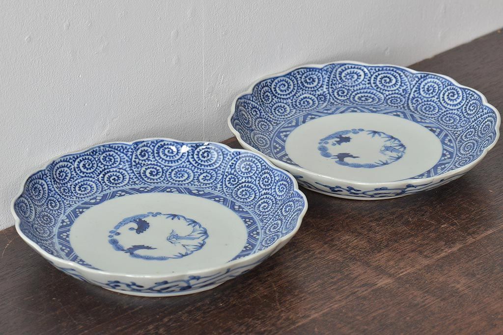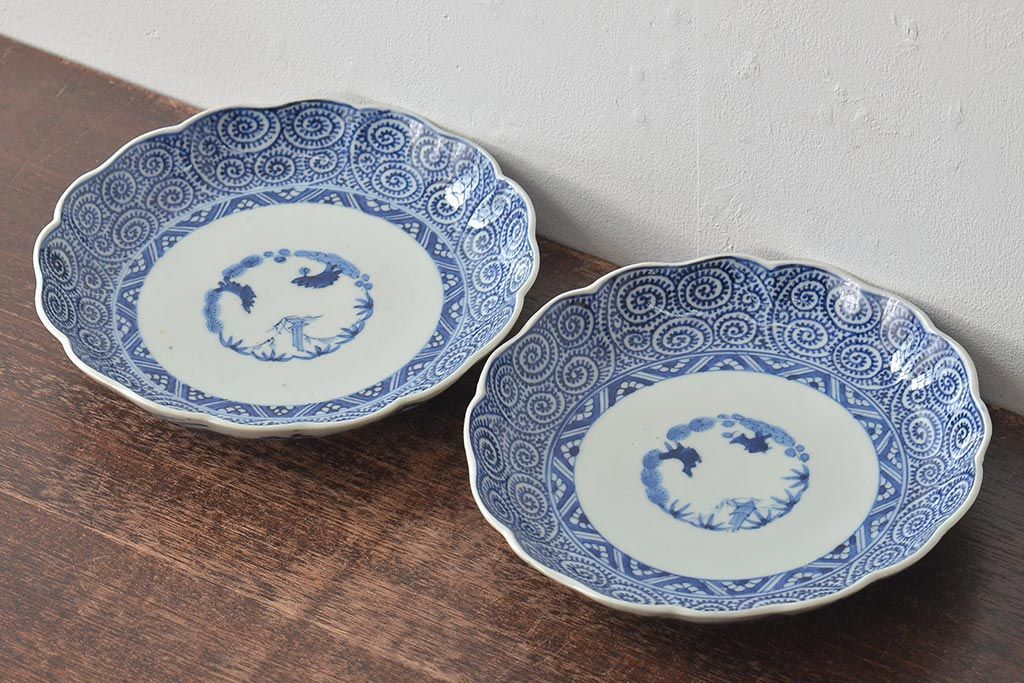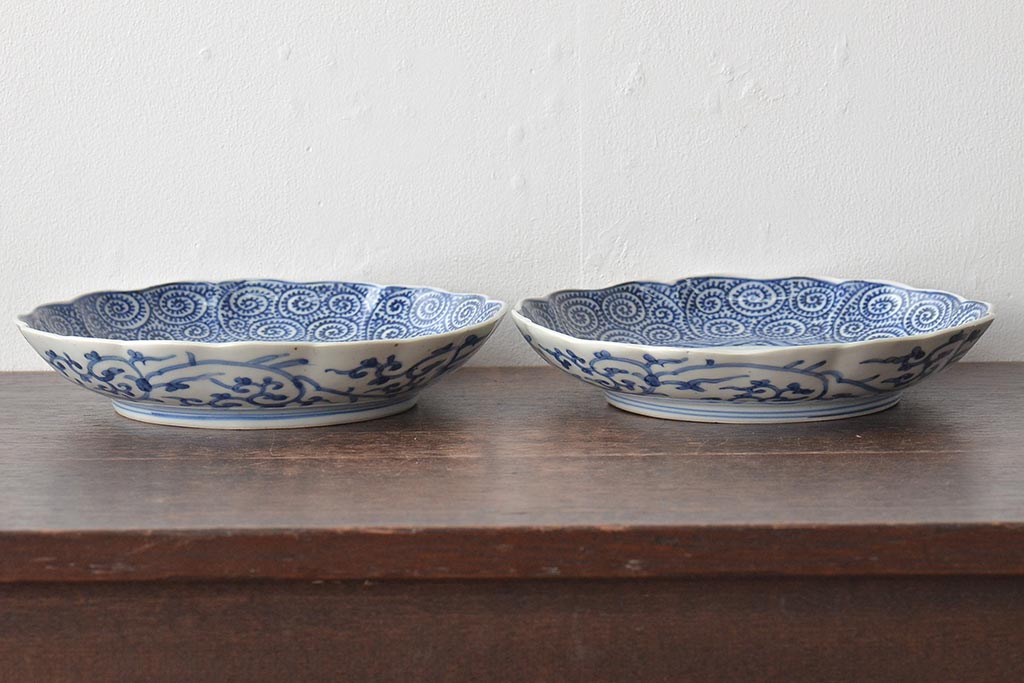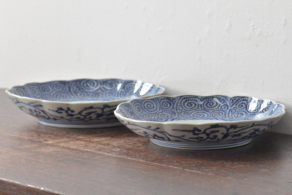 ラフジュ工房> 骨董・美術品> 骨董-陶磁器 > 江戸期 古伊万里 大明成化年製 蛸唐草文 七寸皿2枚(変形皿、和食器)(R-044920)