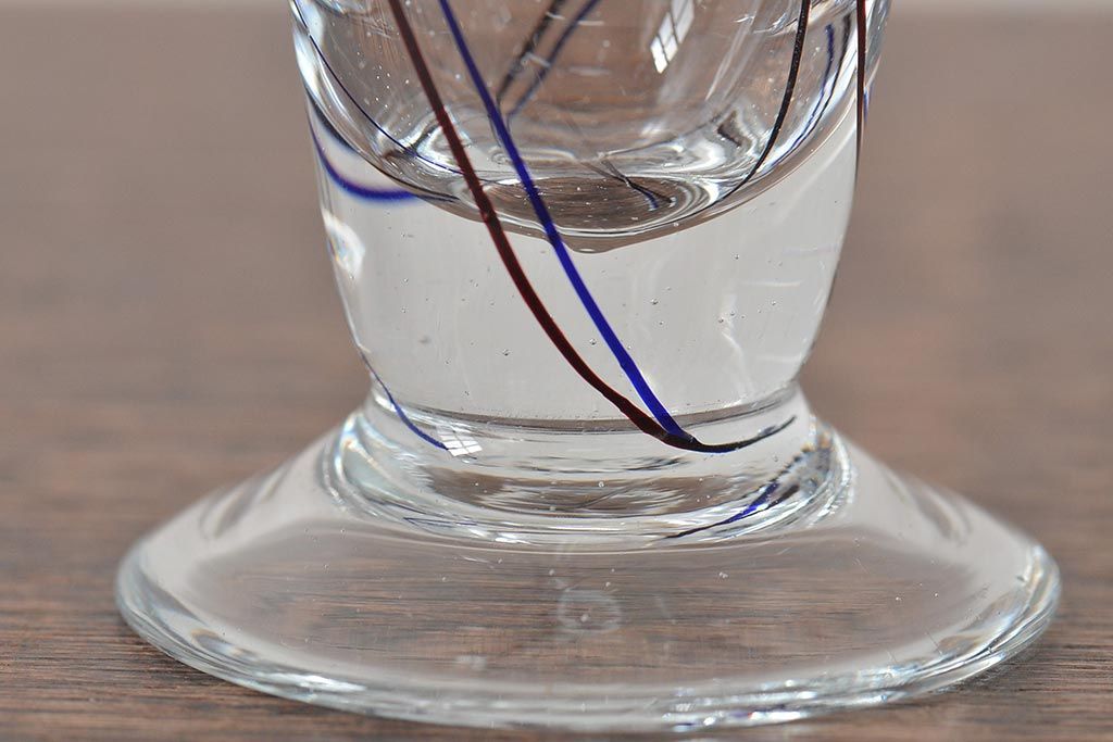 昭和初期 赤青ストライプ ガラスコップ6個セット(レトログラス、和ガラス)(R-044977)