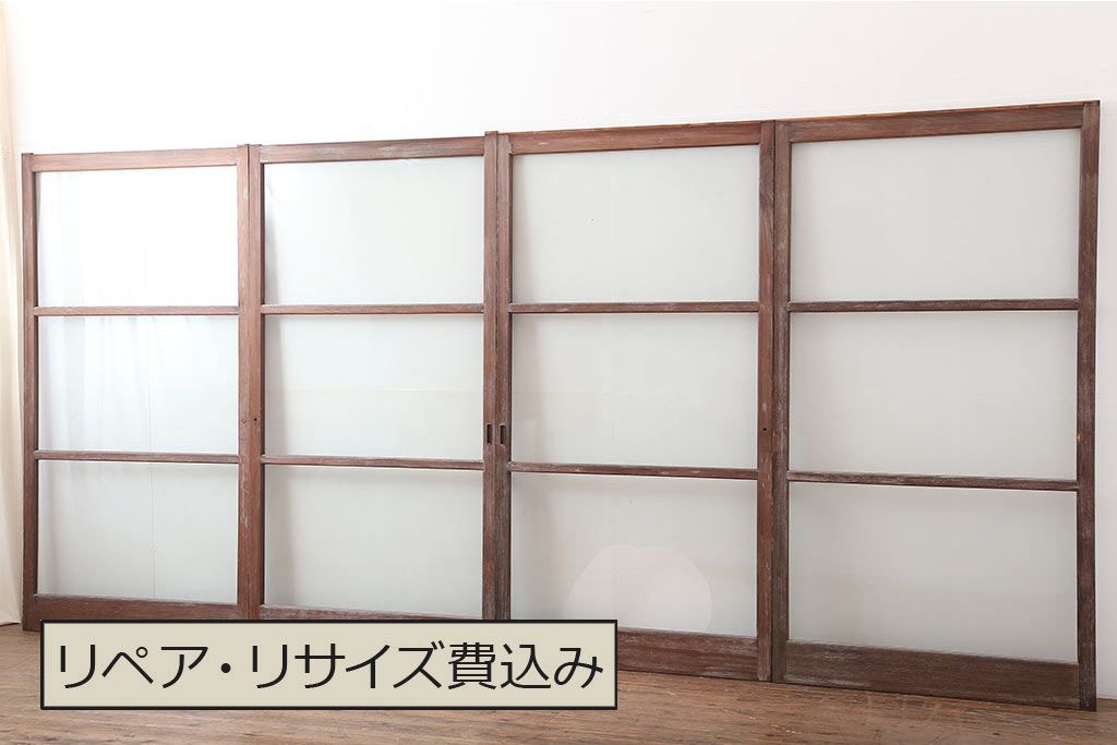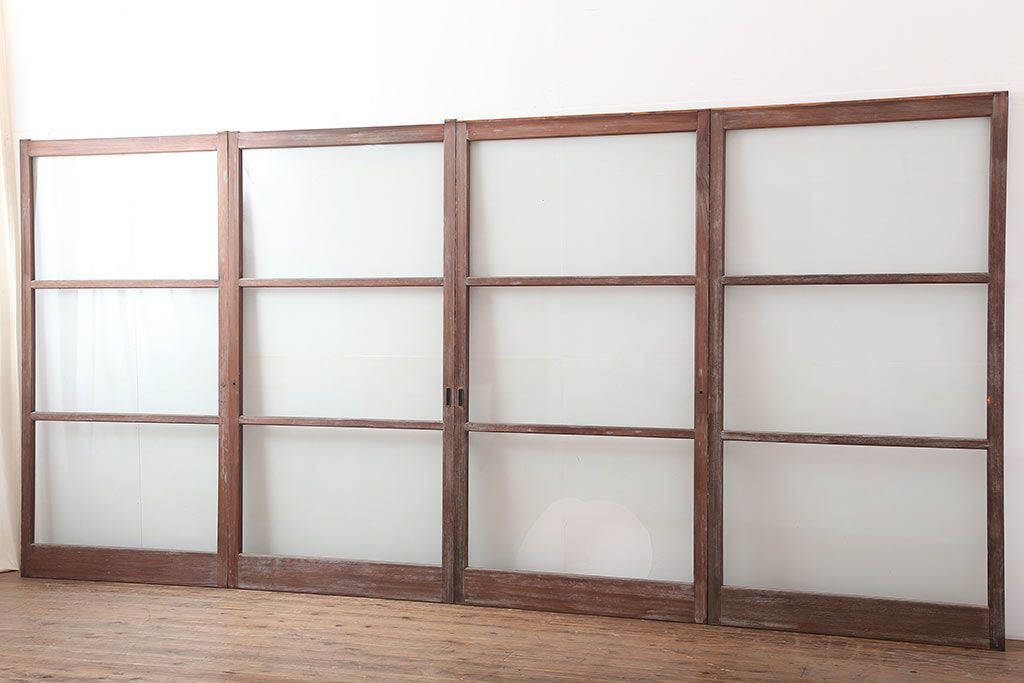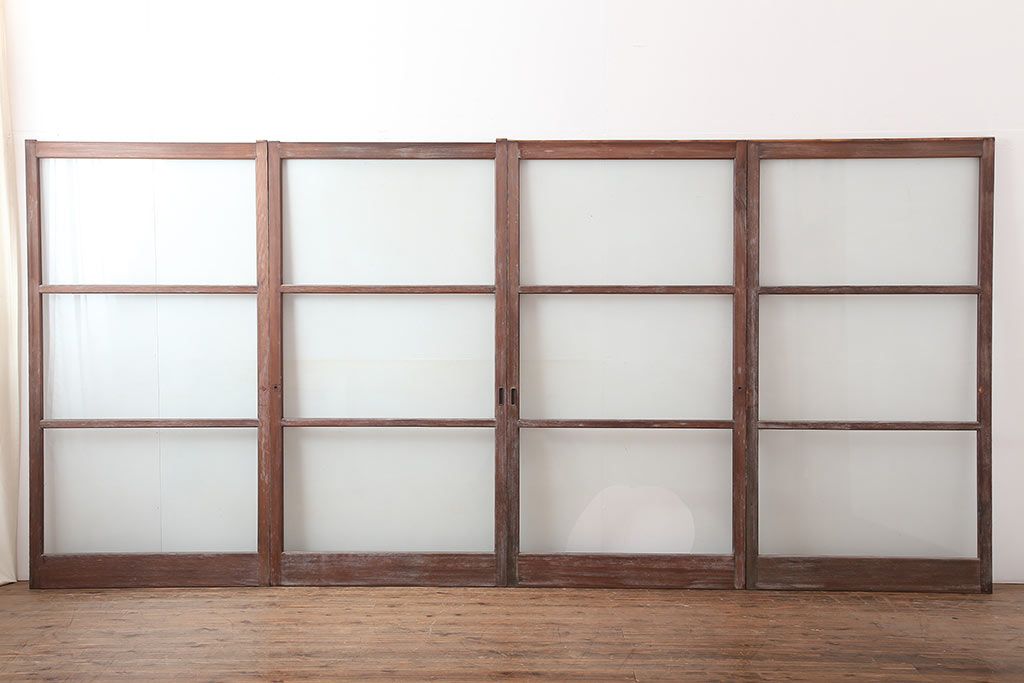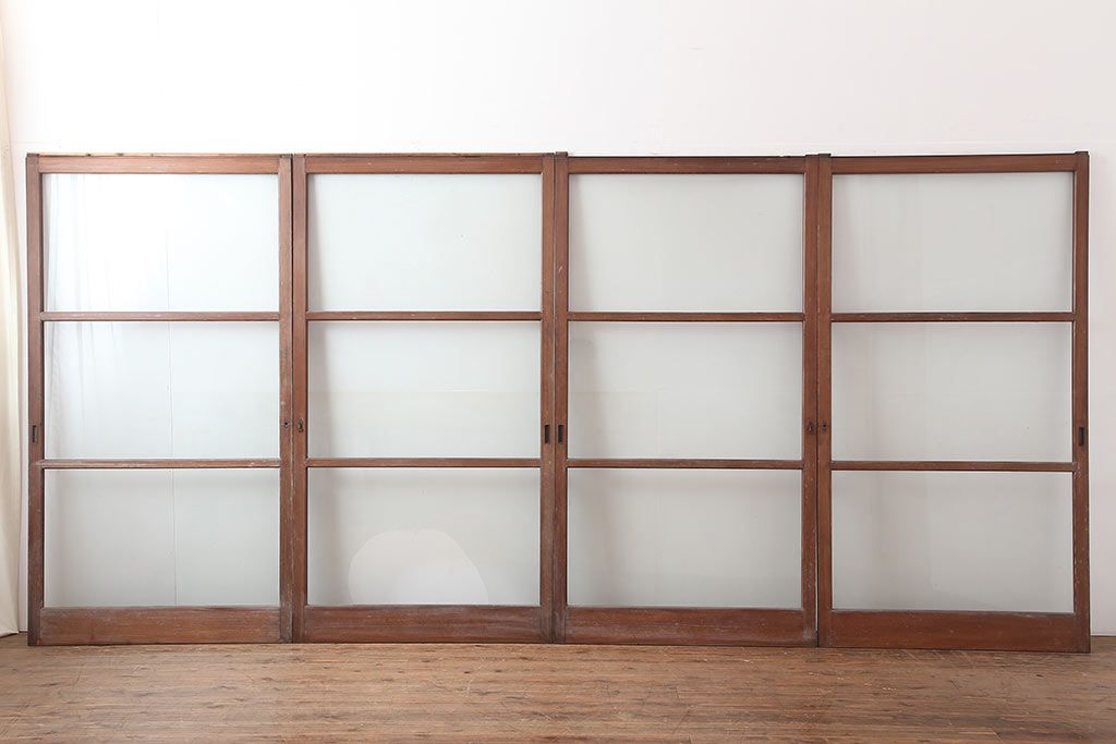 レトロ建具 昭和中期 シンプルなデザインのガラス戸4枚セット(引き戸)(R-044807)
