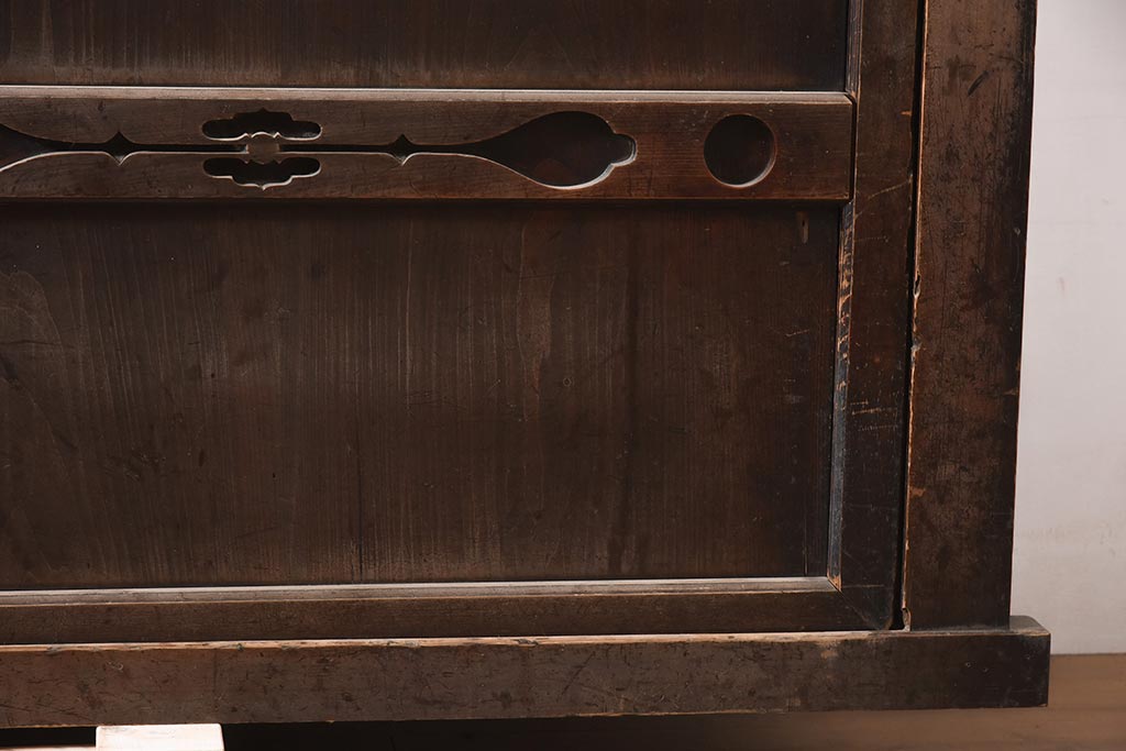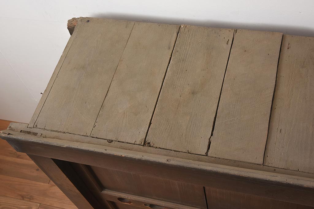 ラフジュ工房> キャビネット・戸棚> 食器棚・カップボード > 和製アンティーク 明治期 六尺 出し14杯付き 和の風格漂う重ね水屋箪笥・重ね(収納棚、戸棚、チェスト、引き出し、収納箪笥、整理たんす)(R-044957)