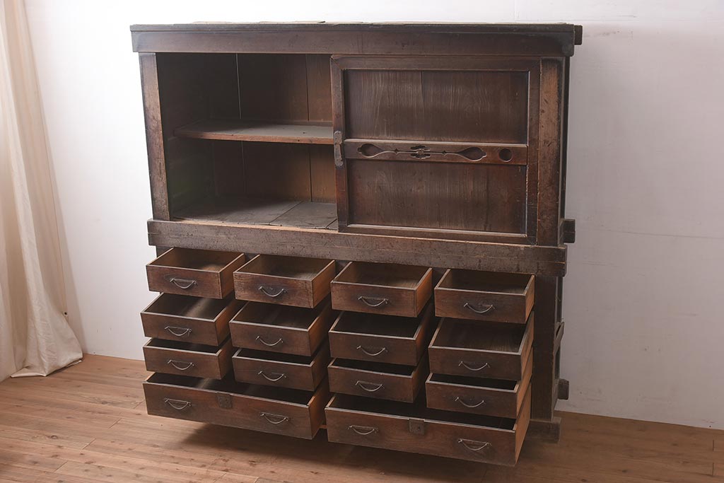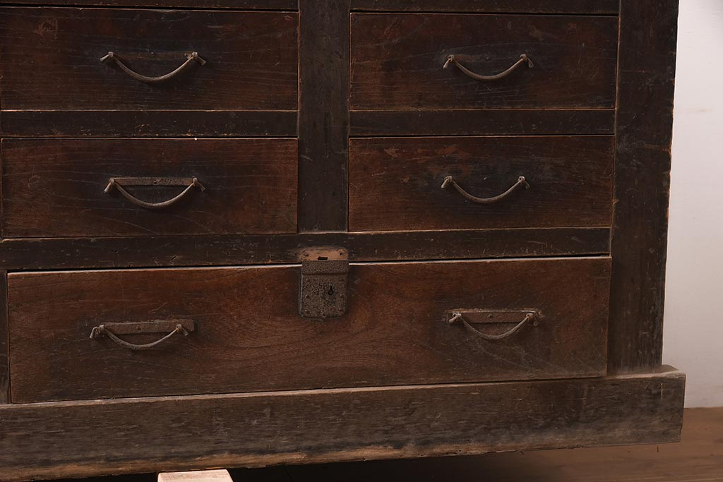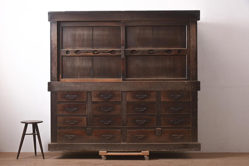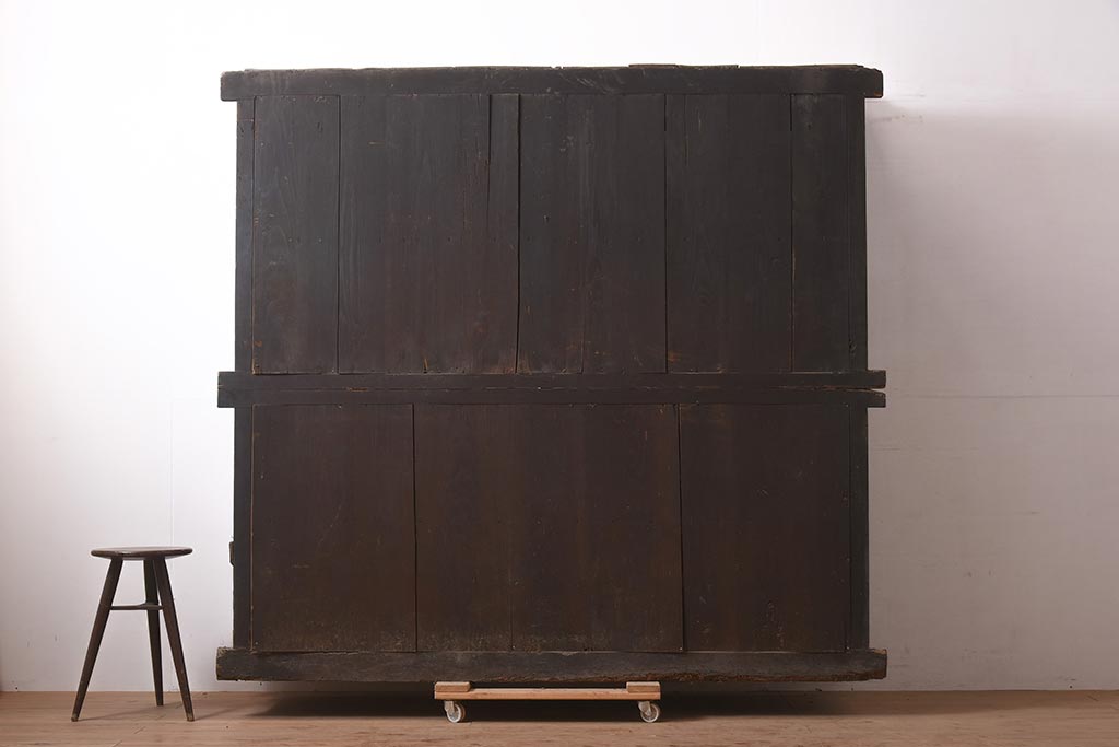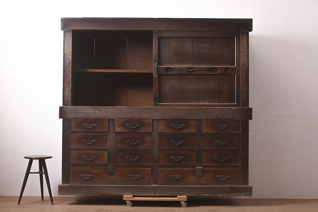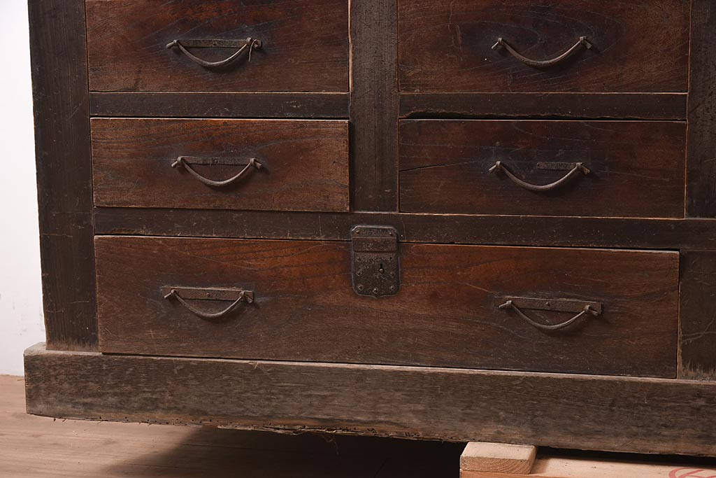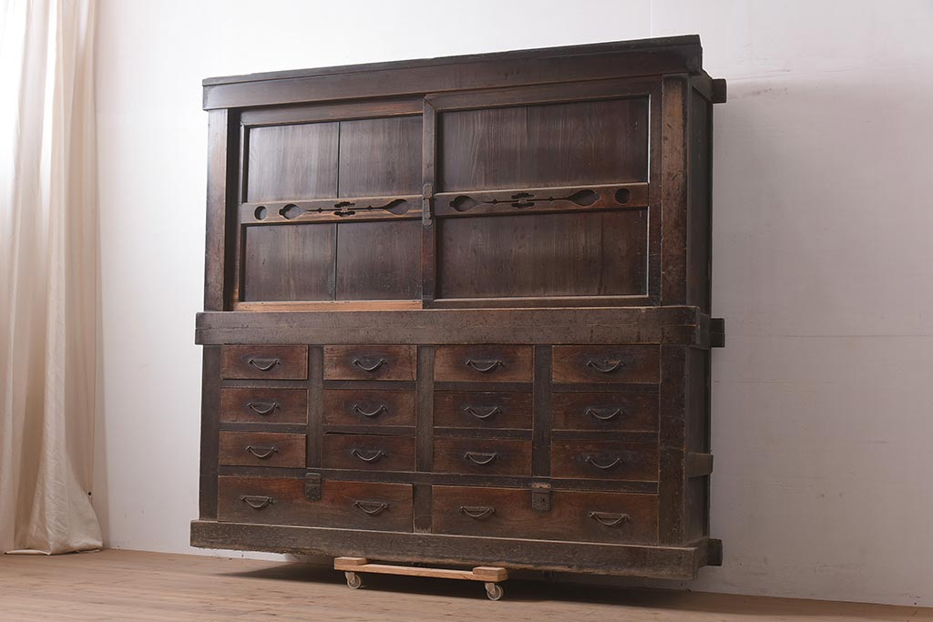 ラフジュ工房> 和箪笥> 水屋箪笥 > 和製アンティーク 明治期 六尺 出し14杯付き 和の風格漂う重ね水屋箪笥・重ね(収納棚、戸棚、チェスト、引き出し、収納箪笥、整理たんす)(R-044957)