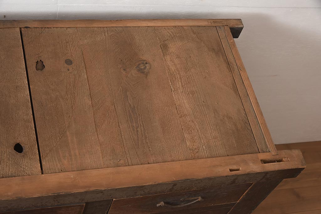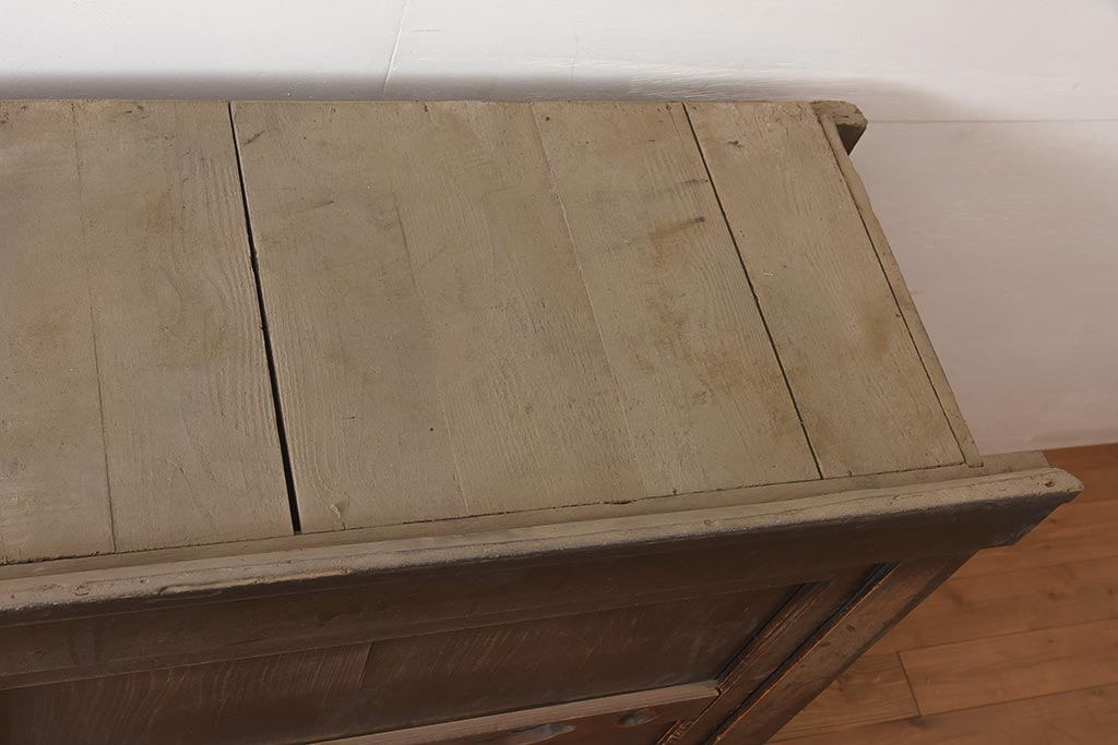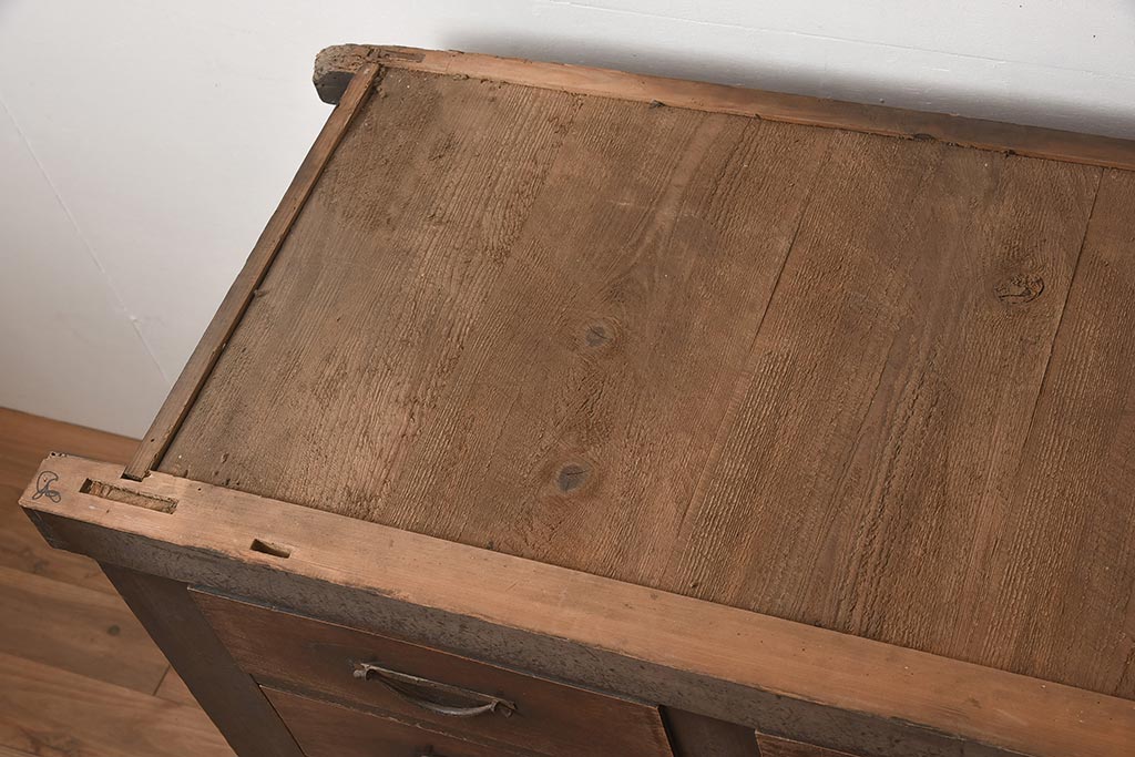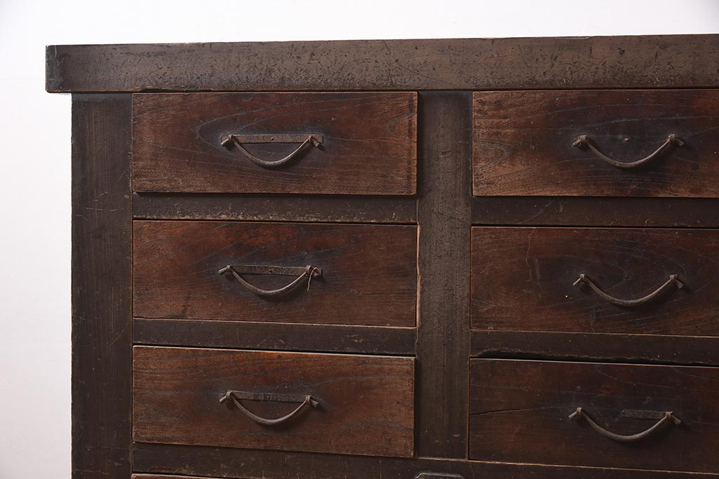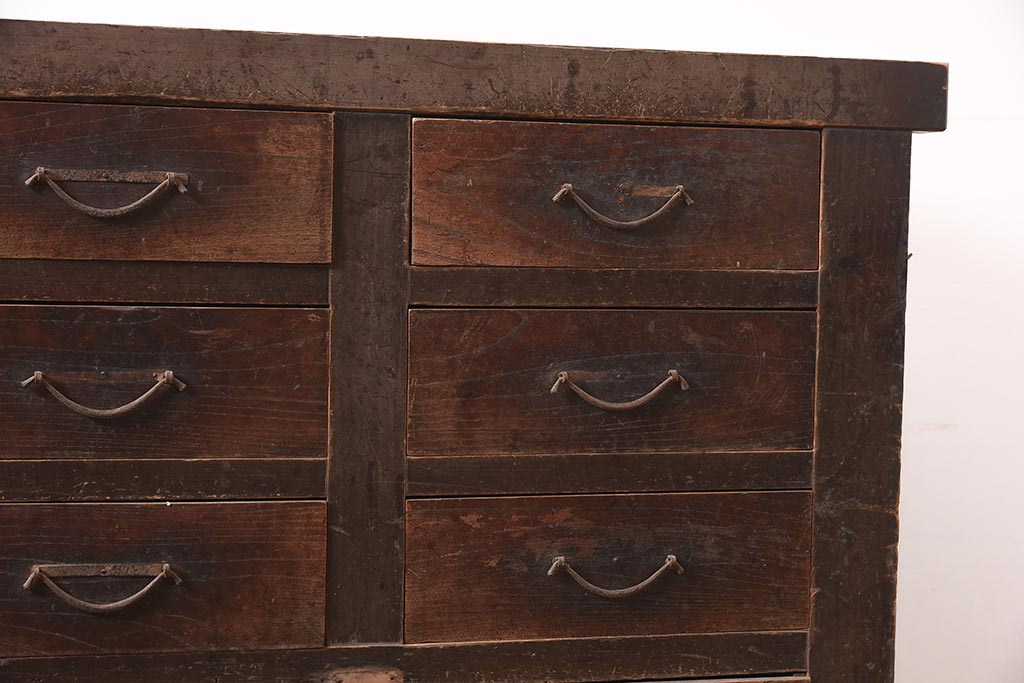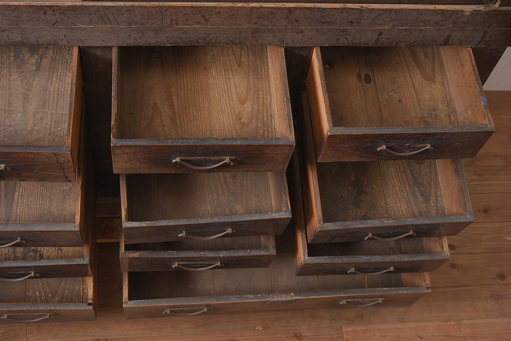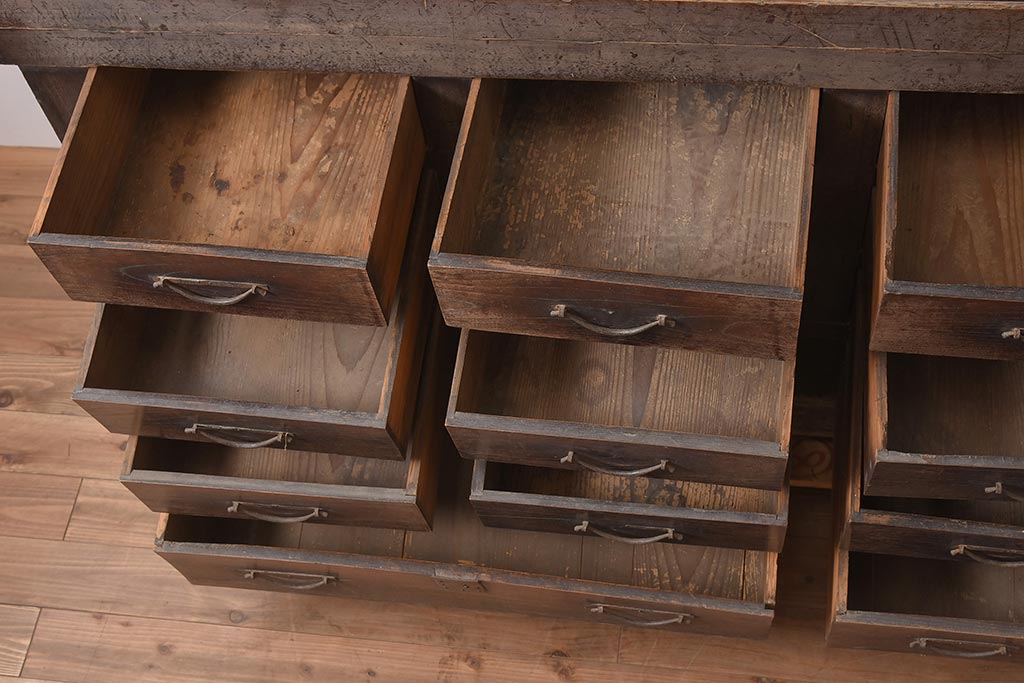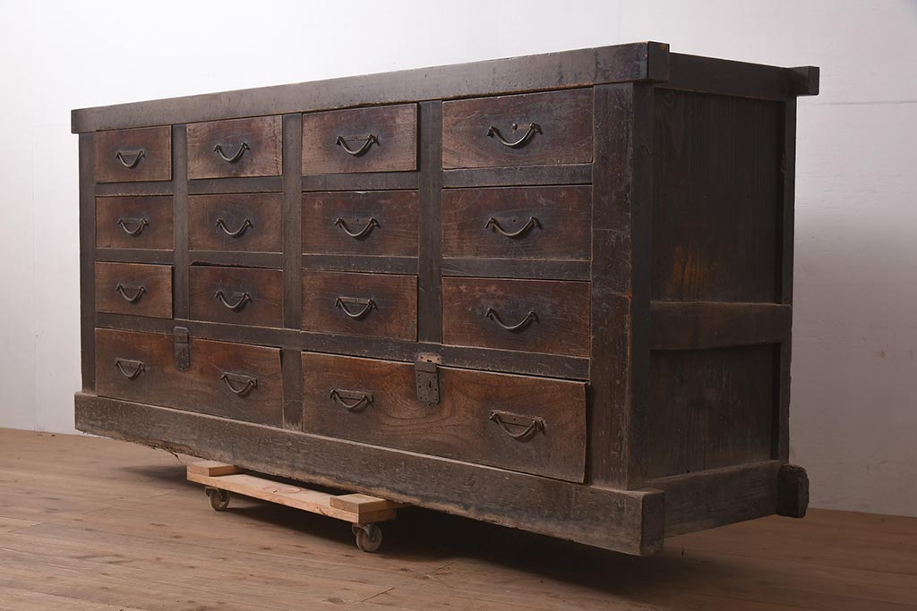 ラフジュ工房> 和箪笥> 水屋箪笥 > 和製アンティーク 明治期 六尺 出し14杯付き 和の風格漂う重ね水屋箪笥・重ね(収納棚、戸棚、チェスト、引き出し、収納箪笥、整理たんす)(R-044957)