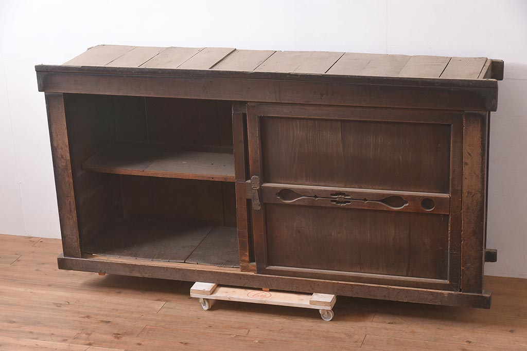 和製アンティーク 明治期 六尺 和の風格漂う重ね水屋箪笥・上段(収納棚、戸棚)(R-044955)です。