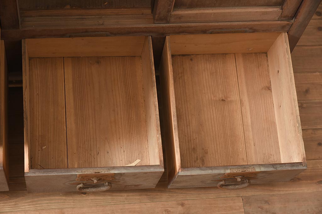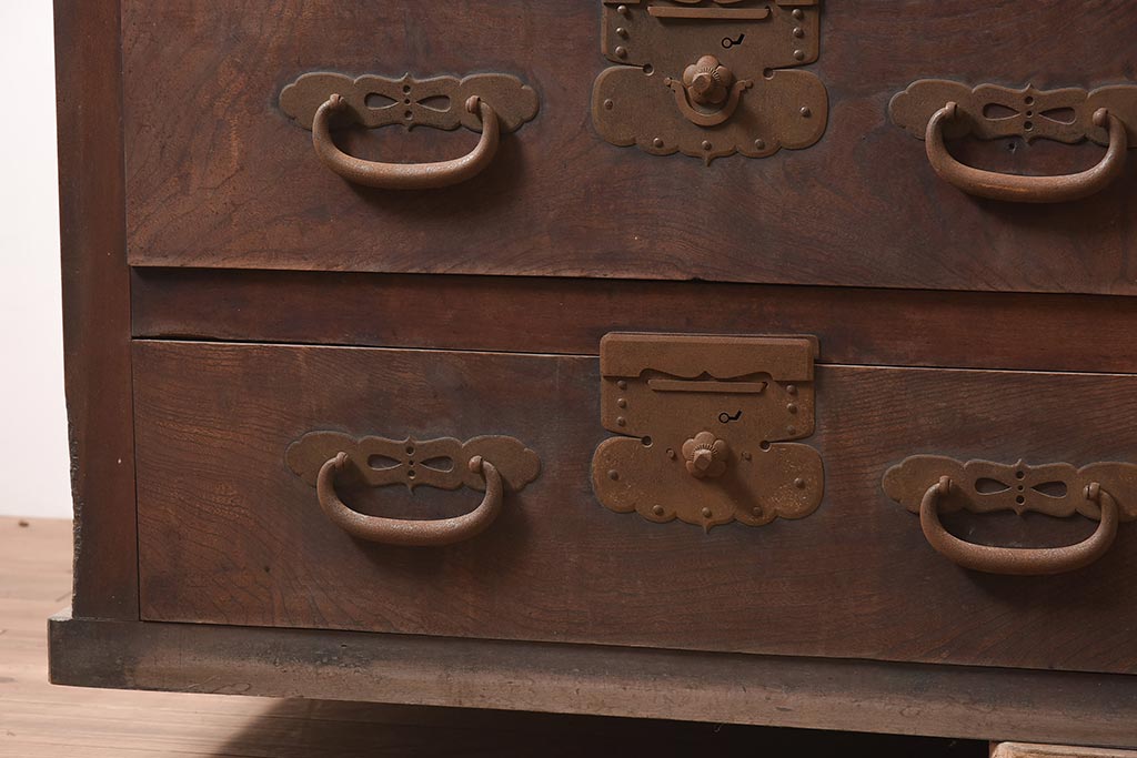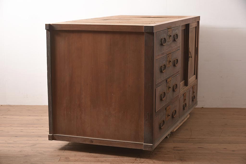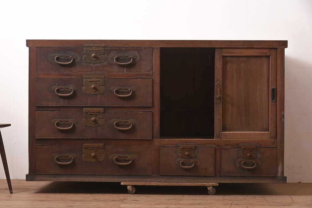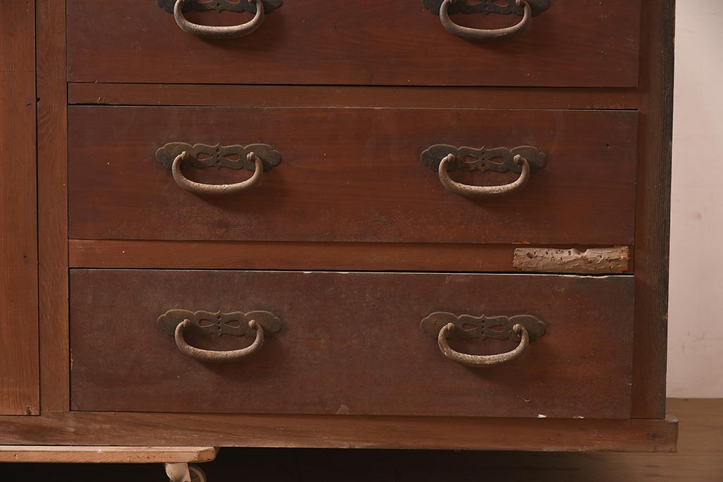 和製アンティーク 明治期 前面ケヤキ材・サクラ材 古い木の温もりを感じる重ね水屋箪笥・下段(収納棚、戸棚、ローボード)(R-036340)