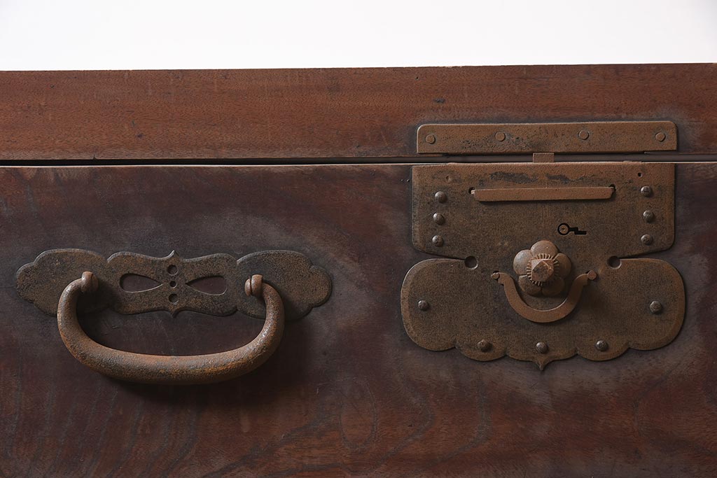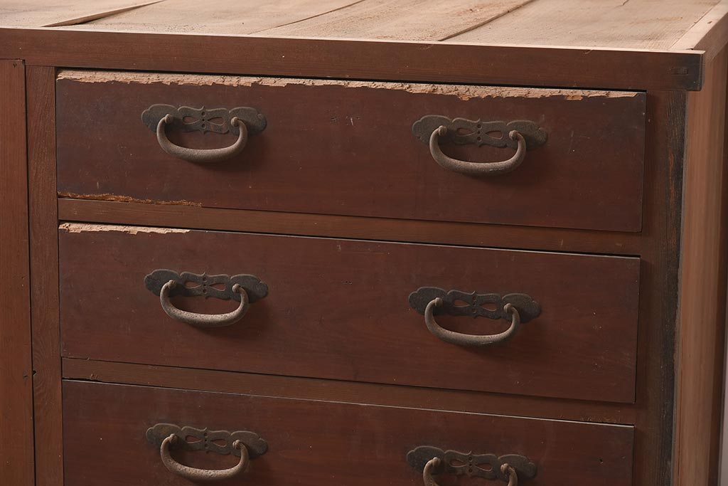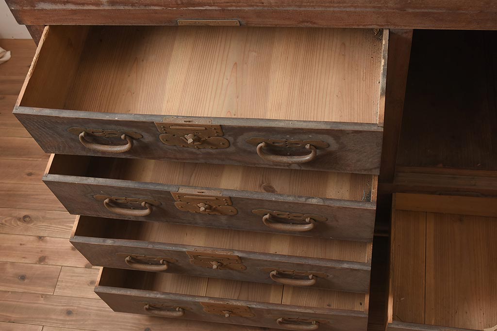 ラフジュ工房> キャビネット・戸棚> 食器棚・カップボード > 和製アンティーク 明治期 前面ケヤキ材・サクラ材 古い木の温もりを感じる重ね水屋箪笥・下段(収納棚、戸棚、ローボード)(R-036340)