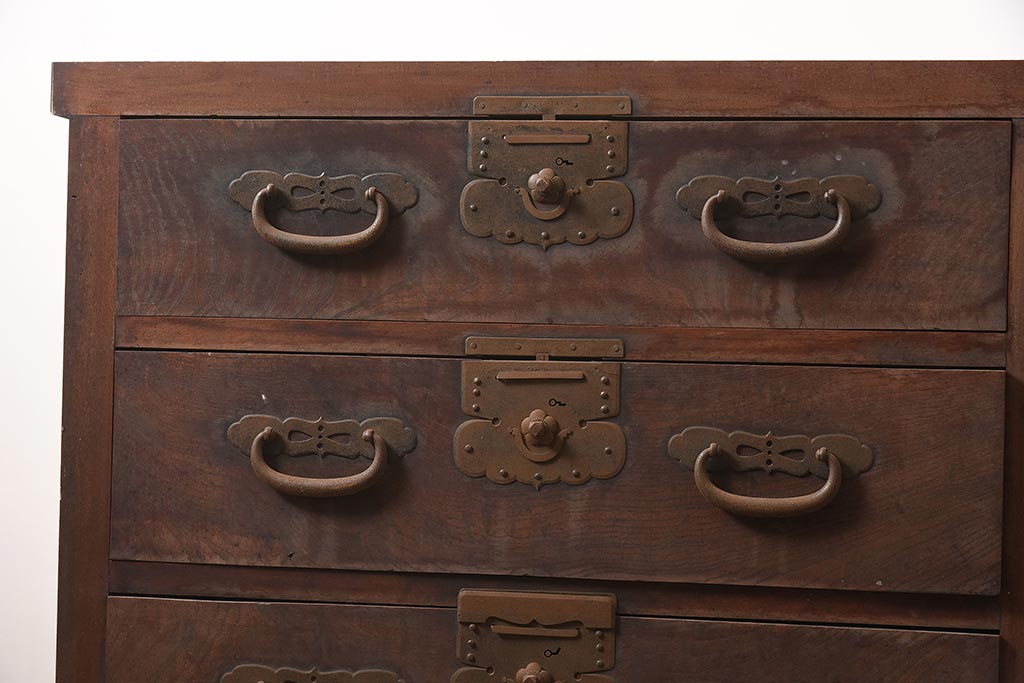 ラフジュ工房> 和箪笥> 水屋箪笥 > 和製アンティーク 明治期 前面ケヤキ材・サクラ材 古い木の温もりを感じる重ね水屋箪笥・下段(収納棚、戸棚、ローボード)(R-036340)