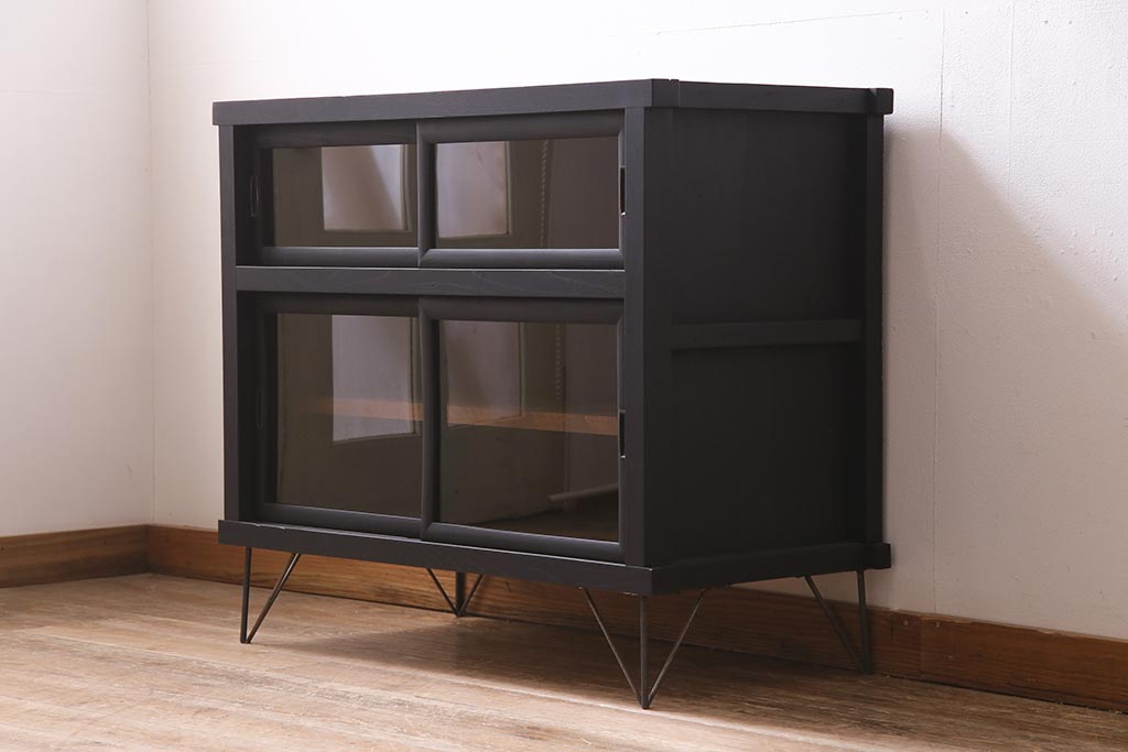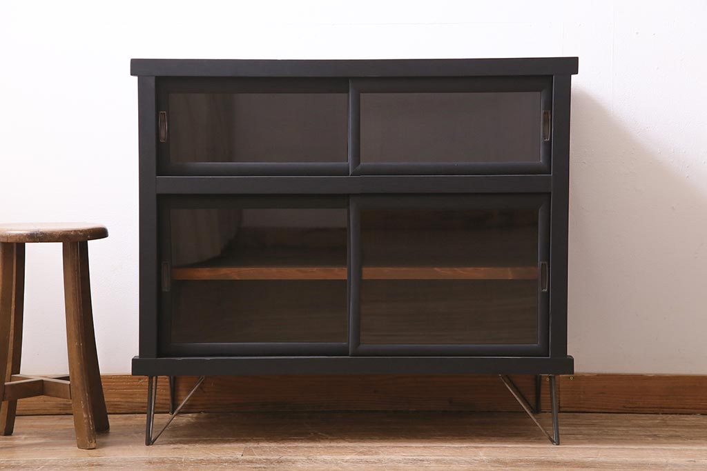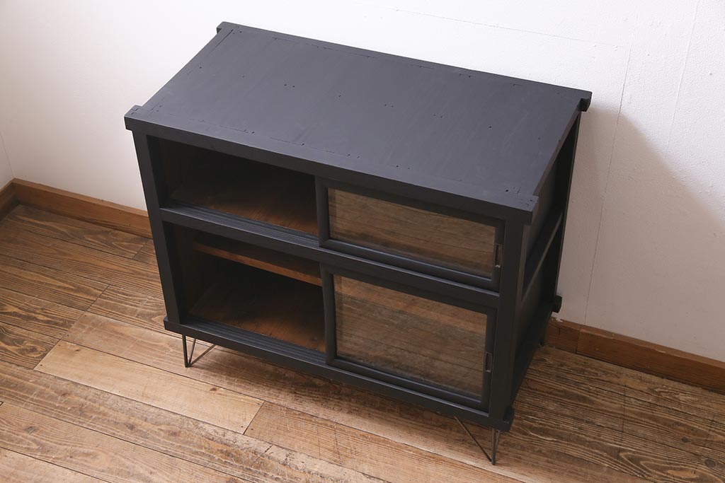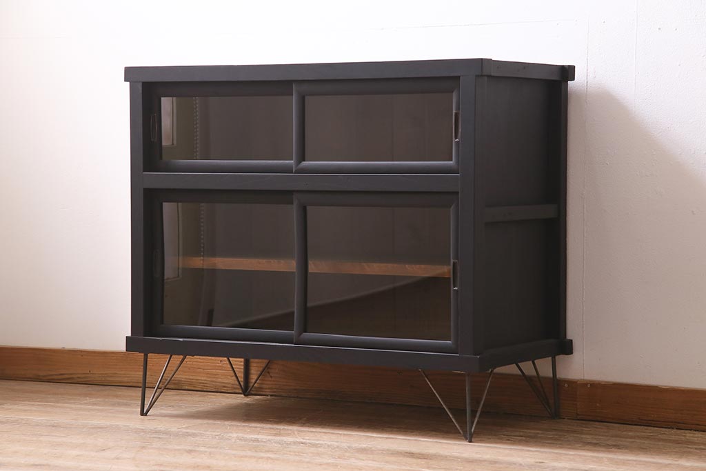 アンティーク家具 大正昭和初期 リメイク メンズライクなお部屋におすすめの脚付きリビングボード(収納棚、戸棚、テレビ台)(R-045131)