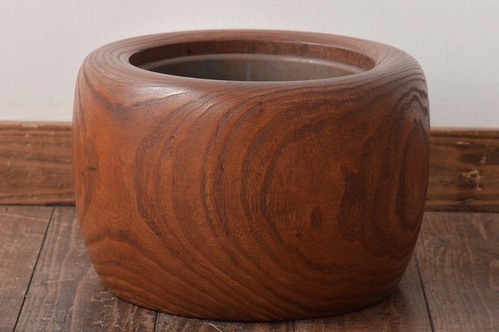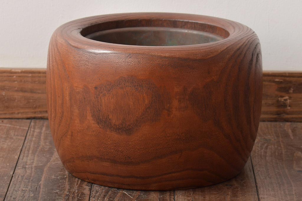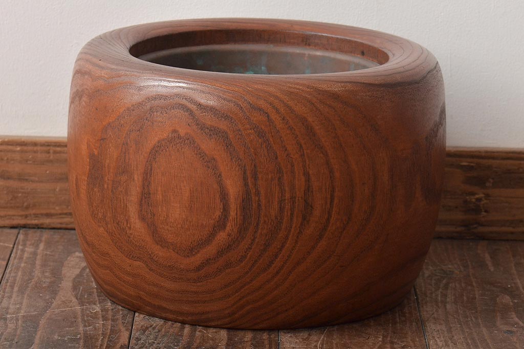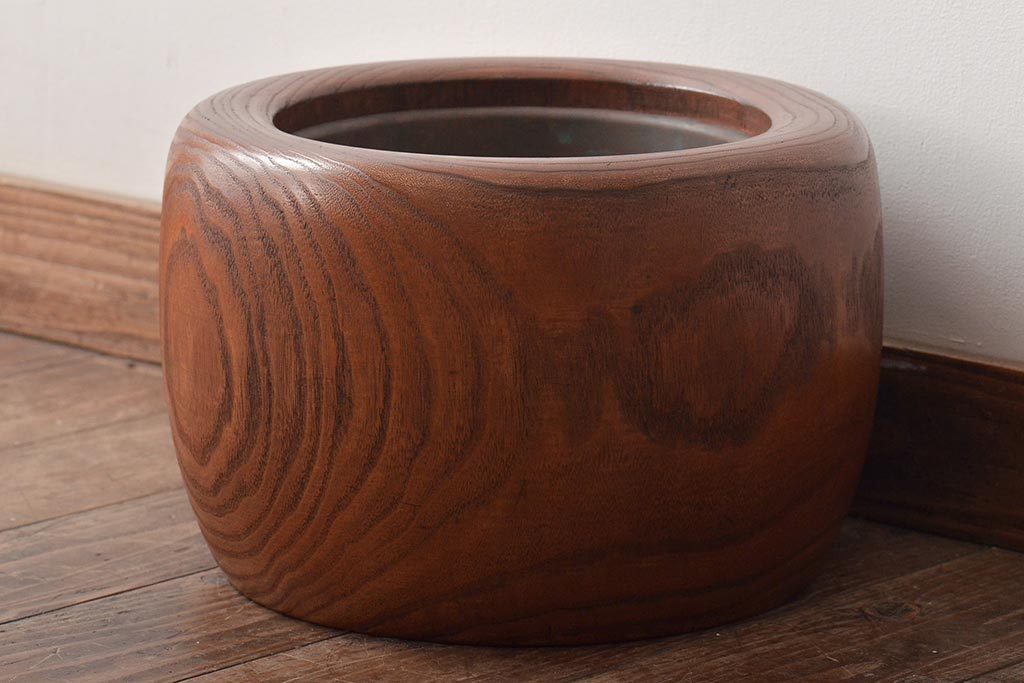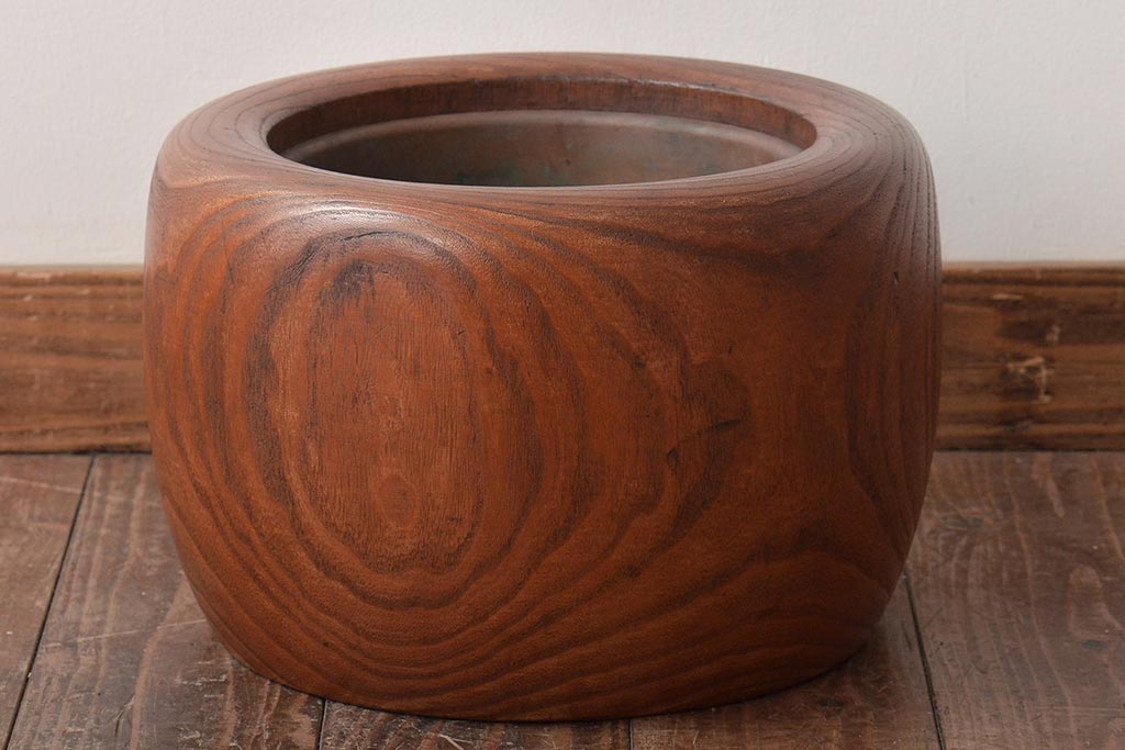アンティーク雑貨 壱壱○ くっきりとした木目が目を引く桐火鉢(木製火鉢、鉢カバー)(R-045343)