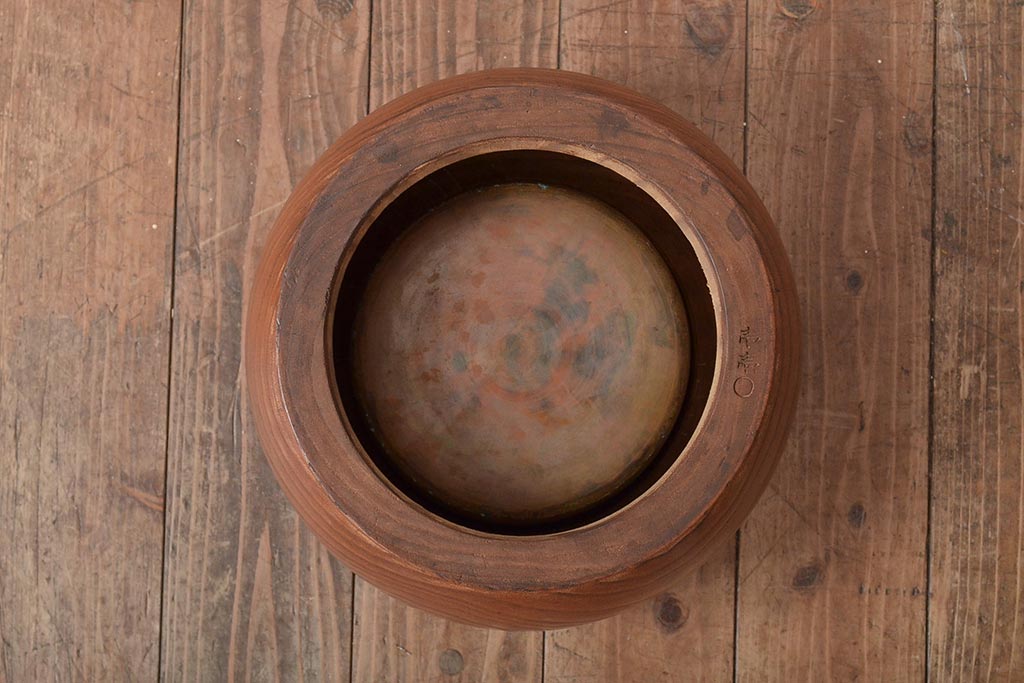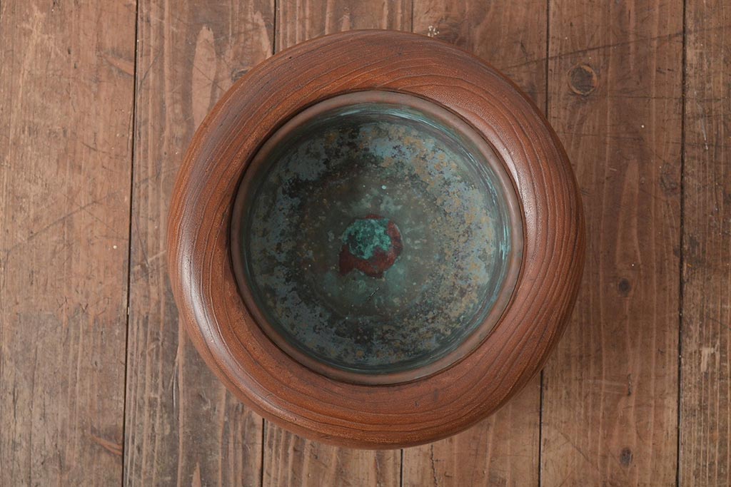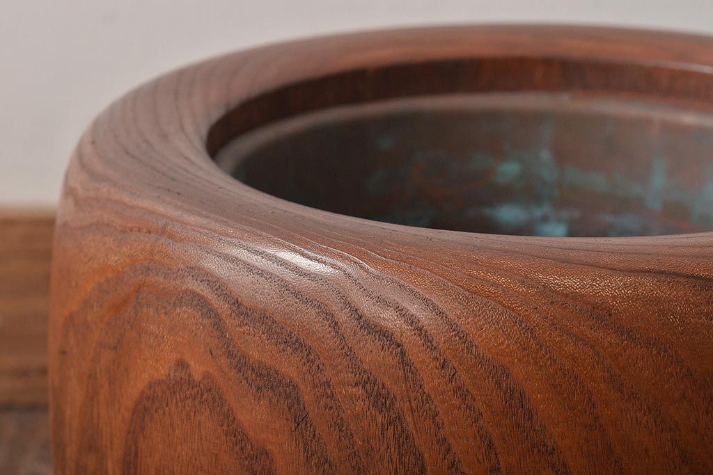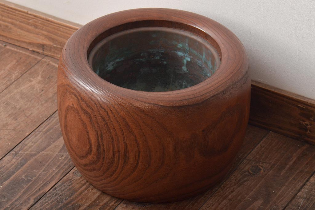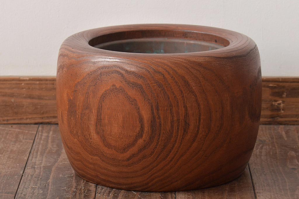 アンティーク雑貨 壱壱○ くっきりとした木目が目を引く桐火鉢(木製火鉢、鉢カバー)(R-045343)