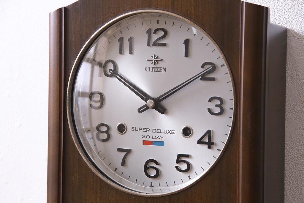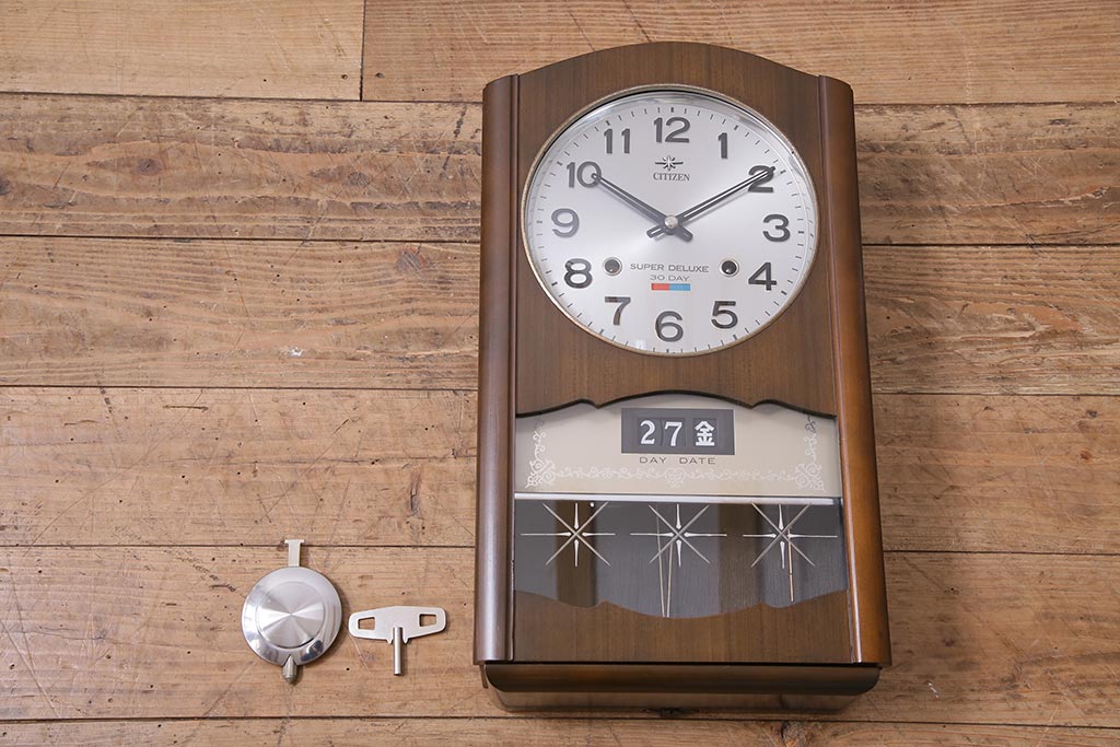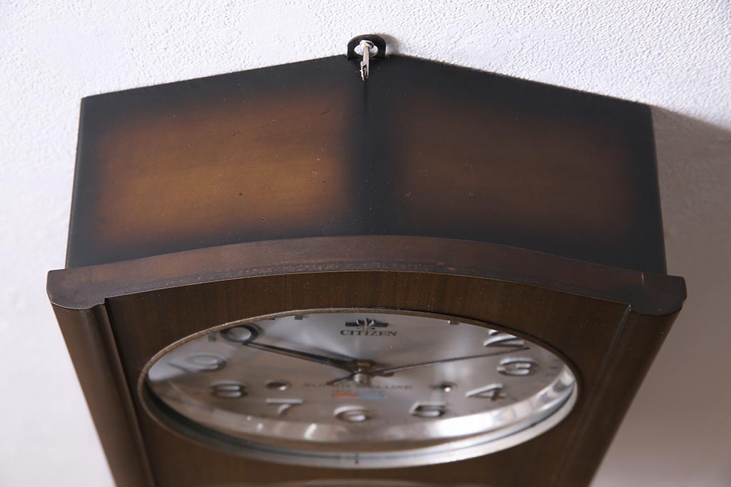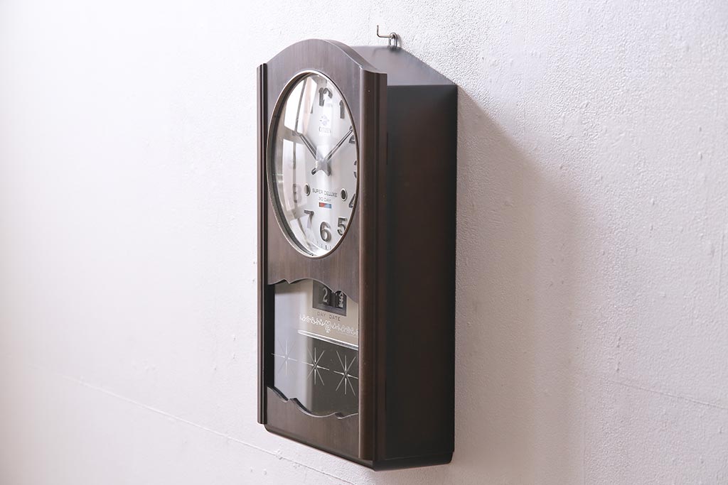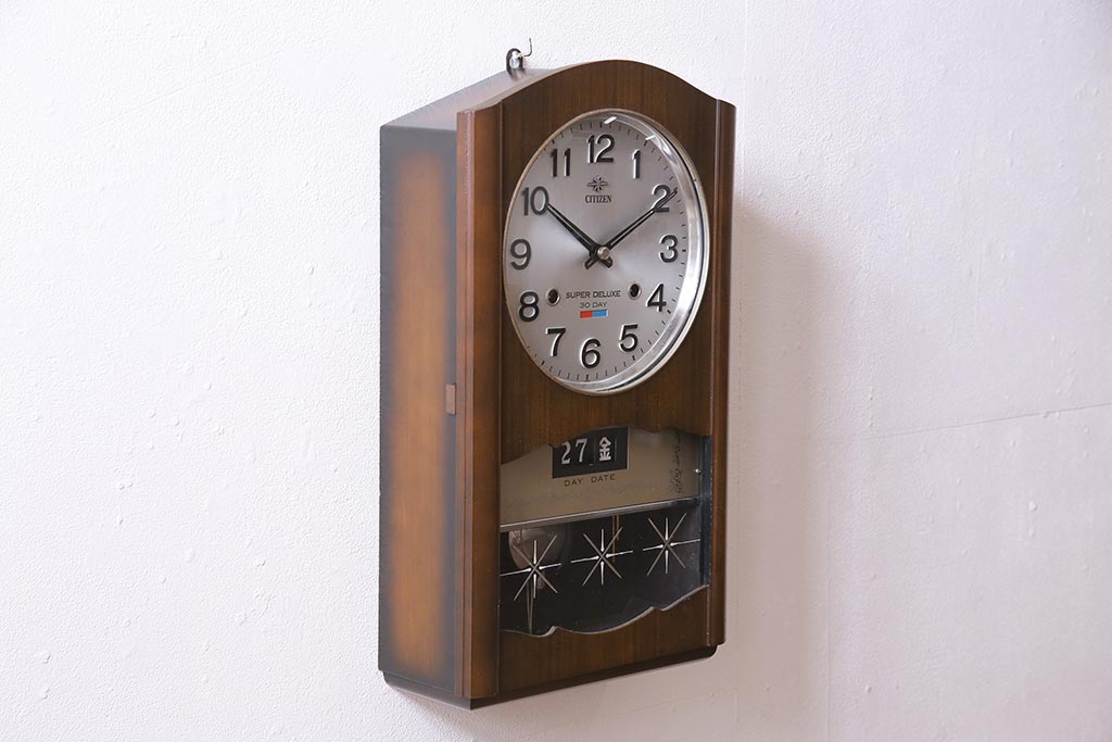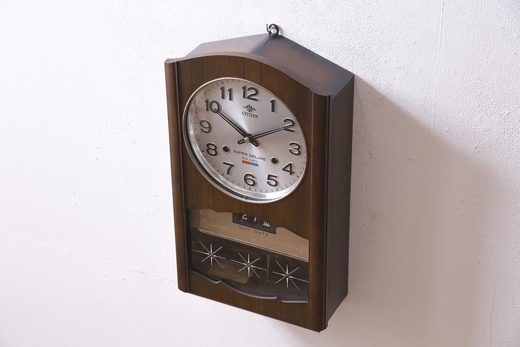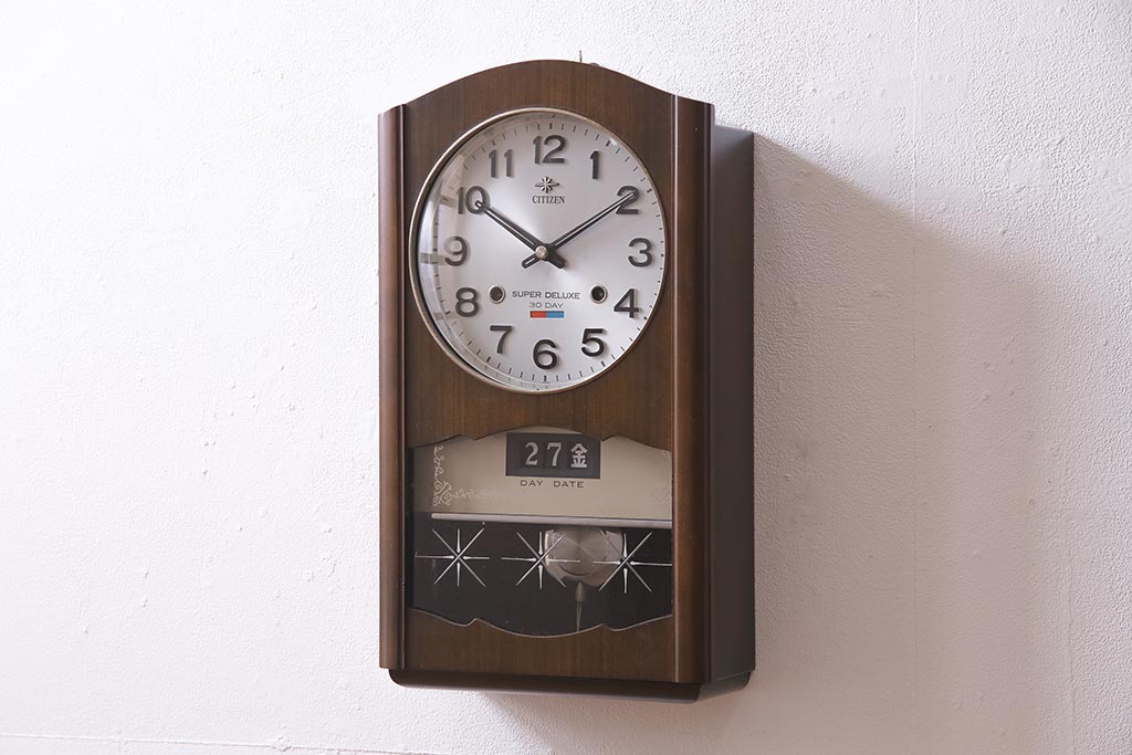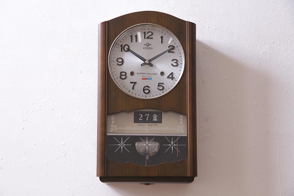 ビンテージ時計 昭和中期 CITIZEN(シチズン) ゼンマイ式 カレンダー付き30日巻き 昔懐かしい昭和レトロな壁掛け時計(振り子時計、柱時計)(R-045058)