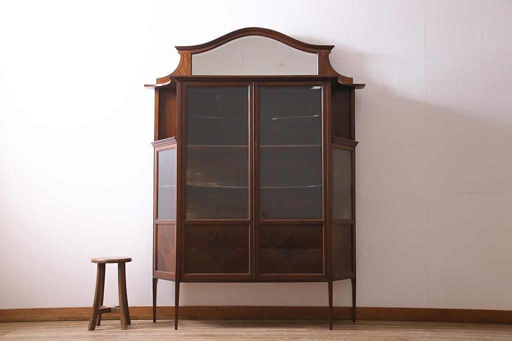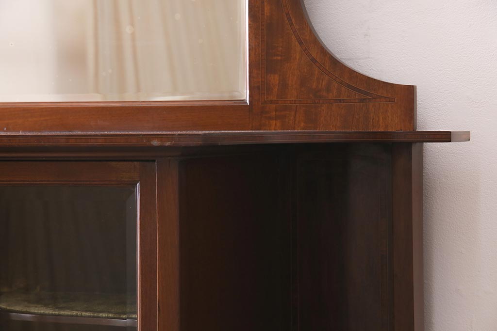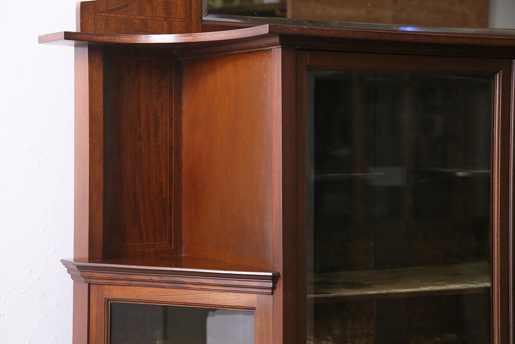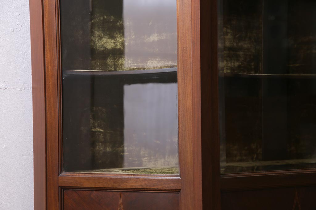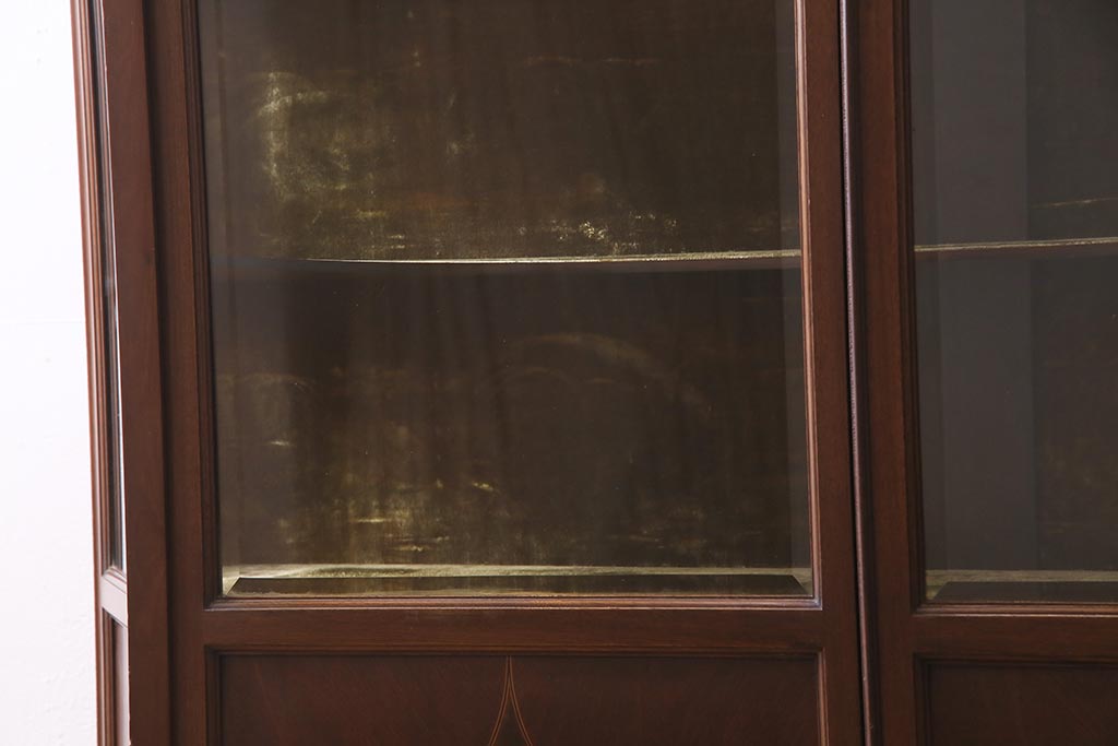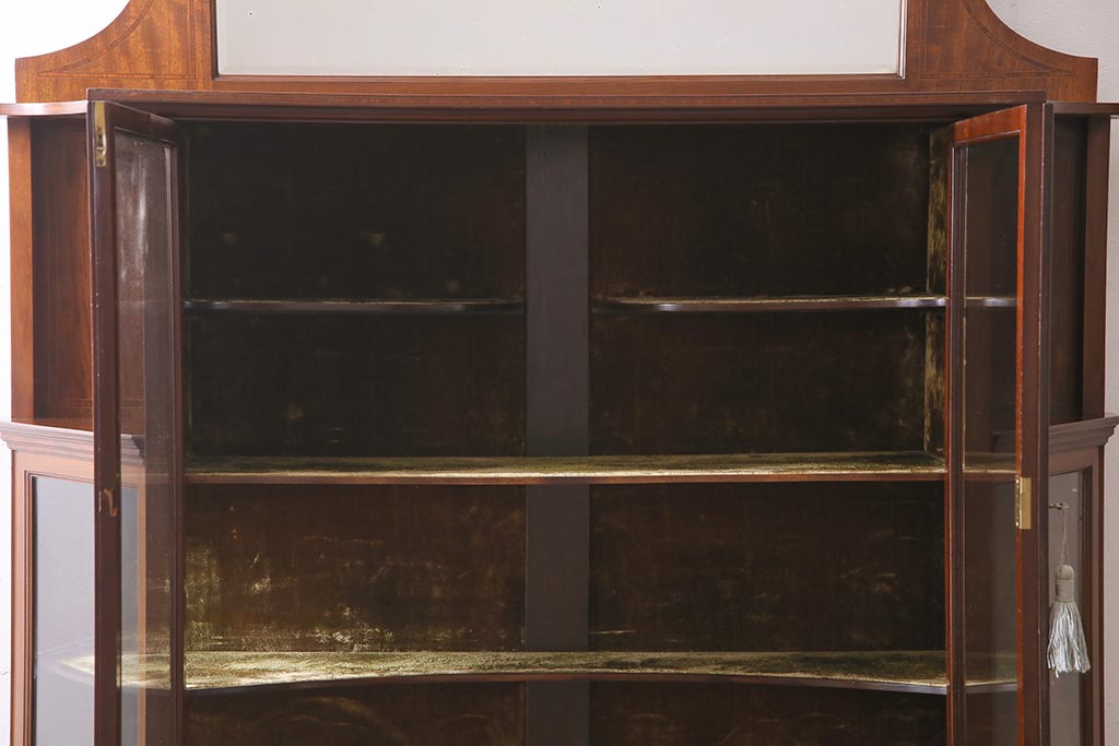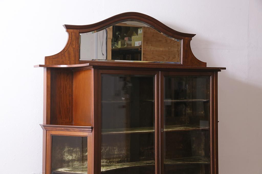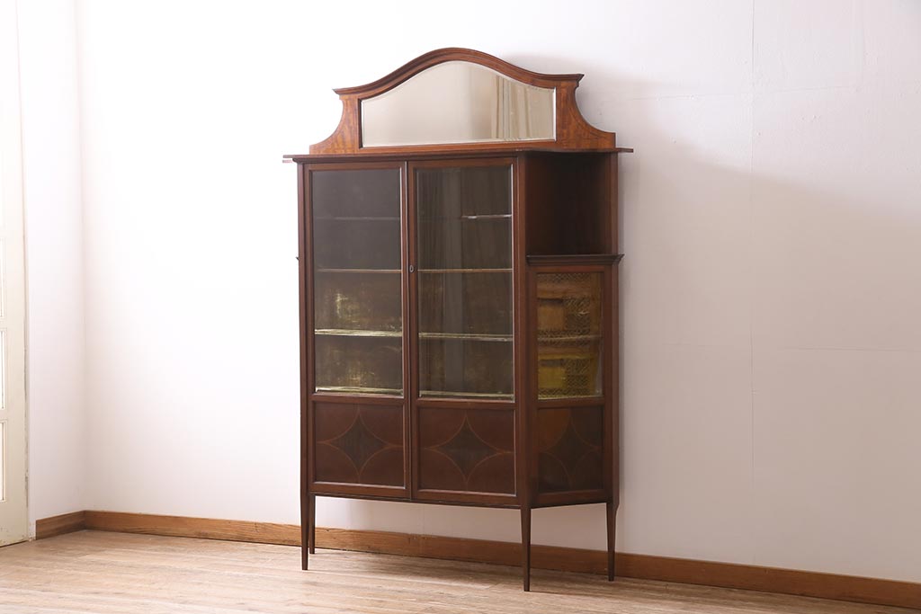 アンティーク家具 イギリスアンティーク マホガニー材 ミラーバック 品の良い象眼細工入りのキャビネット(飾り棚、収納棚)(R-045147)です。