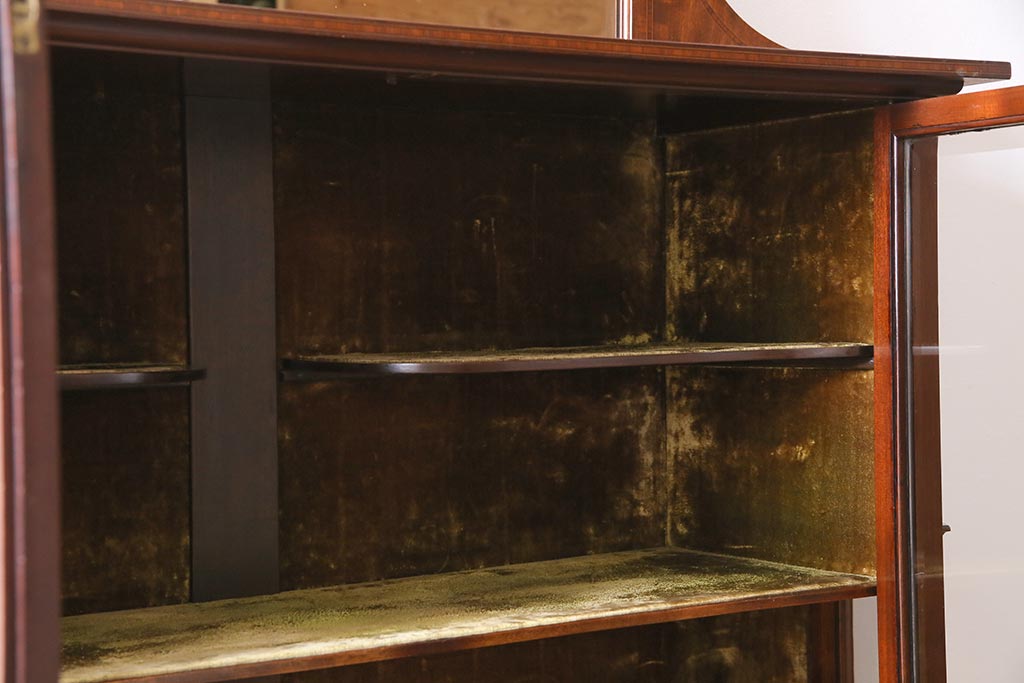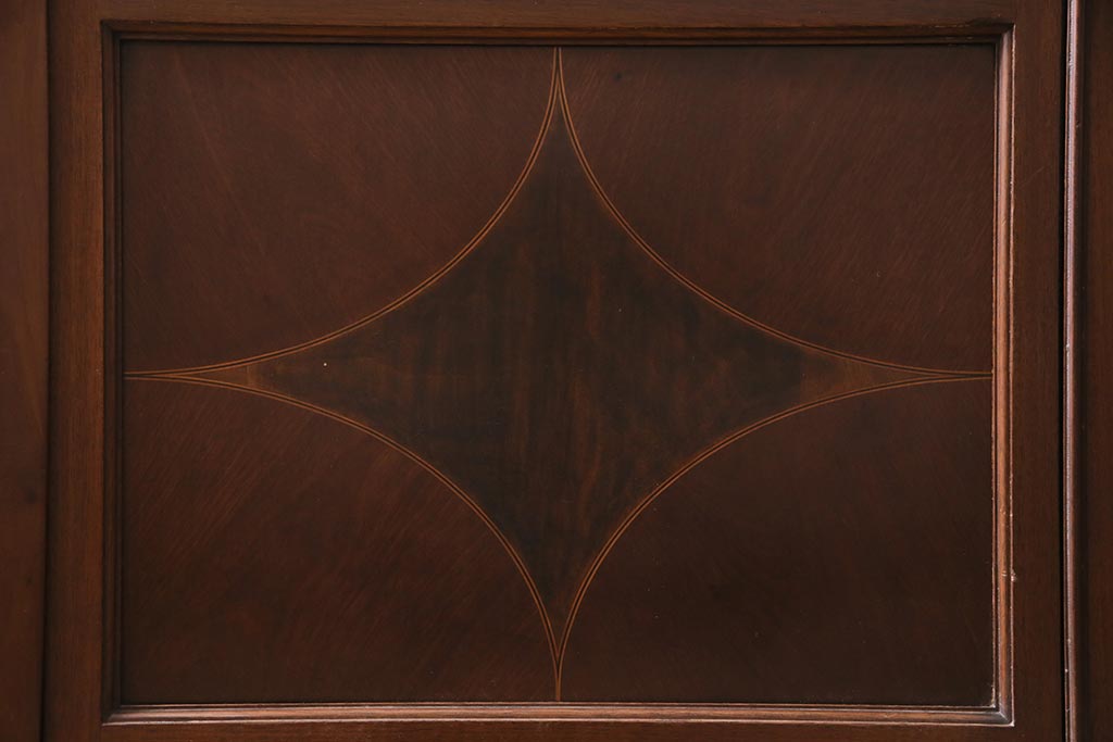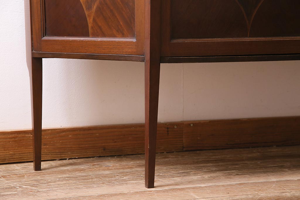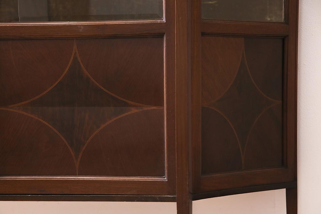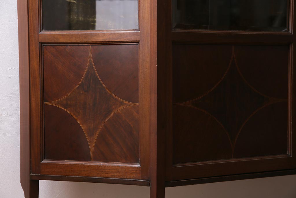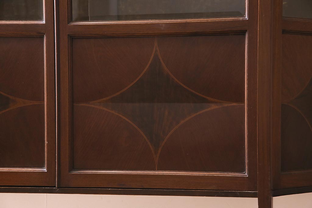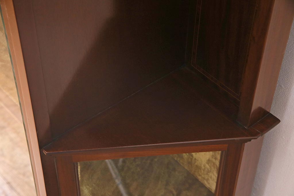 アンティーク家具 イギリスアンティーク マホガニー材 ミラーバック 品の良い象眼細工入りのキャビネット(飾り棚、収納棚)(R-045147)です。