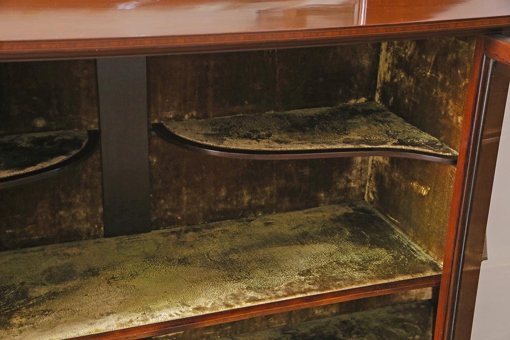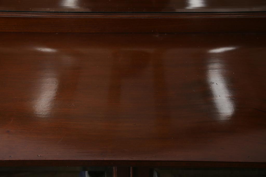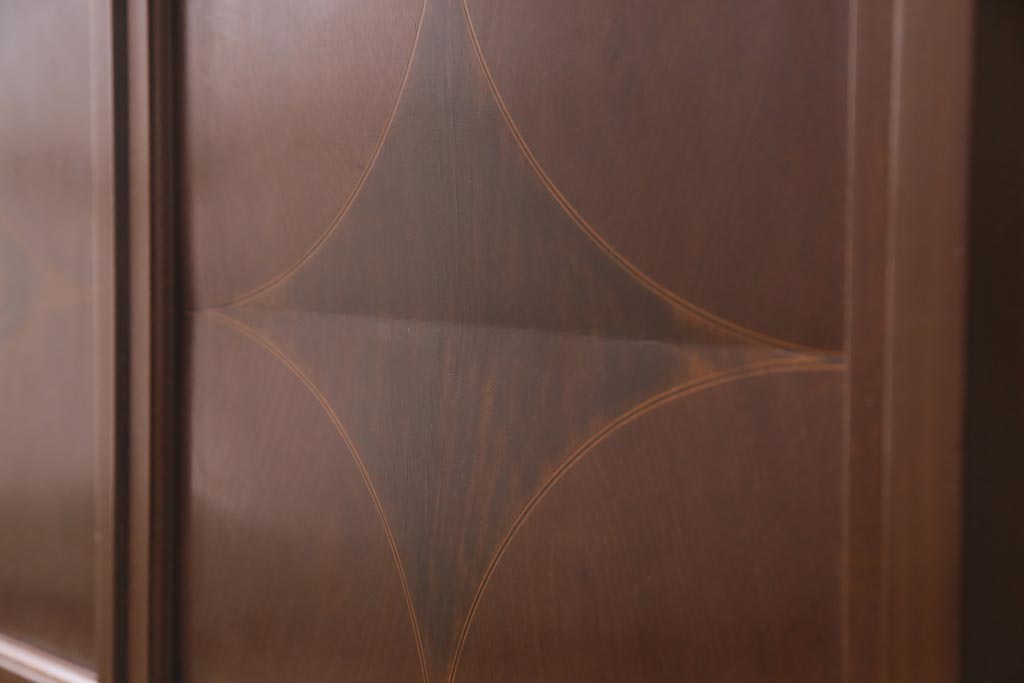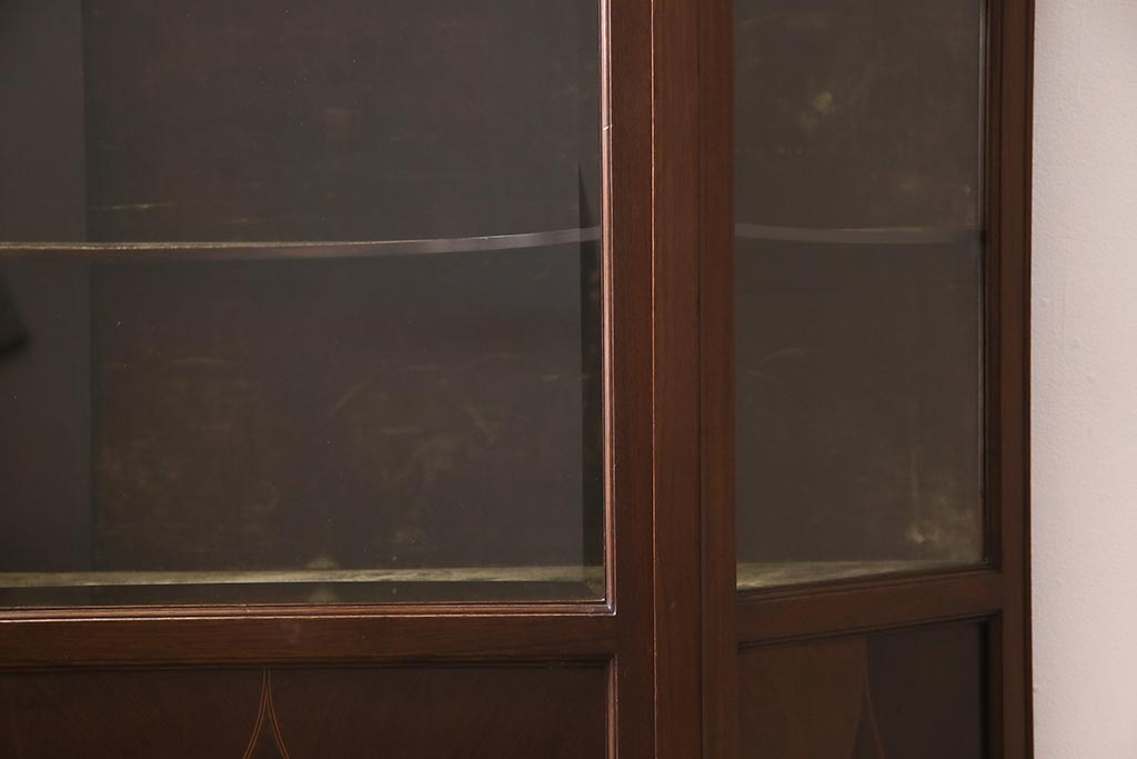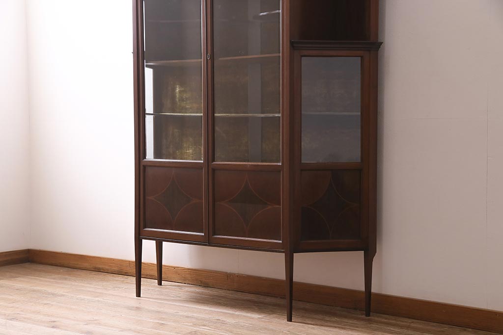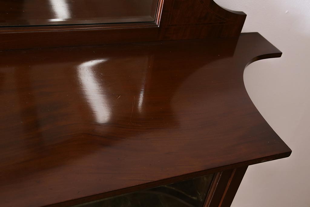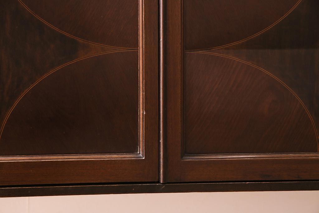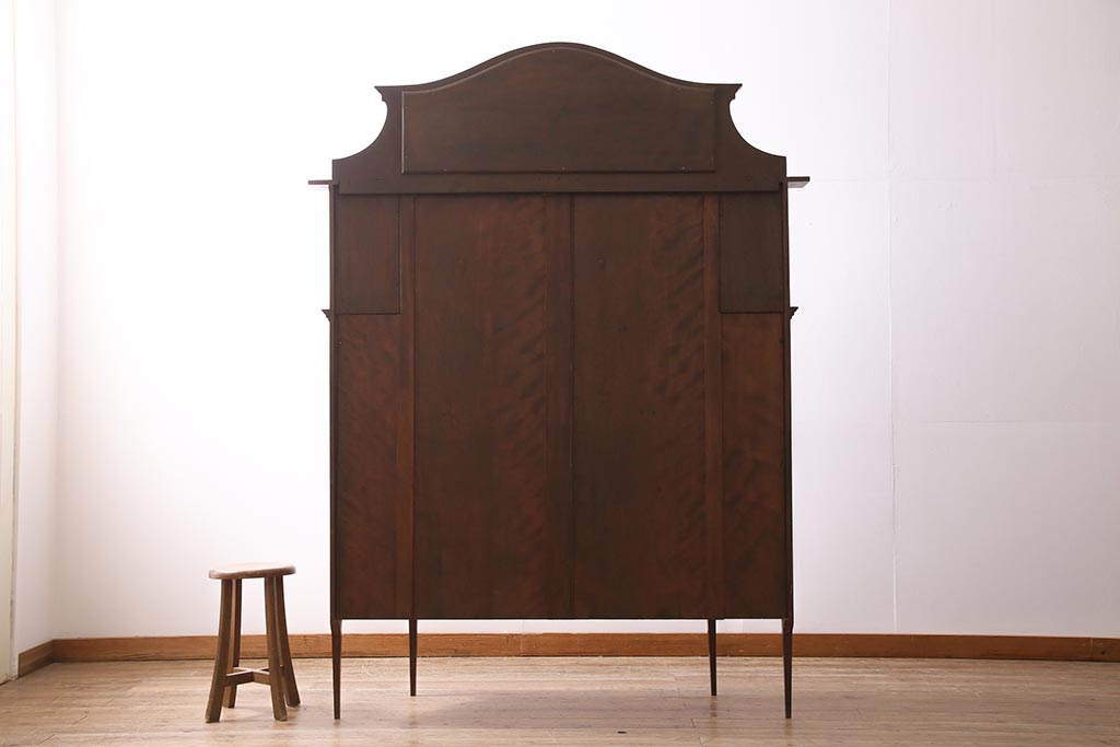 アンティーク家具 イギリスアンティーク マホガニー材 ミラーバック 品の良い象眼細工入りのキャビネット(飾り棚、収納棚)(R-045147)です。