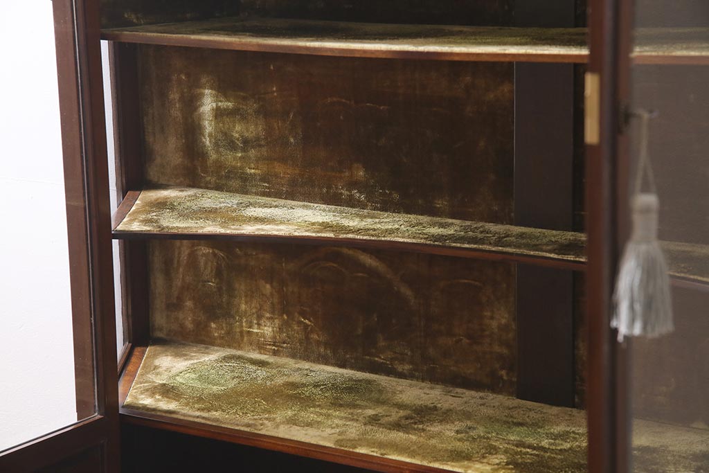 棚内は布張りになっています。起毛素材のため、毛が寝て跡になっている箇所がございます。画像や動画をご参考ください。