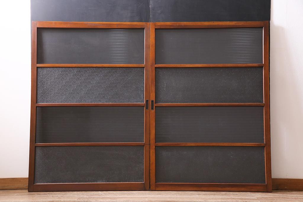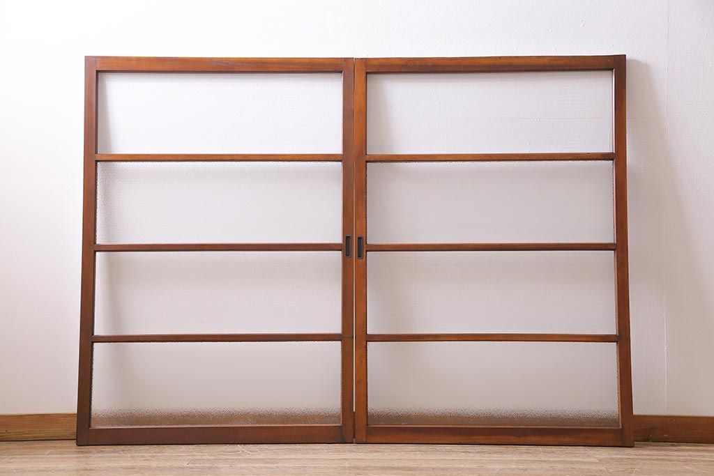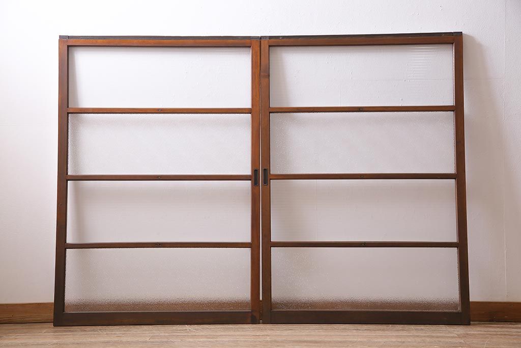 ドア・建具> 2枚・3枚セット > ビンテージ建具 昭和中期 ダイヤガラス・モールガラス シンプルでレトロなガラス戸2枚セット(窓、引き戸)(R-045145)