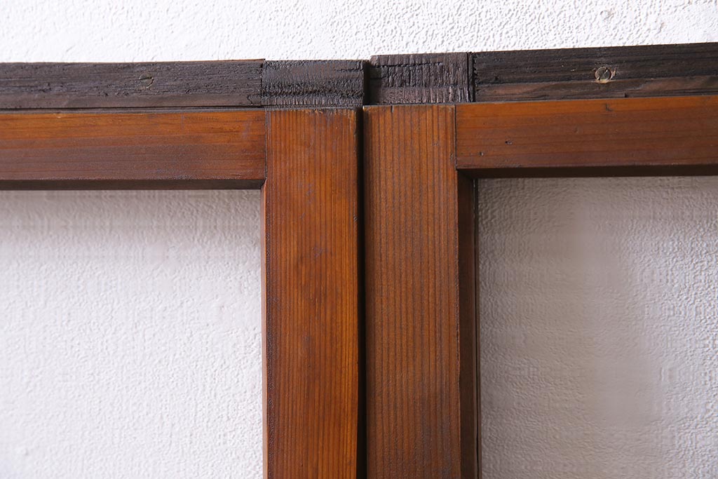 ビンテージ建具 昭和中期 ダイヤガラス・モールガラス シンプルでレトロなガラス戸2枚セット(窓、引き戸)(R-045145)