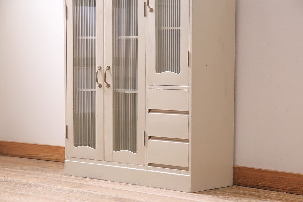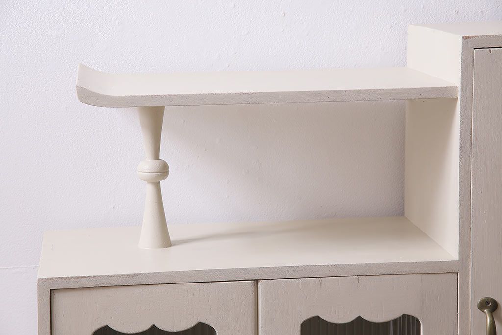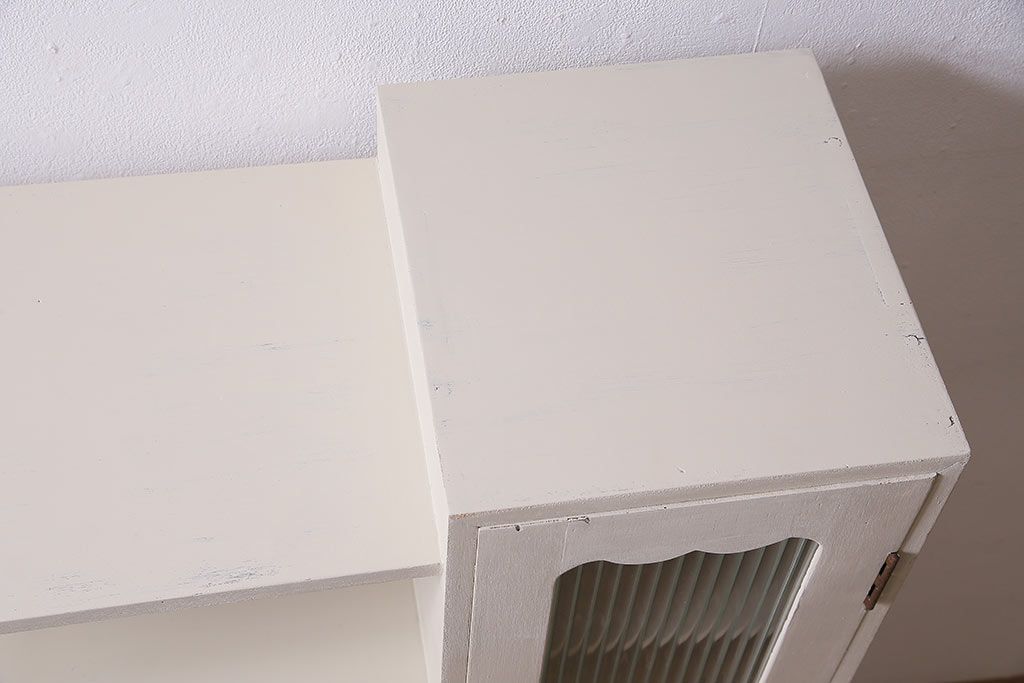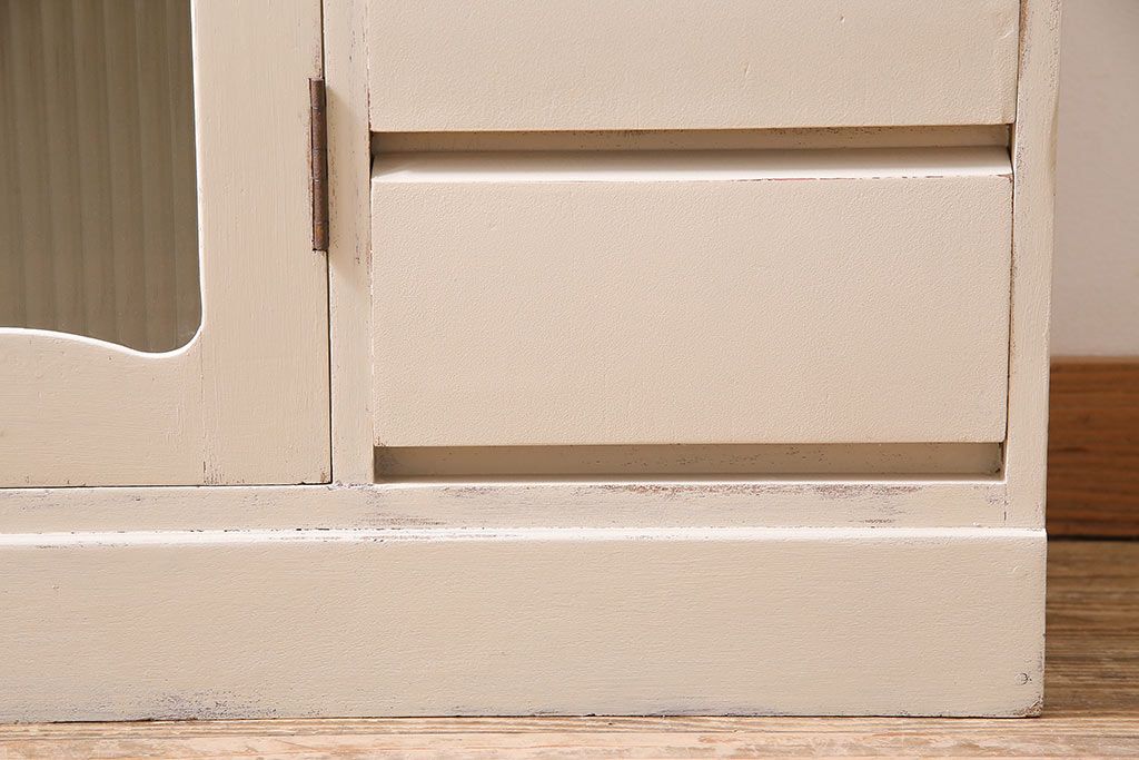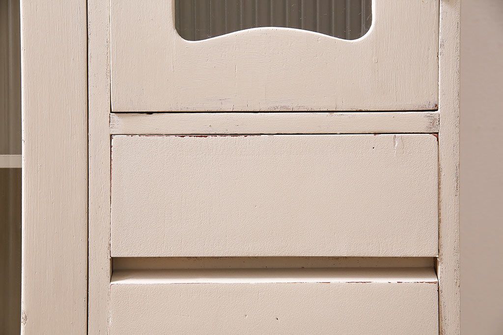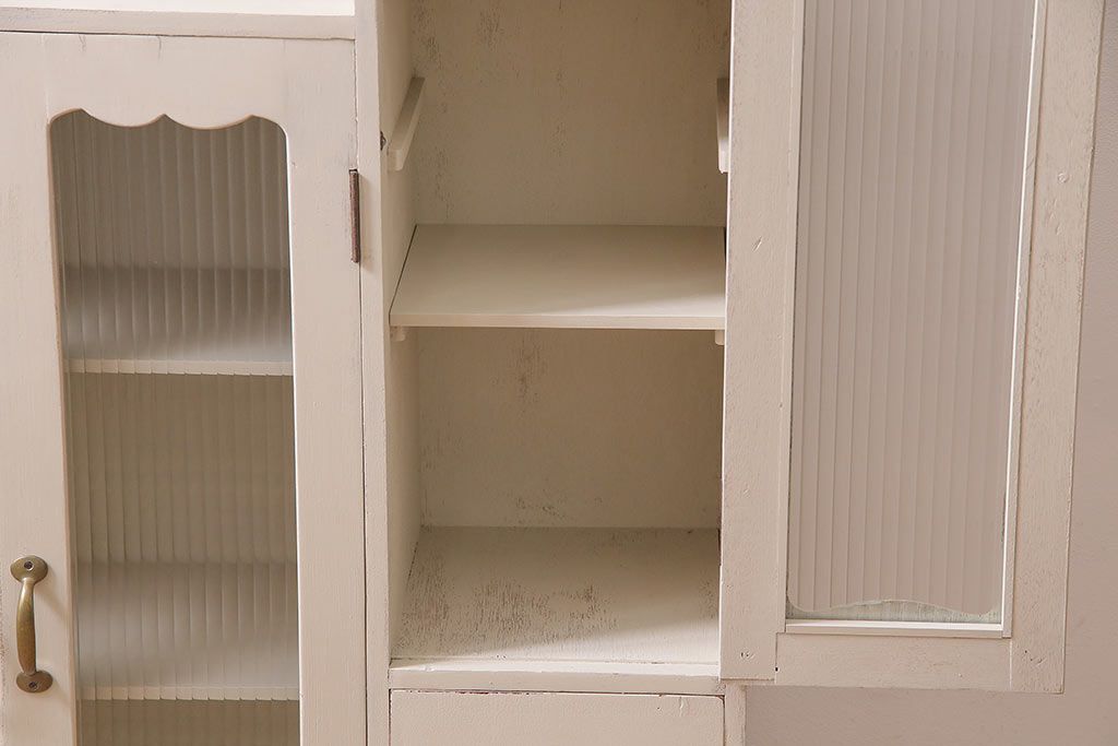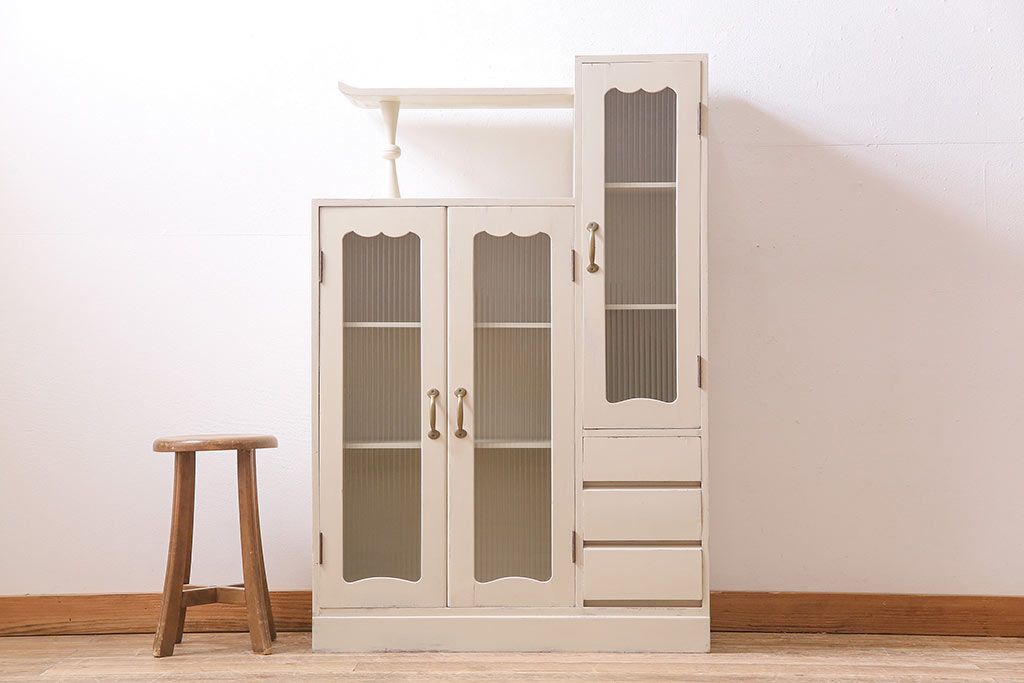 キャビネット・戸棚> 本箱 > アンティーク家具 昭和中期 ペイント モールガラス レトロで可愛らしい雰囲気が魅力の本箱(ブックケース、収納棚、キャビネット)(R-038441)