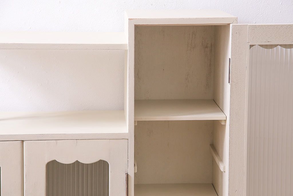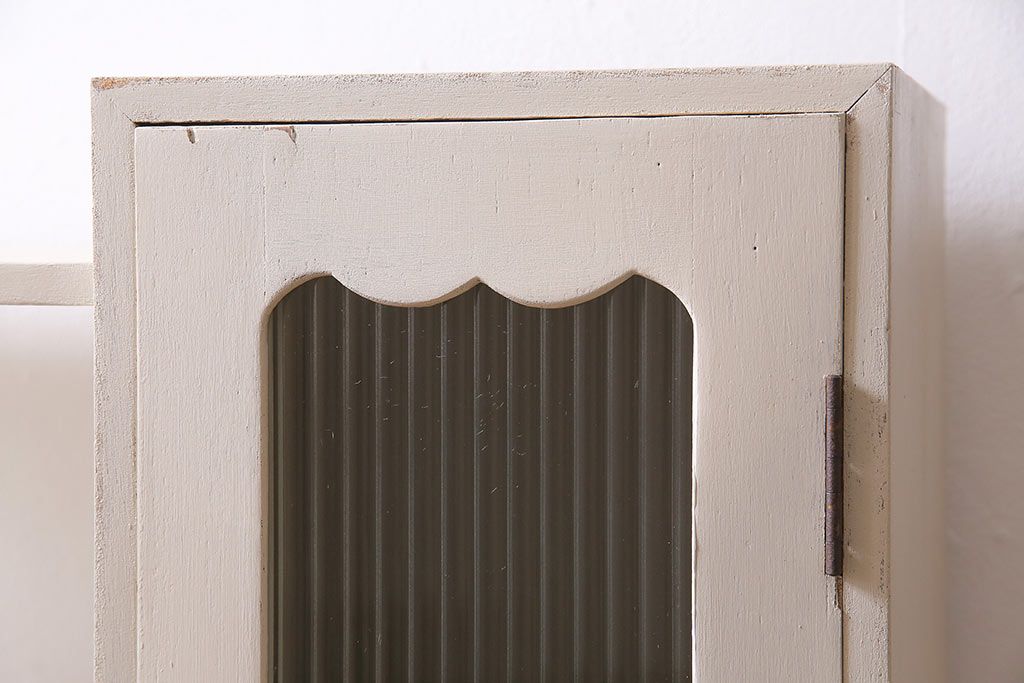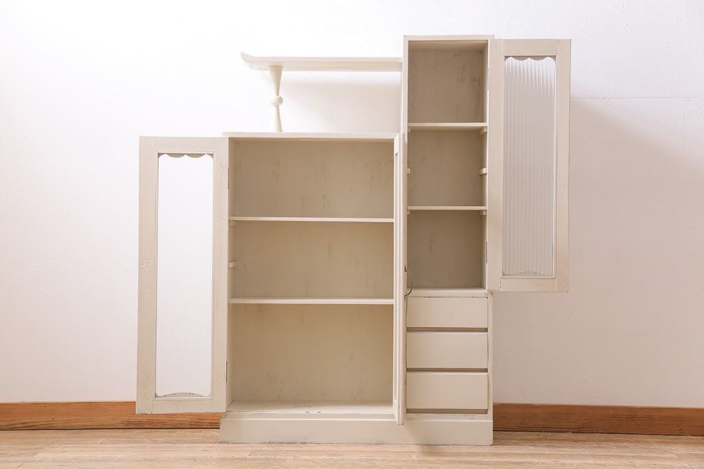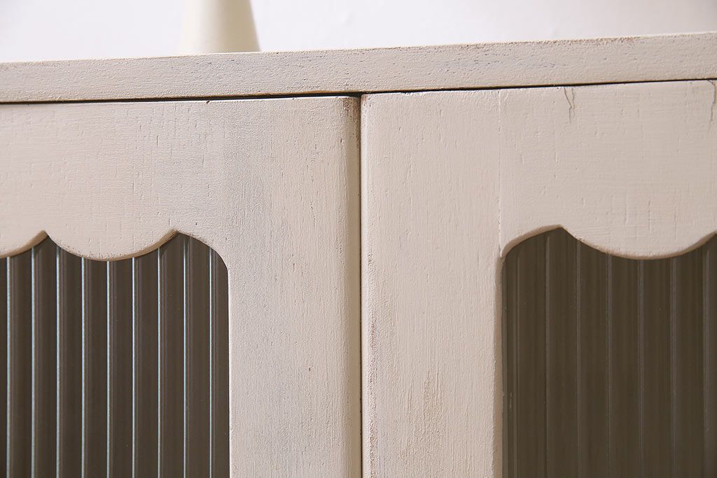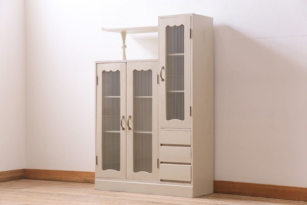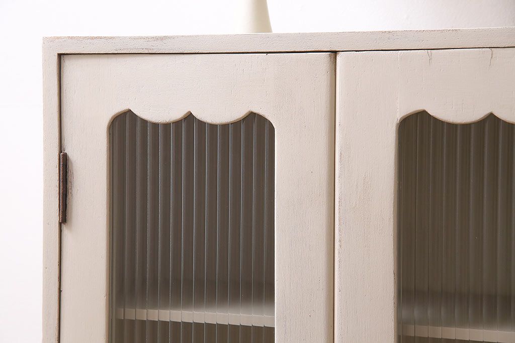 キャビネット・戸棚> 本箱 > アンティーク家具 昭和中期 ペイント モールガラス レトロで可愛らしい雰囲気が魅力の本箱(ブックケース、収納棚、キャビネット)(R-038441)