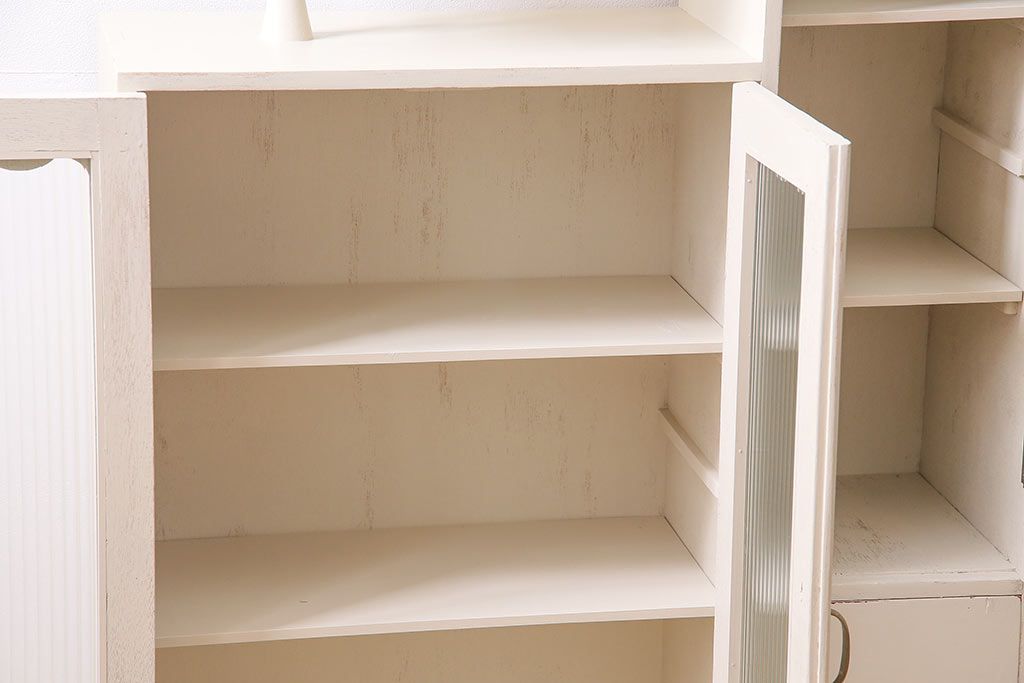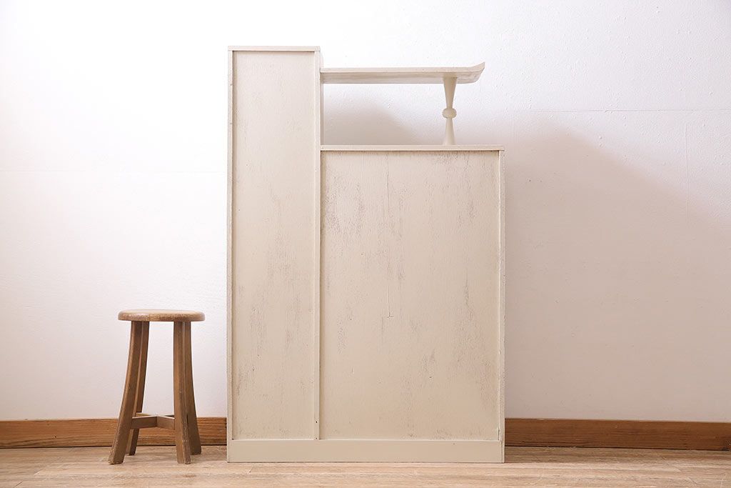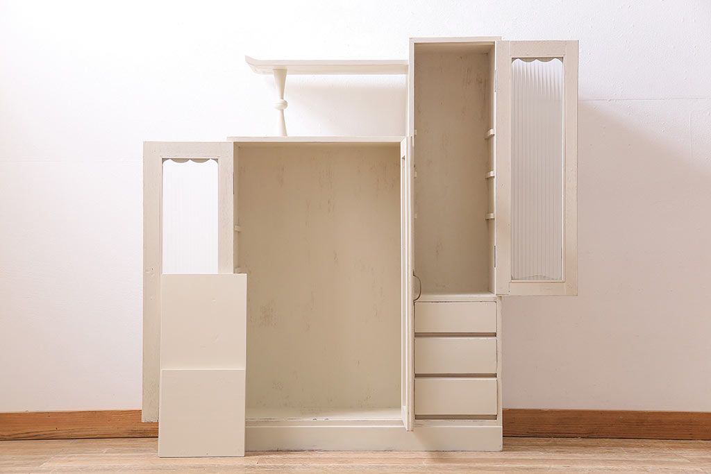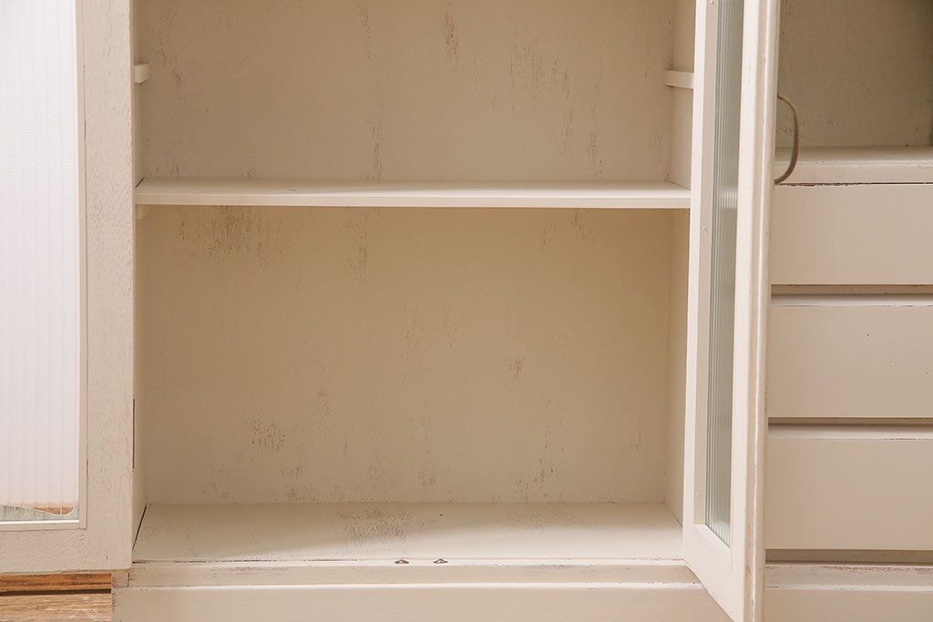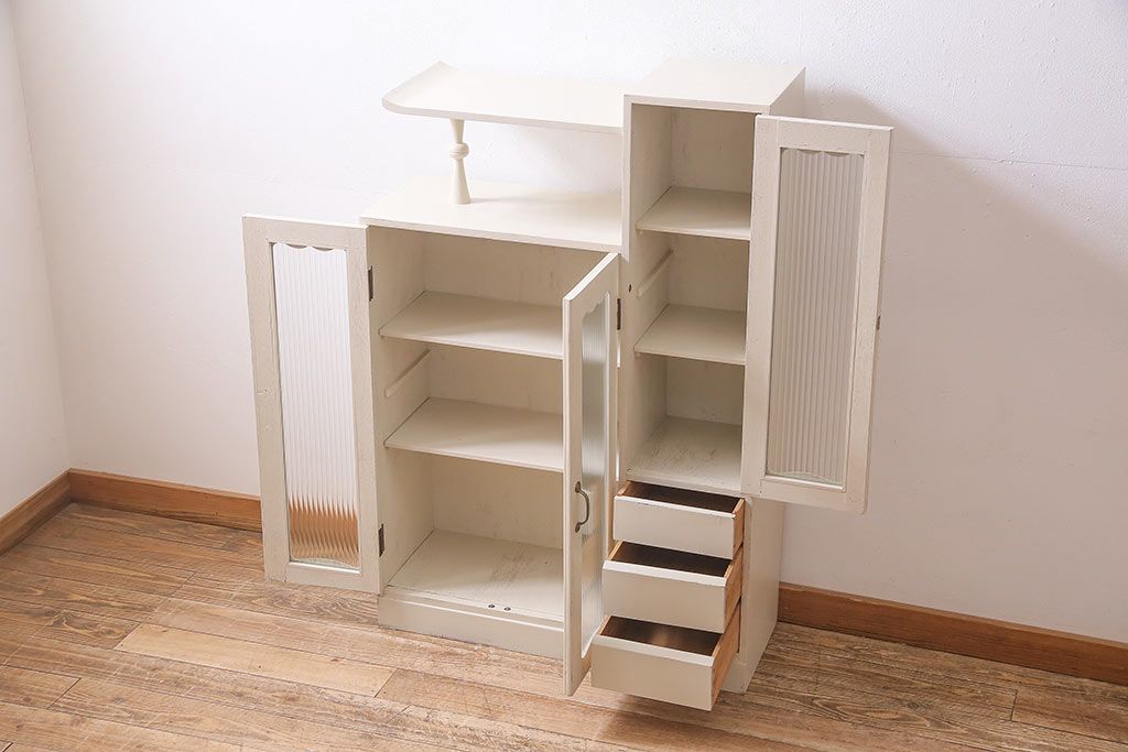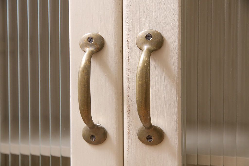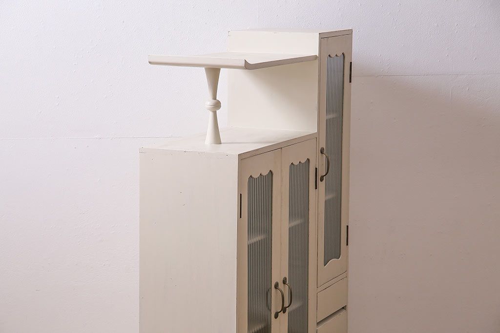 キャビネット・戸棚> 本箱 > アンティーク家具 昭和中期 ペイント モールガラス レトロで可愛らしい雰囲気が魅力の本箱(ブックケース、収納棚、キャビネット)(R-038441)