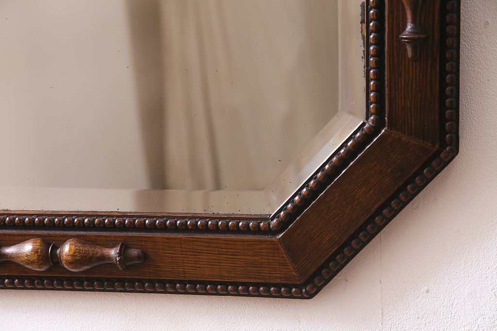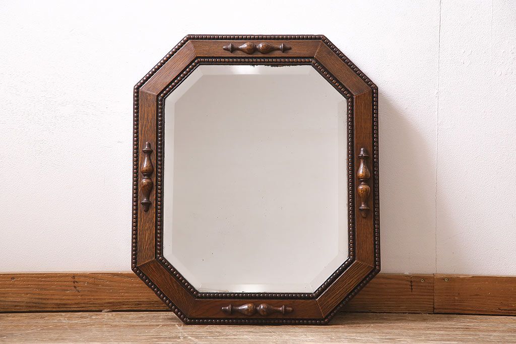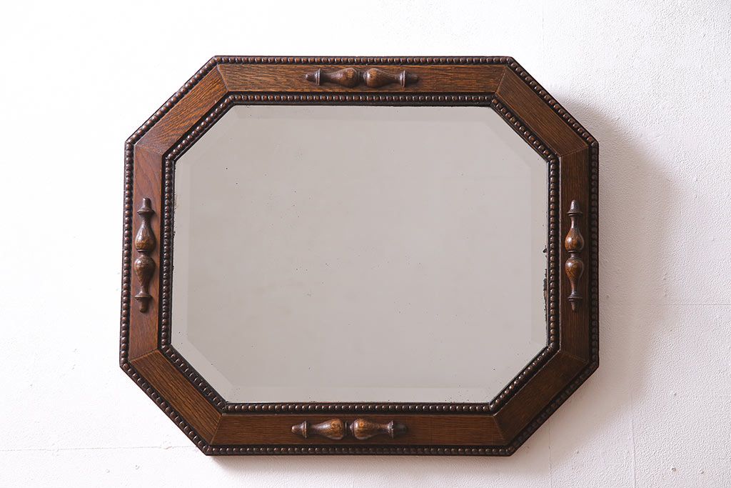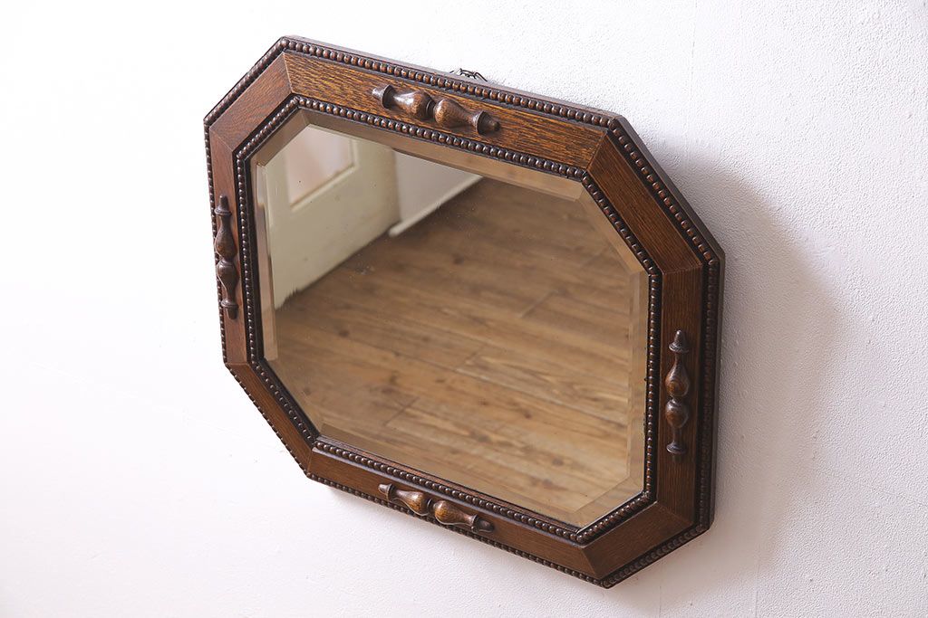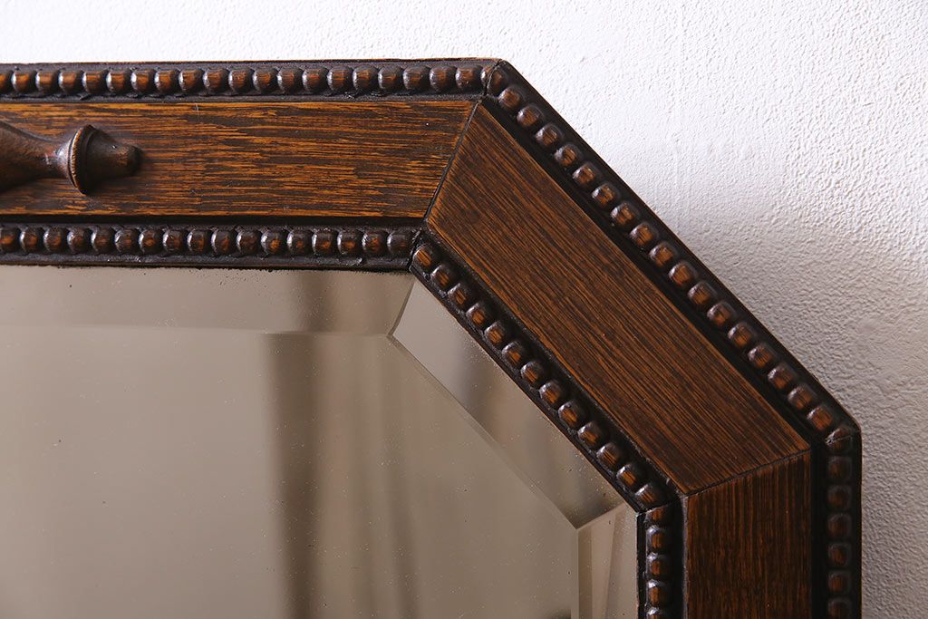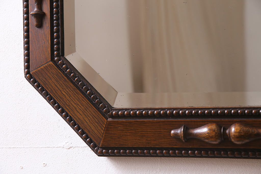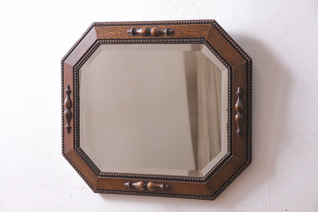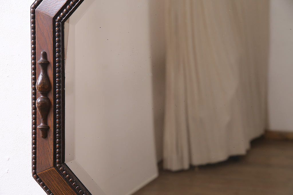 鏡 > アンティーク雑貨 イギリスアンティーク オーク材 八角形のフレームがおしゃれなウォールミラー(壁掛けミラー、鏡)(R-045241)