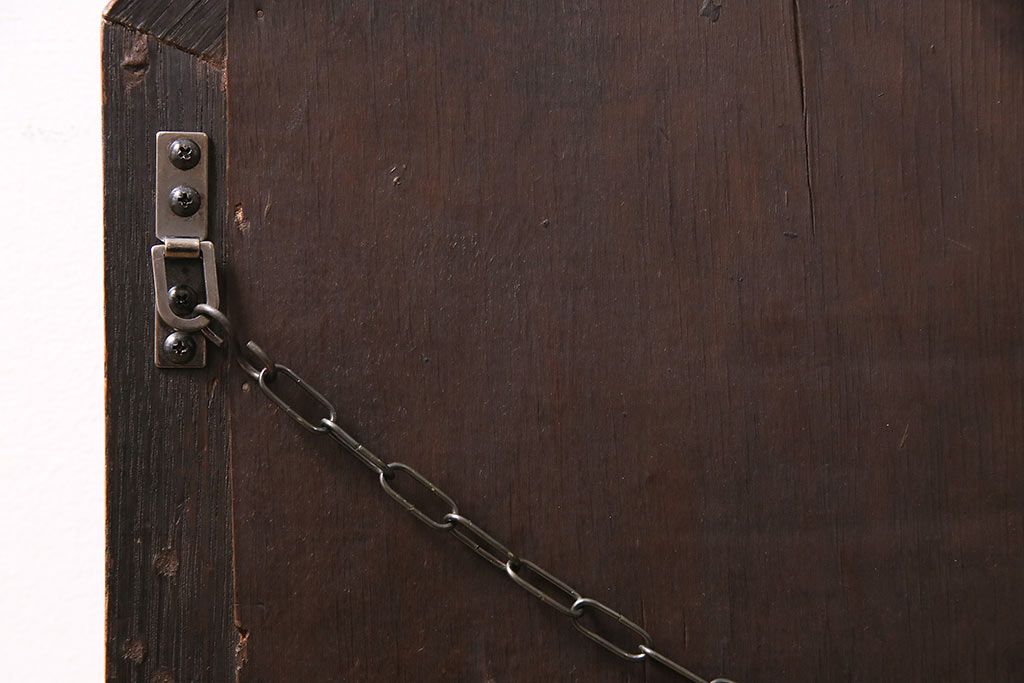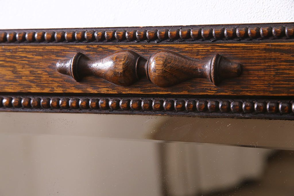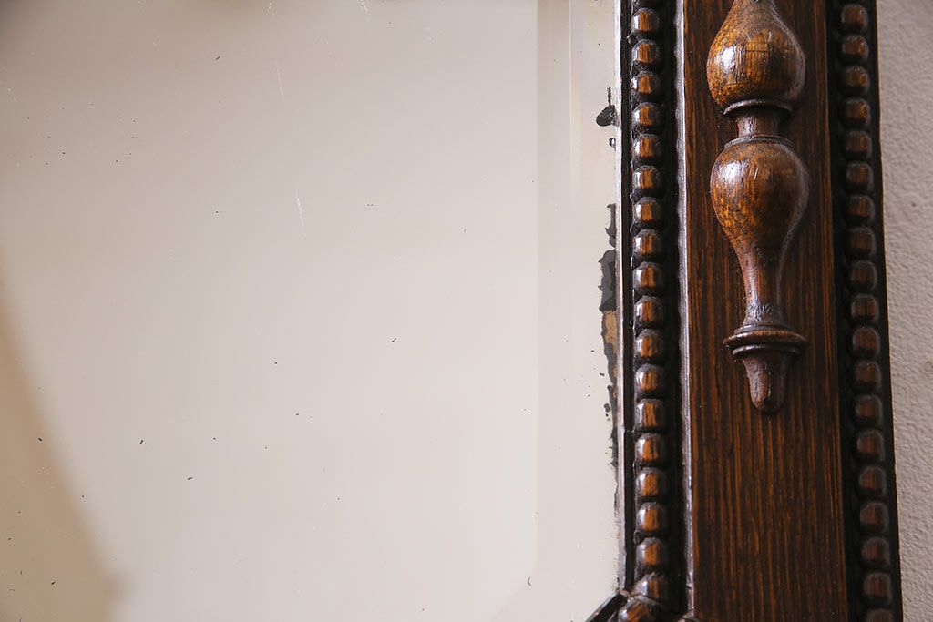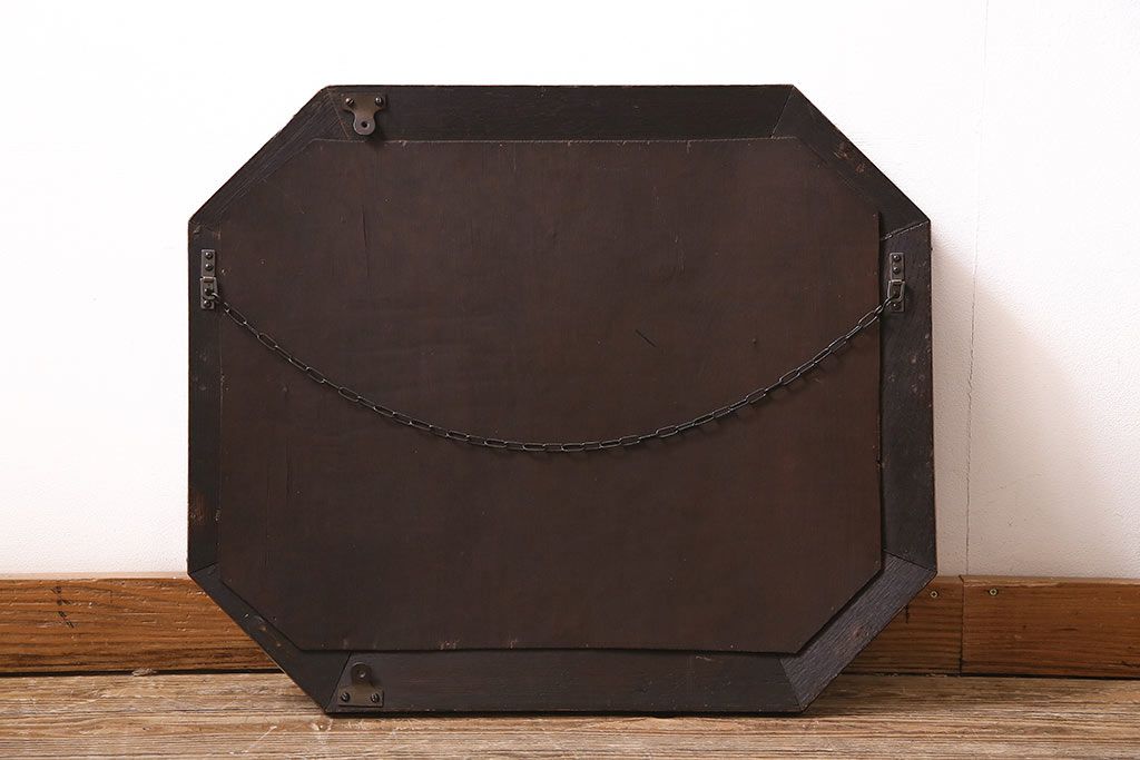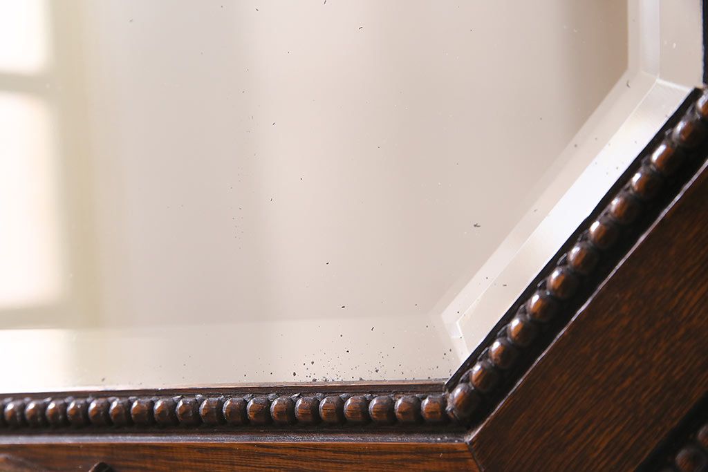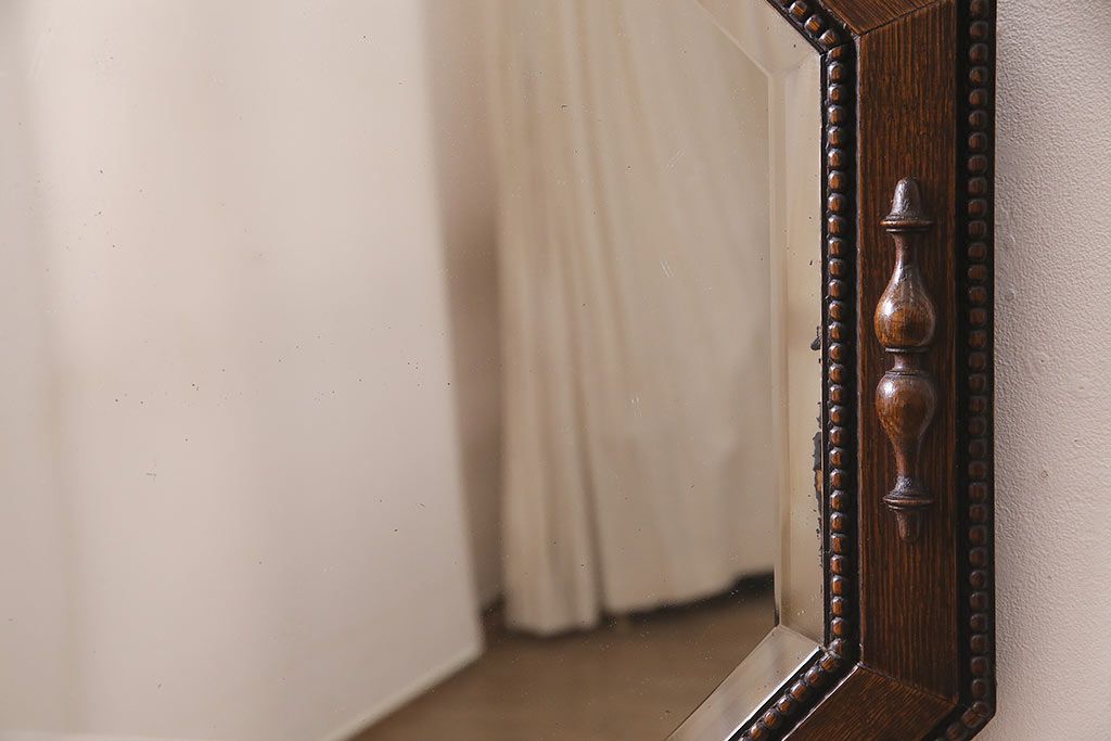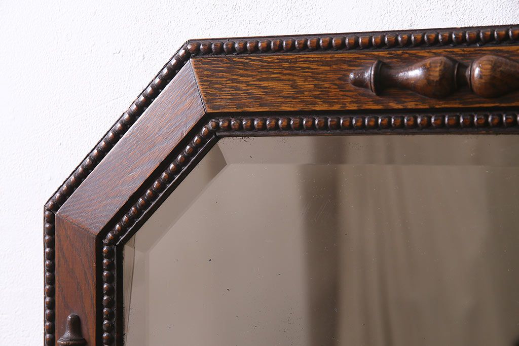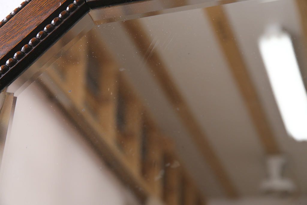 鏡 > アンティーク雑貨 イギリスアンティーク オーク材 八角形のフレームがおしゃれなウォールミラー(壁掛けミラー、鏡)(R-045241)