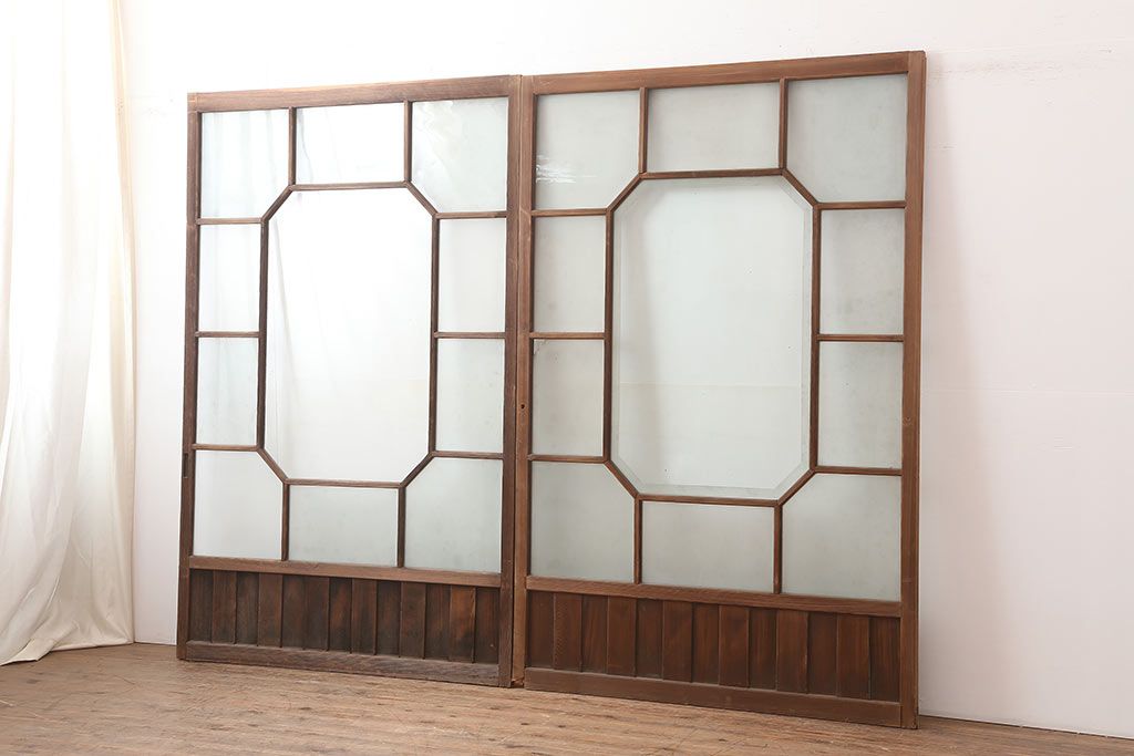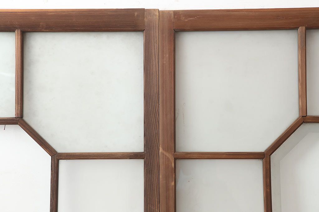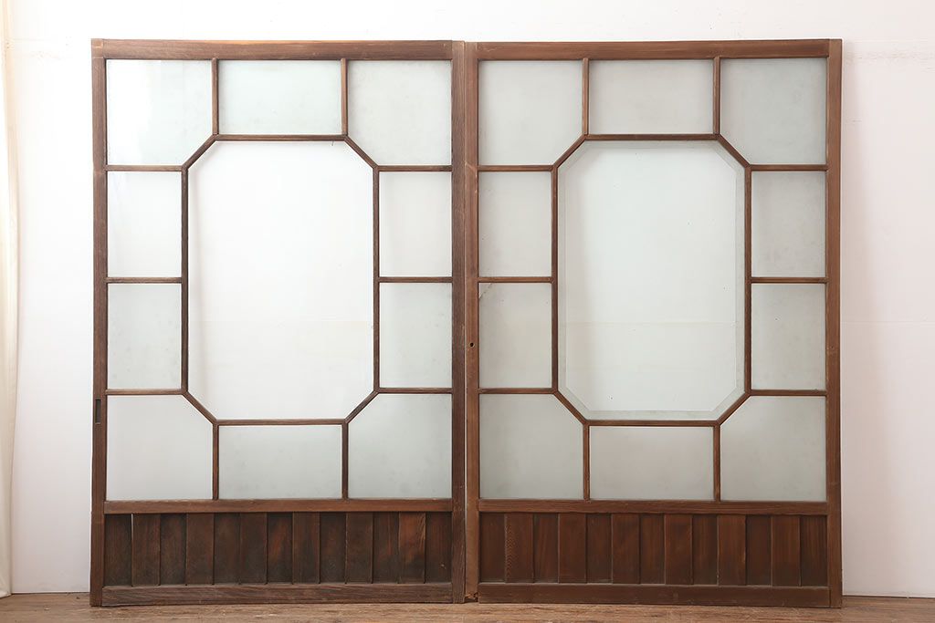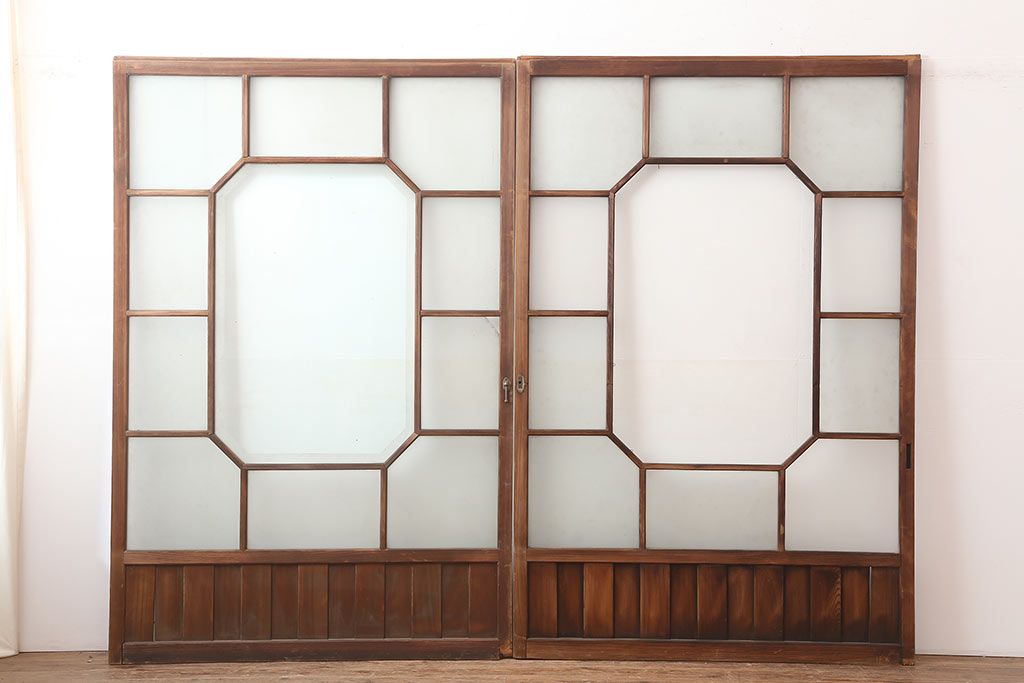 アンティーク建具 大正昭和初期 大振り 存在感のある大きさとデザインが魅力のガラス戸2枚セット(引き戸)(R-045033)