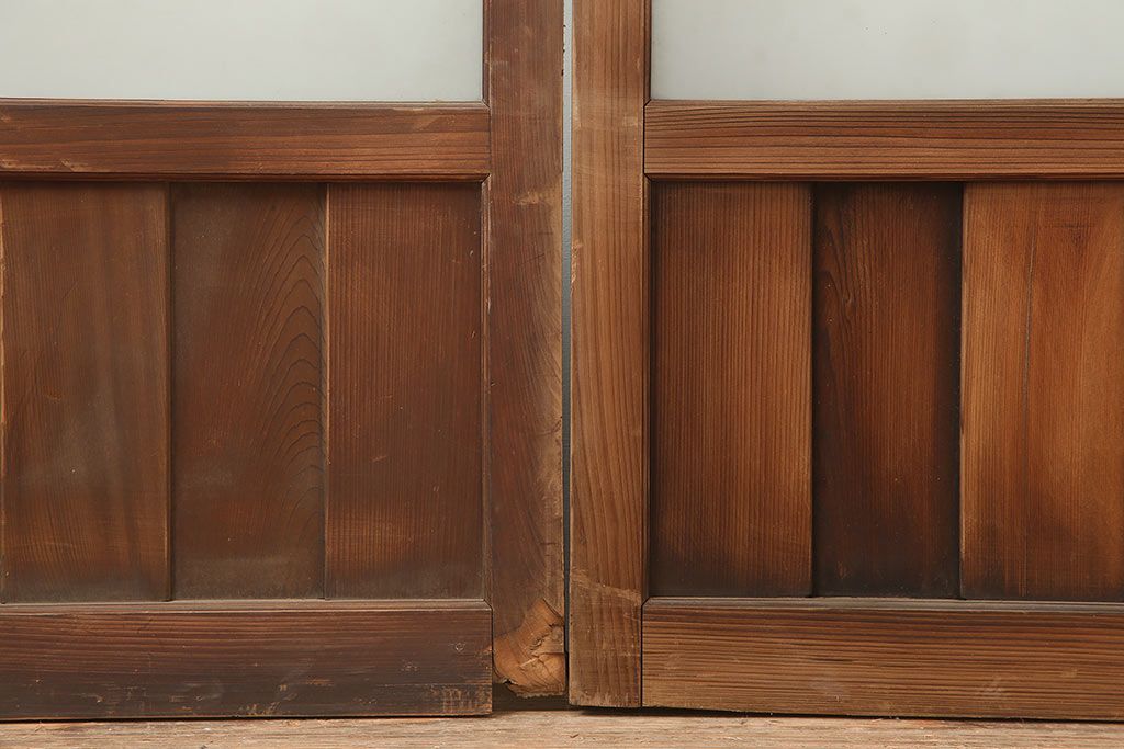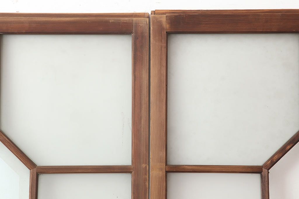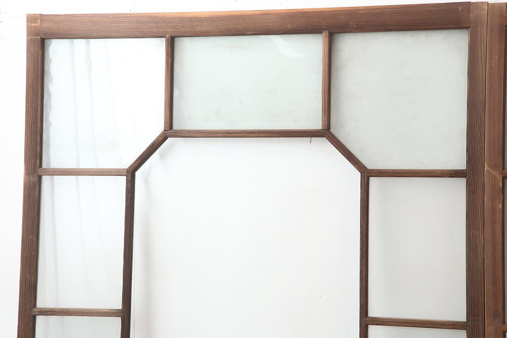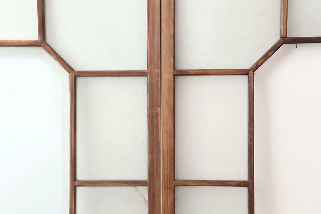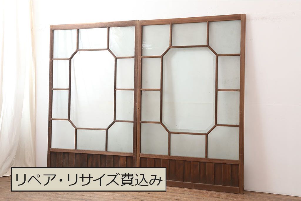 アンティーク建具 大正昭和初期 大振り 存在感のある大きさとデザインが魅力のガラス戸2枚セット(引き戸)(R-045033)