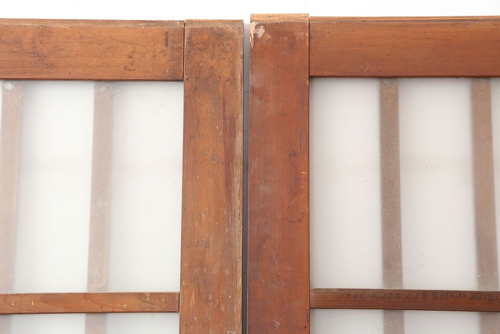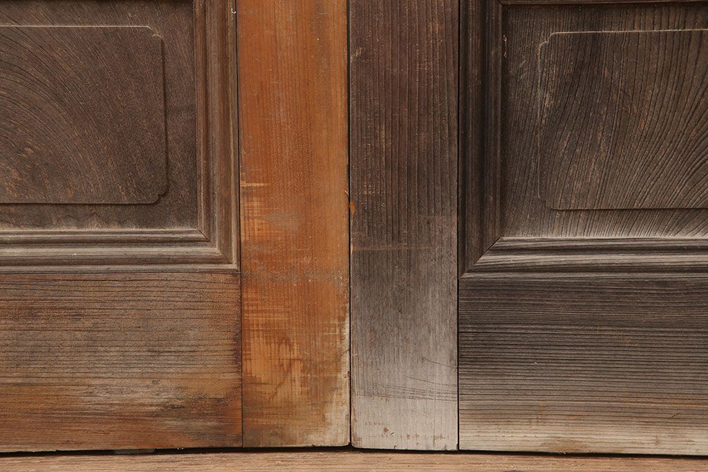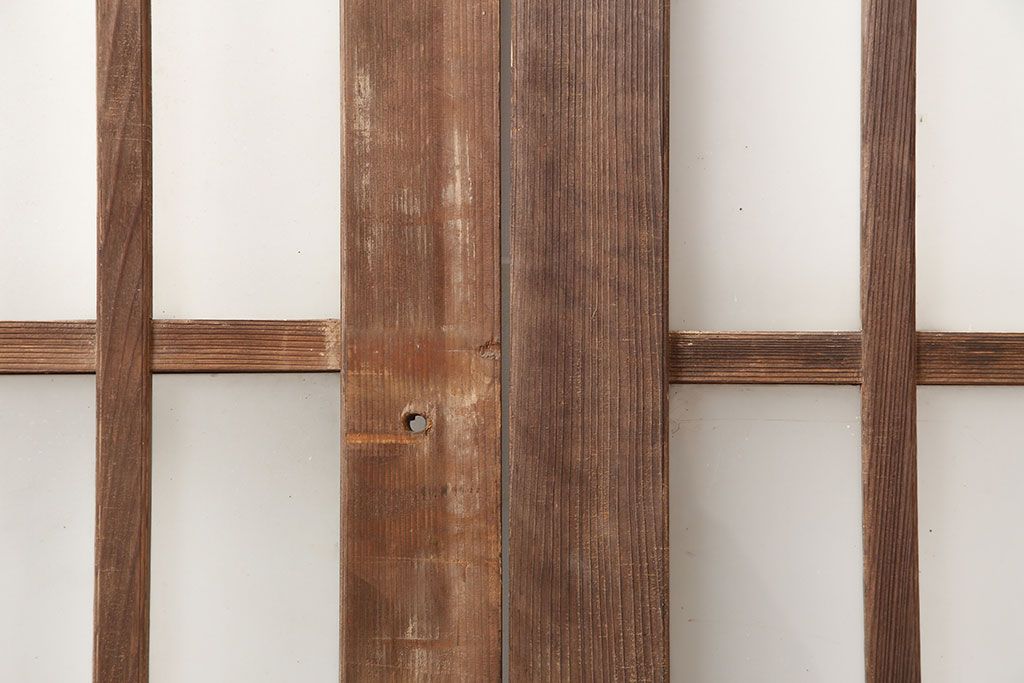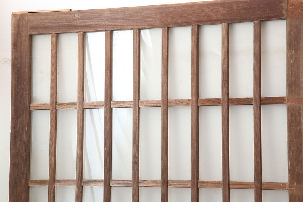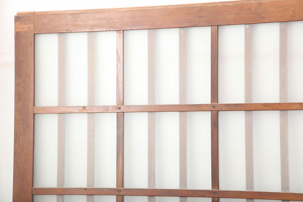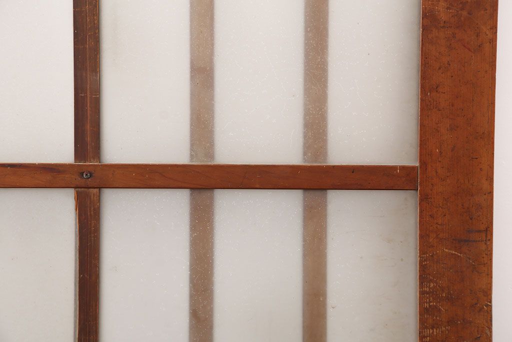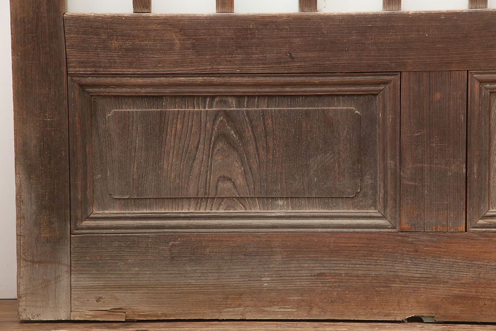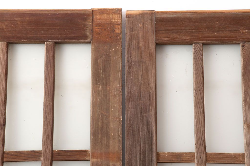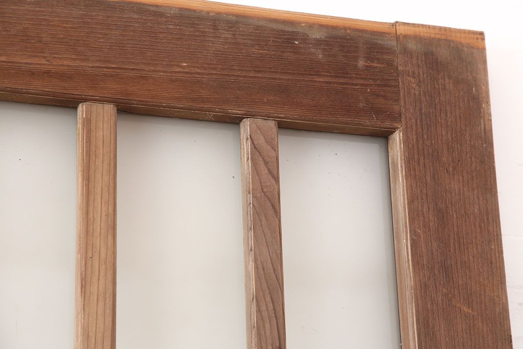 ラフジュ工房> ドア・建具> 引き戸 > アンティーク建具 昭和初期 ヒノキ材・腰板ケヤキ材 背高サイズの格子ガラス戸2枚セット(引き戸、建具、蔵戸、玄関戸)(R-044887)