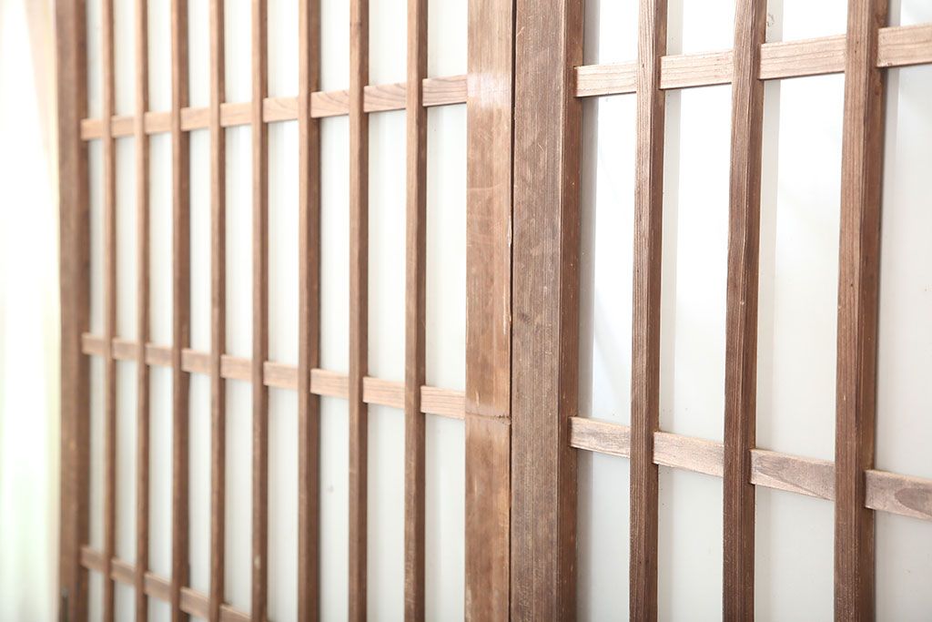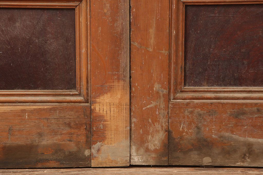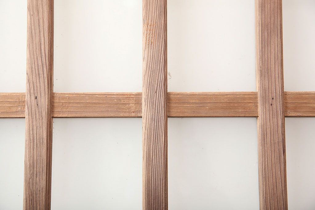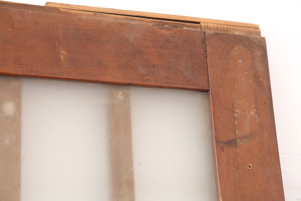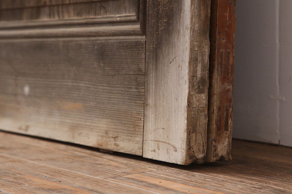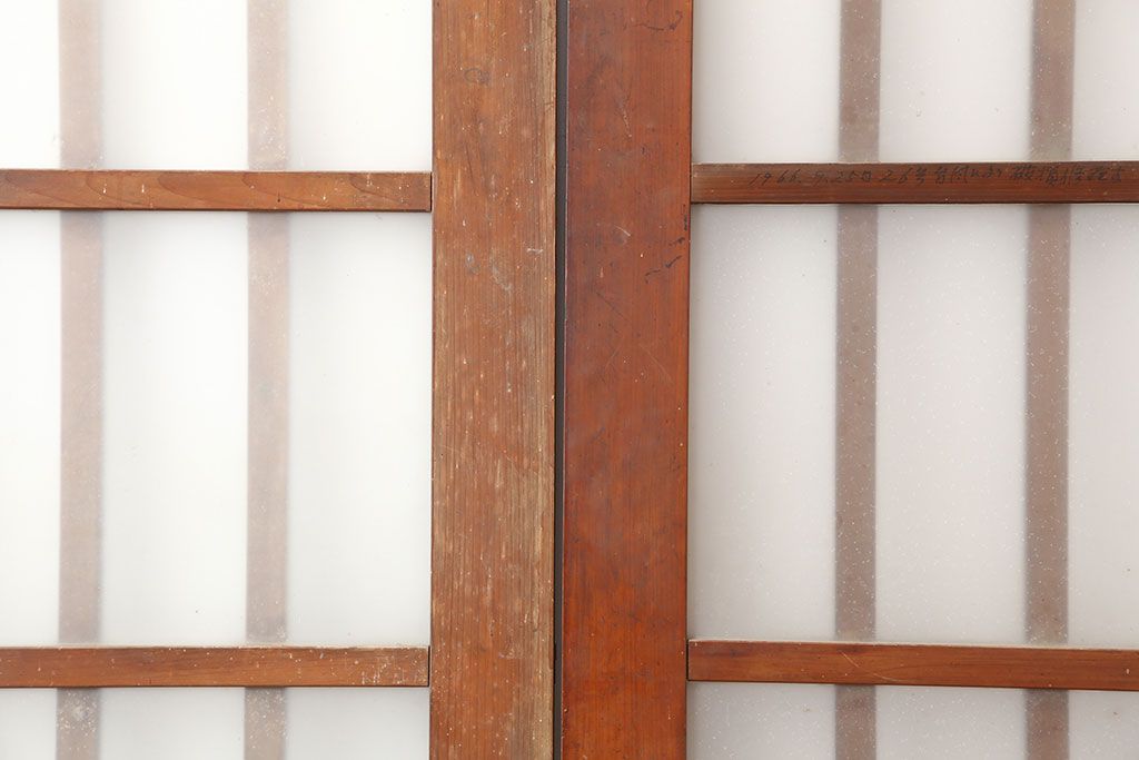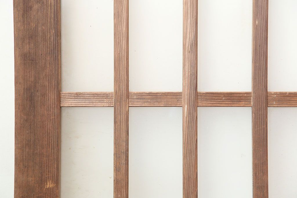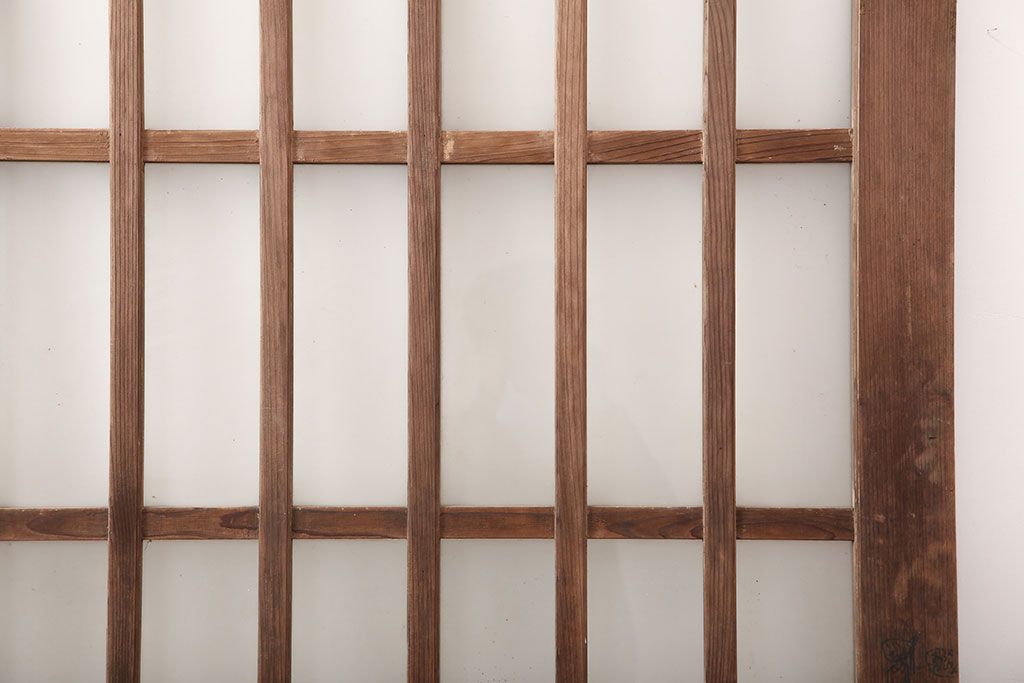 ラフジュ工房> ドア・建具> 引き戸 > アンティーク建具 昭和初期 ヒノキ材・腰板ケヤキ材 背高サイズの格子ガラス戸2枚セット(引き戸、建具、蔵戸、玄関戸)(R-044887)